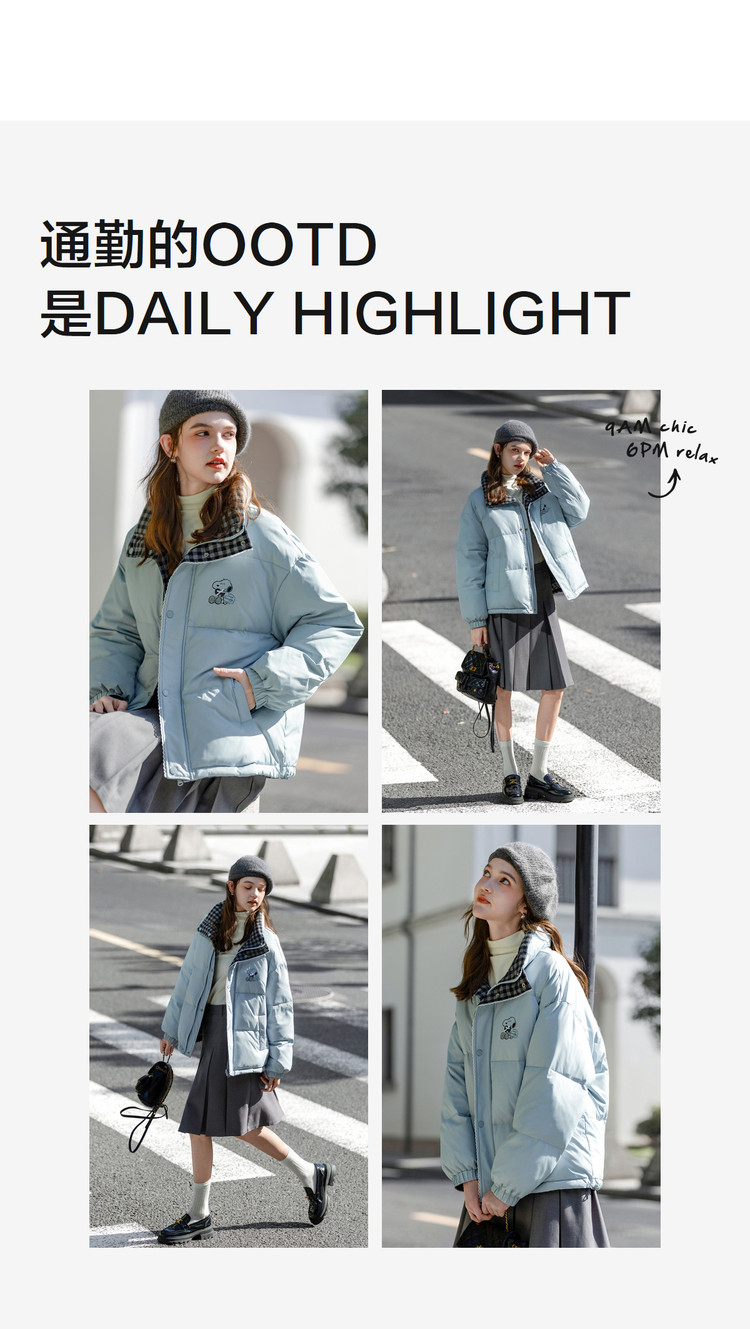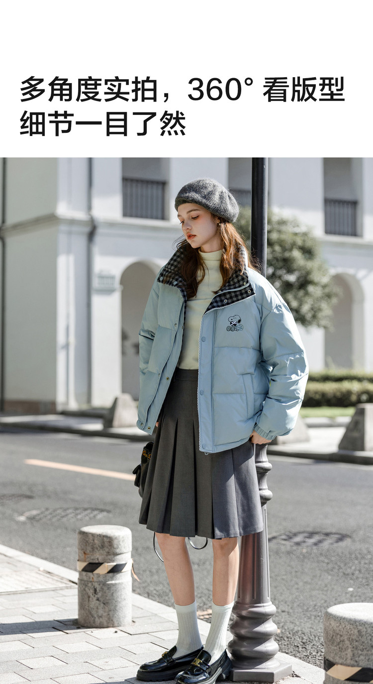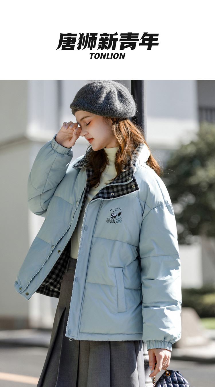 【史努比联名款】唐狮2026秋冬女立领双面穿短款羽绒服时尚百搭