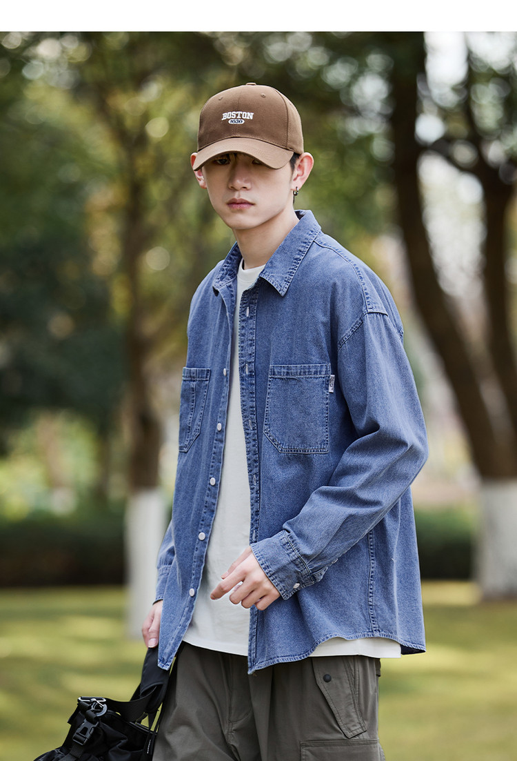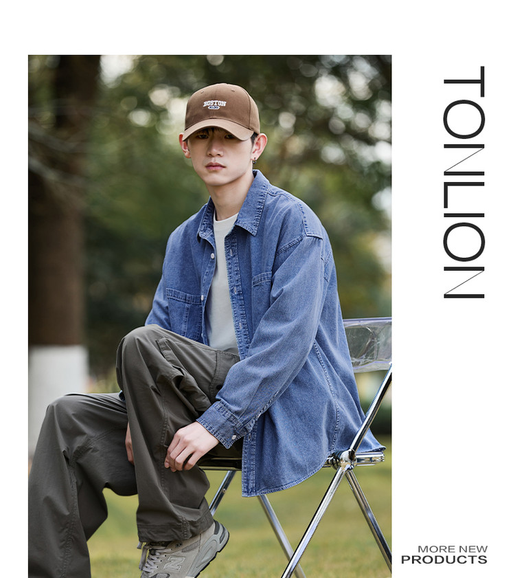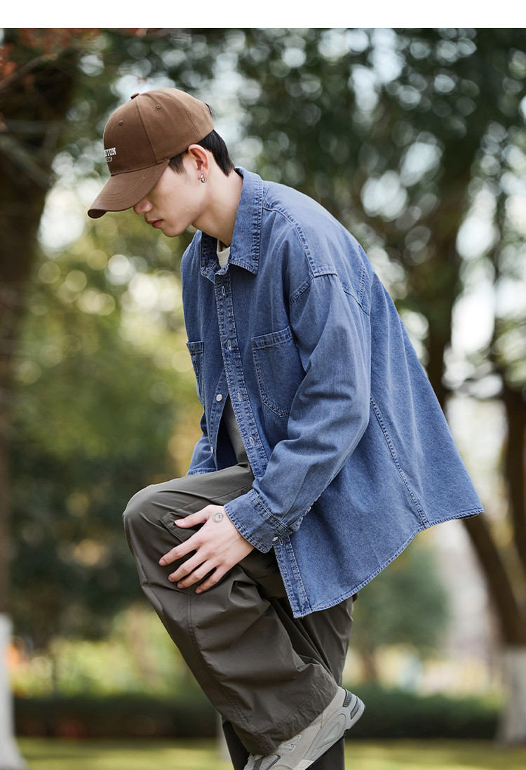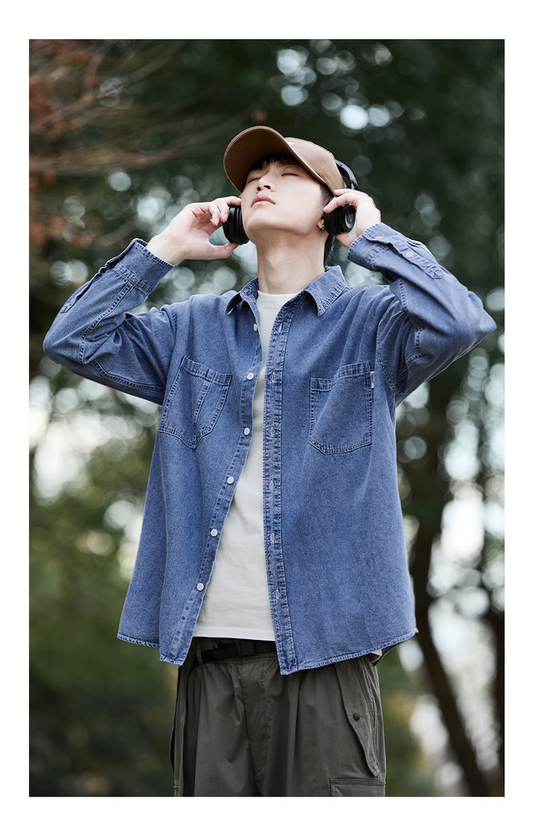 唐狮春秋季新款牛仔长袖衬衫男高级感日系休闲宽松百搭衬衣外套TJ