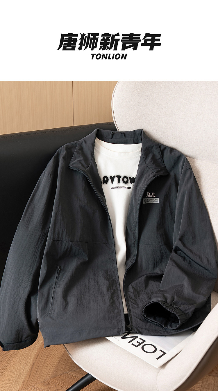 唐狮2025秋季新款夹克外套男立领休闲春秋夹克男宽松秋短款教练服