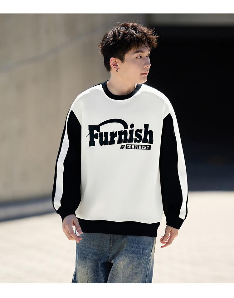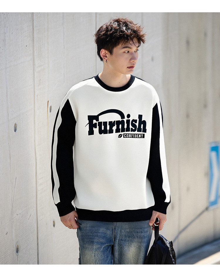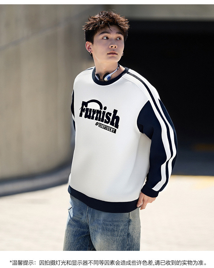 【小灯塔勿上】唐狮2025秋款男士卫衣长袖拼接男撞色领前胸大文字
