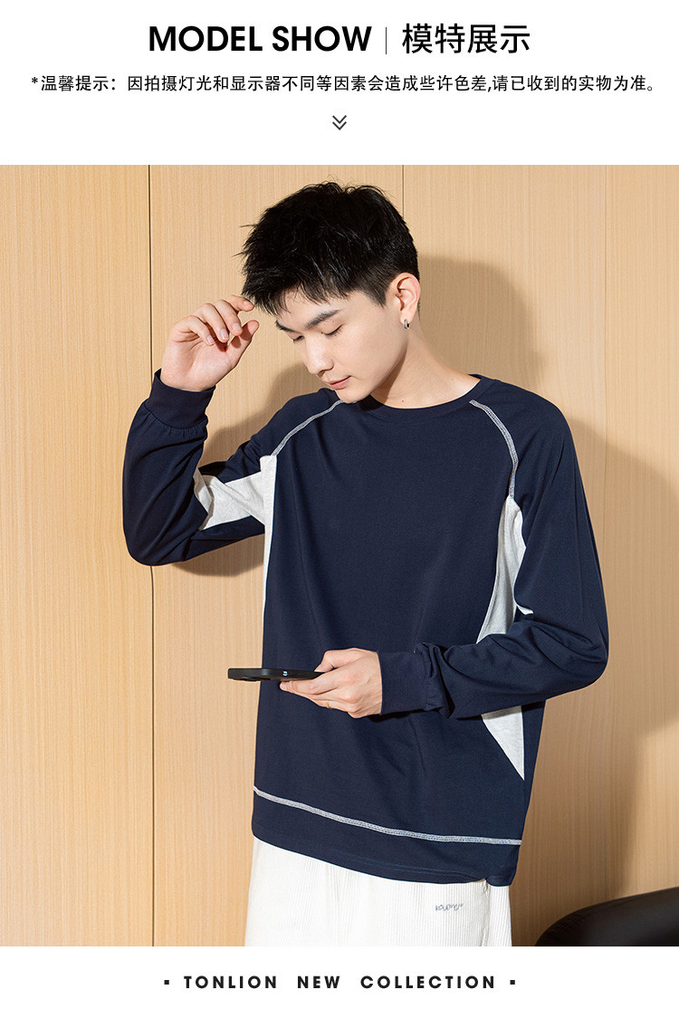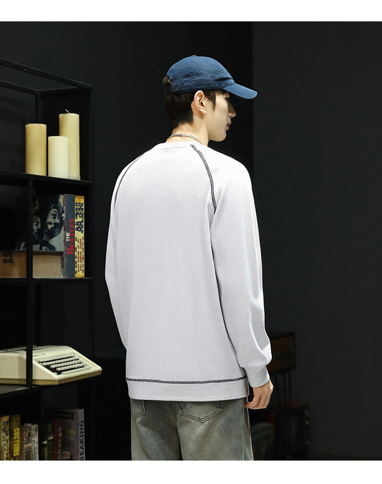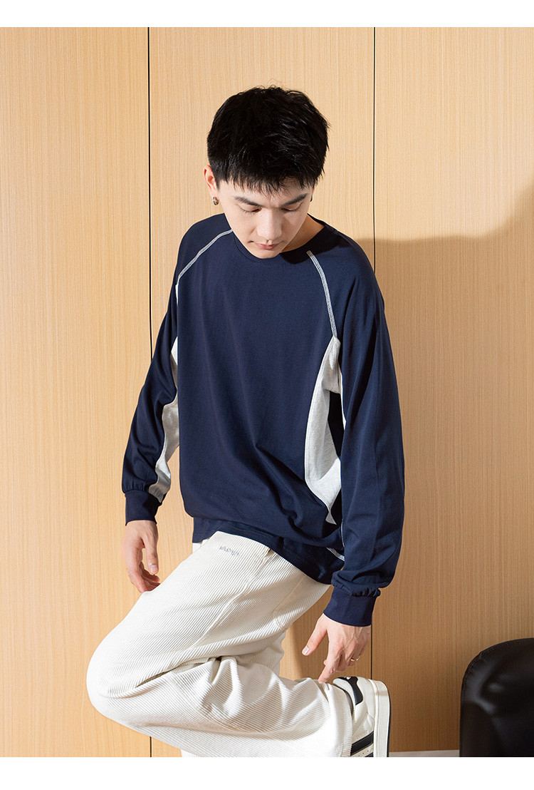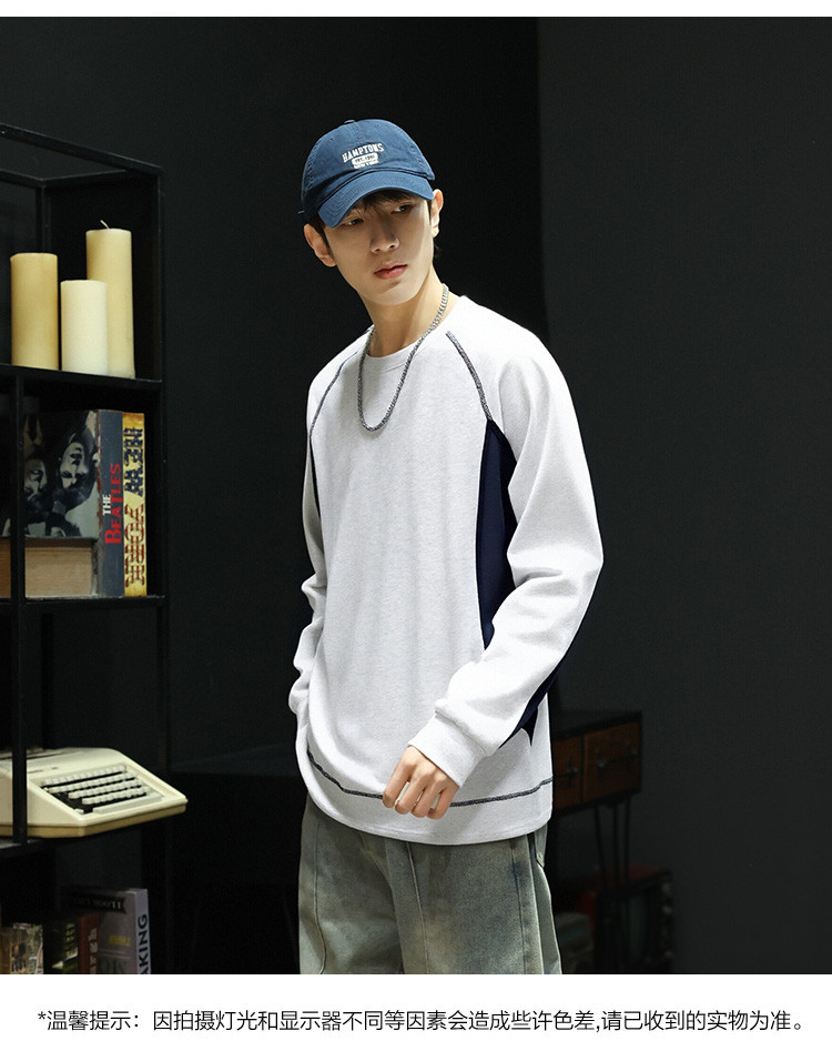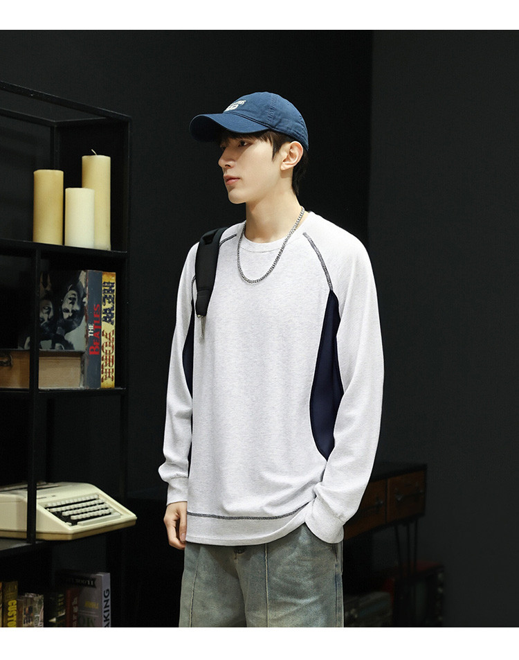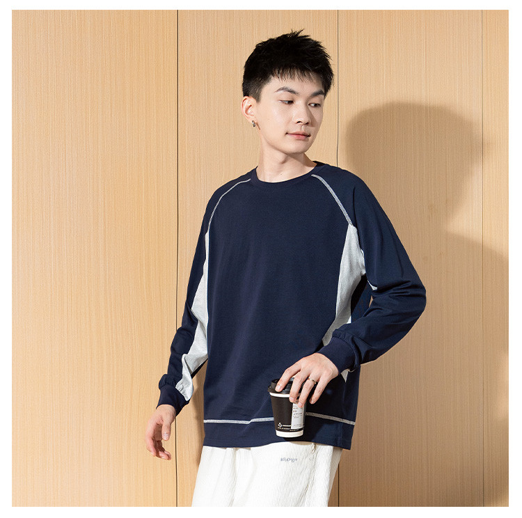 唐狮2025秋款男士长袖T恤秋款男款小众圆领拼接车明线打底衣内搭