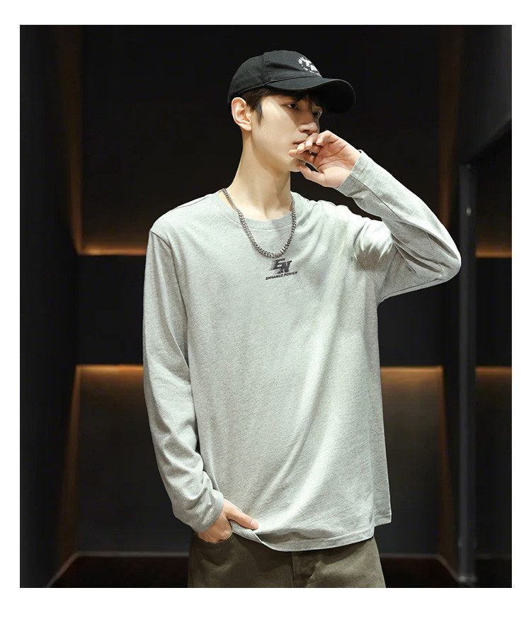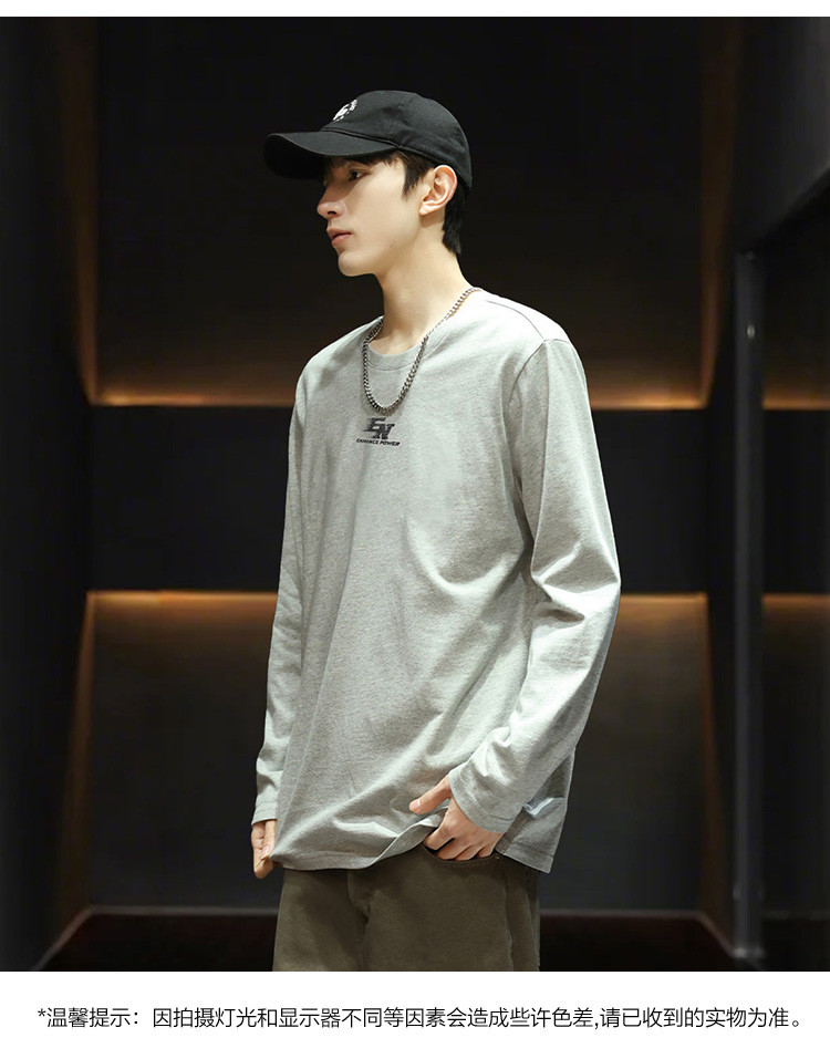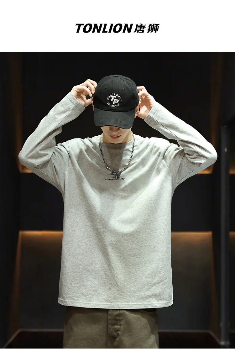 唐狮2025圆领长袖T恤春秋季新款男设计休闲运动风简约百搭上衣