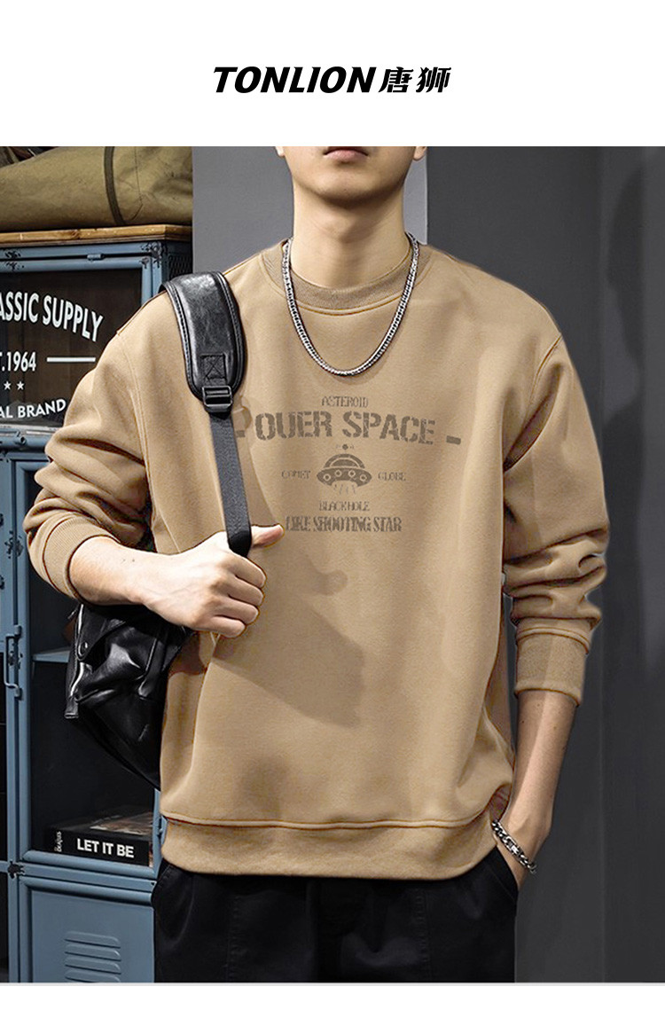 唐狮2025秋季新款卫衣男士圆领宽松无帽套头上衣港风休闲外套潮牌