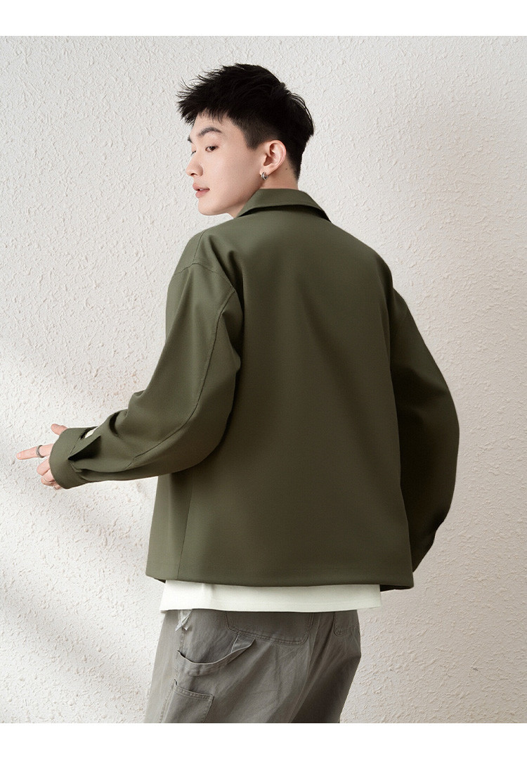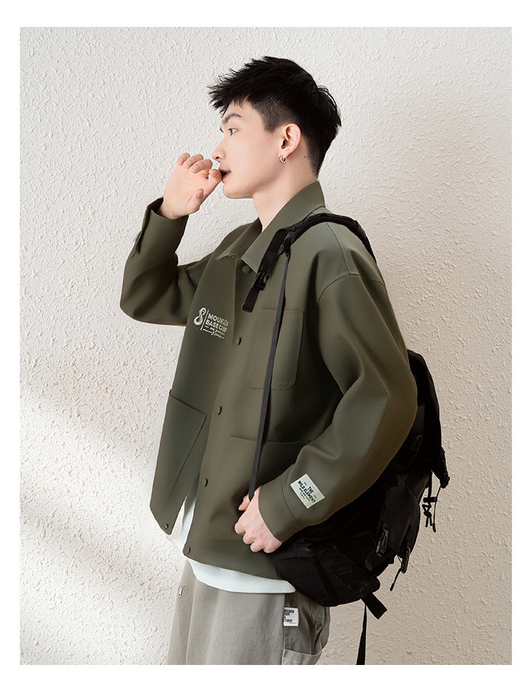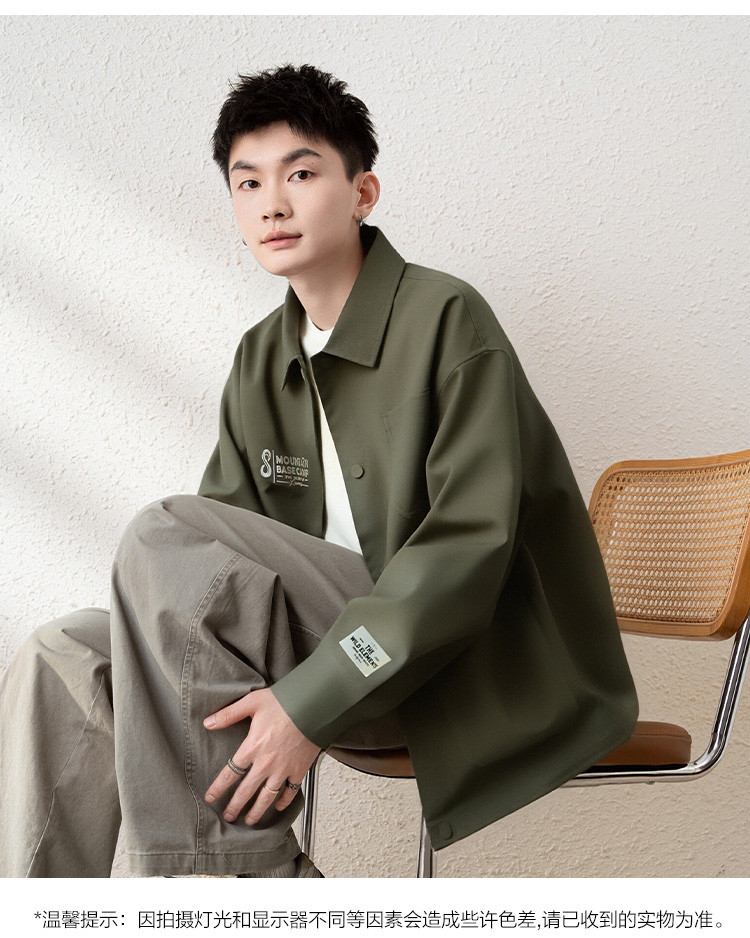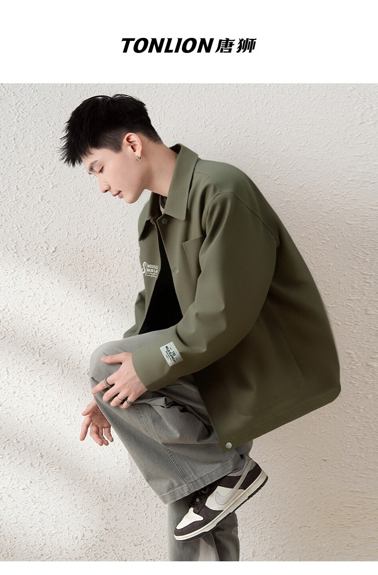 唐狮2026秋季外套男款翻领精致刺绣短款外套复古休闲薄款百搭时尚