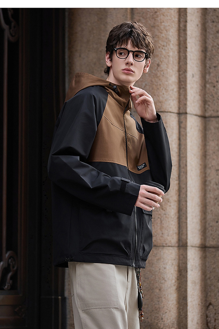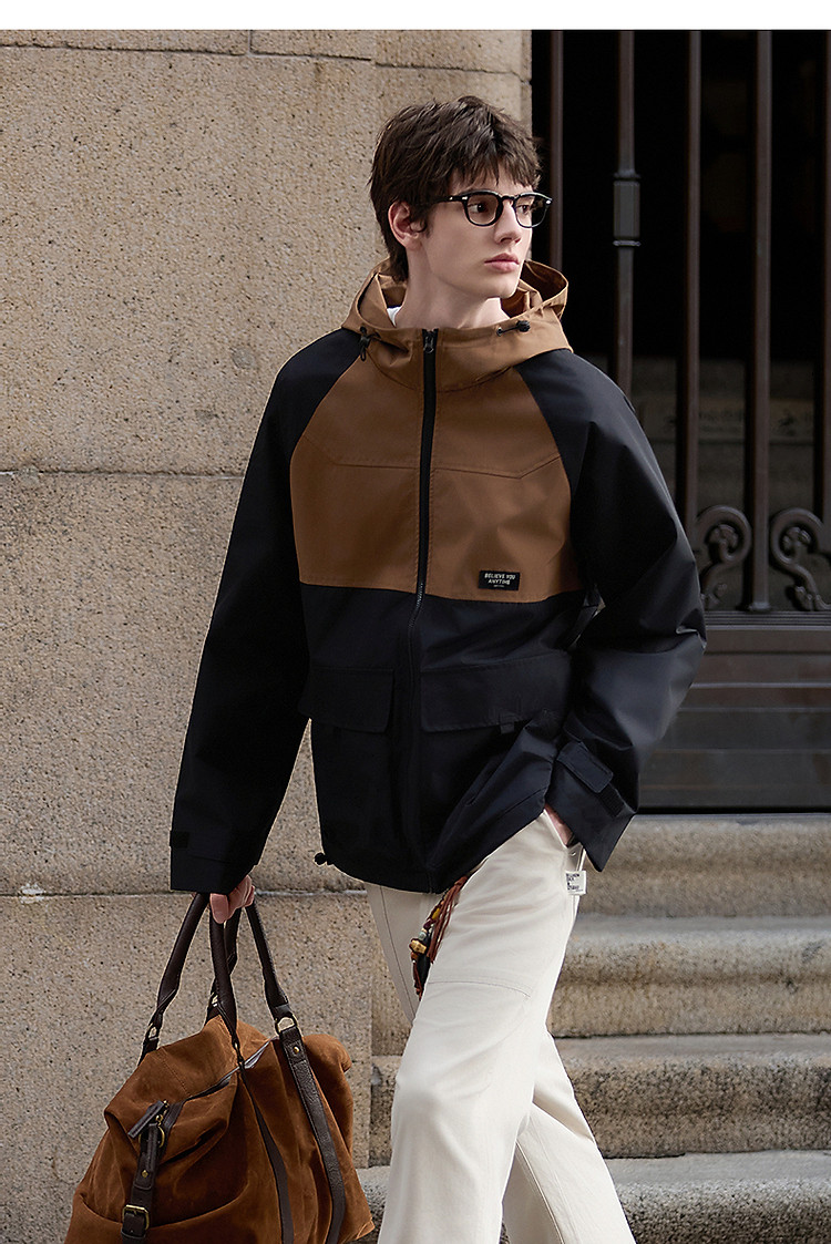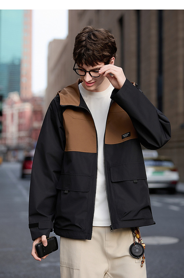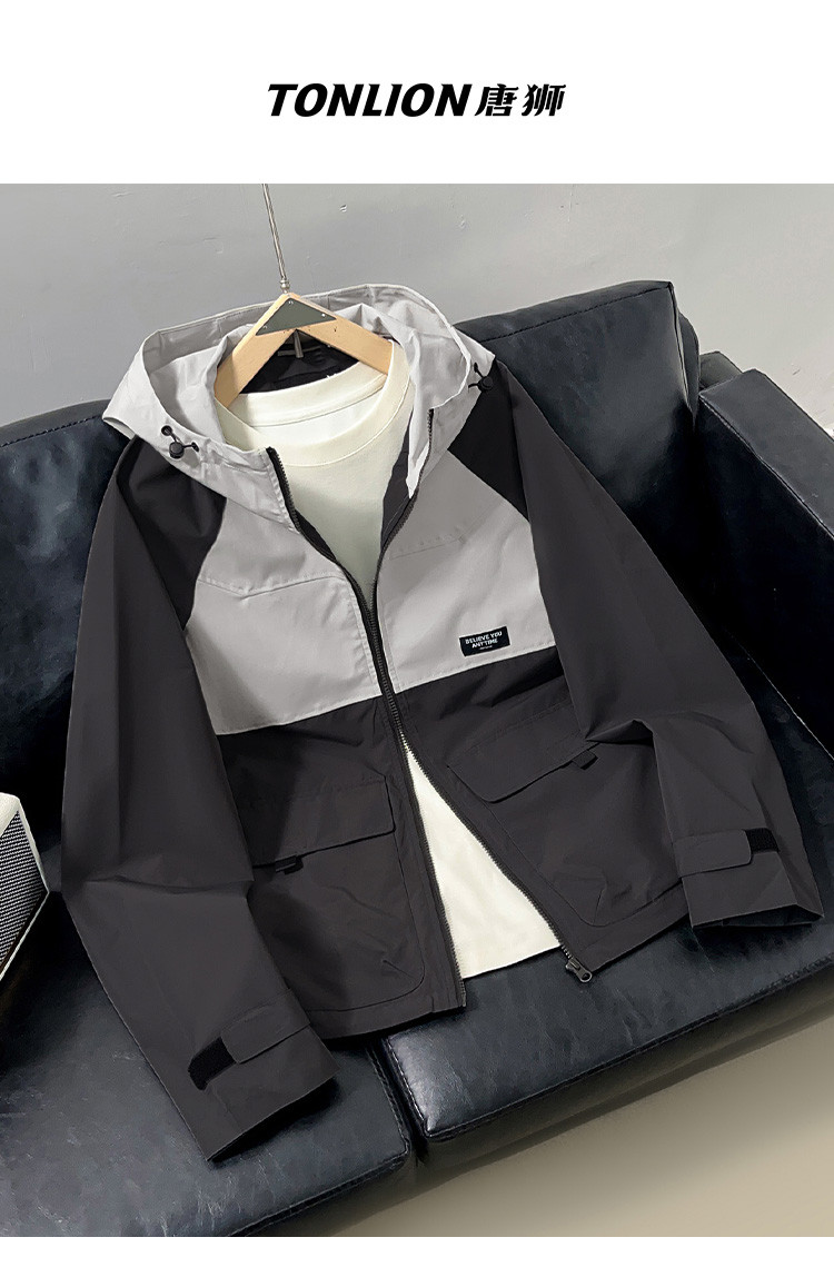 唐狮2025秋季外套男连帽夹克工装休闲潮拼接撞色外套上衣宽松韩版