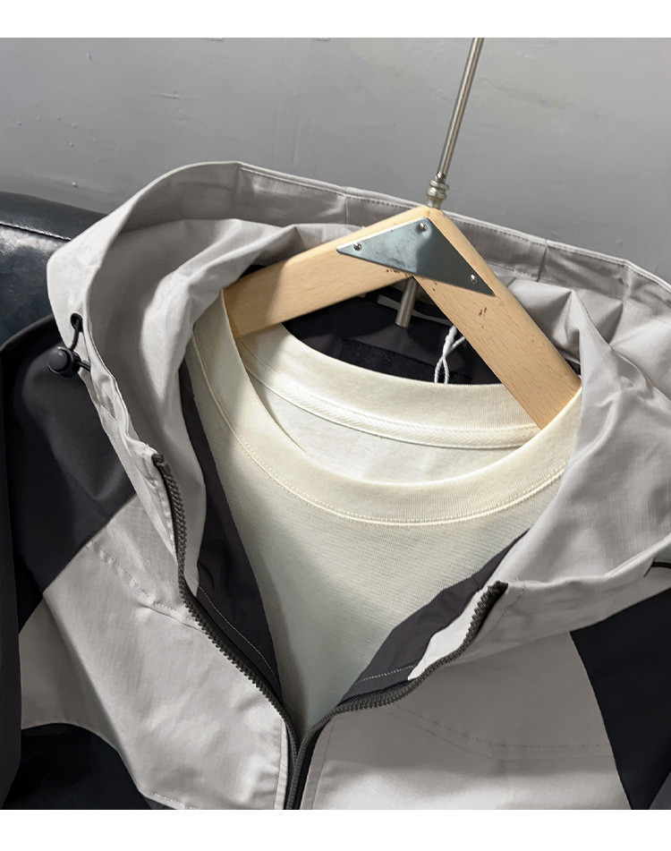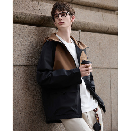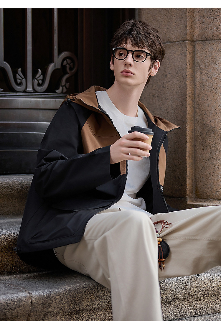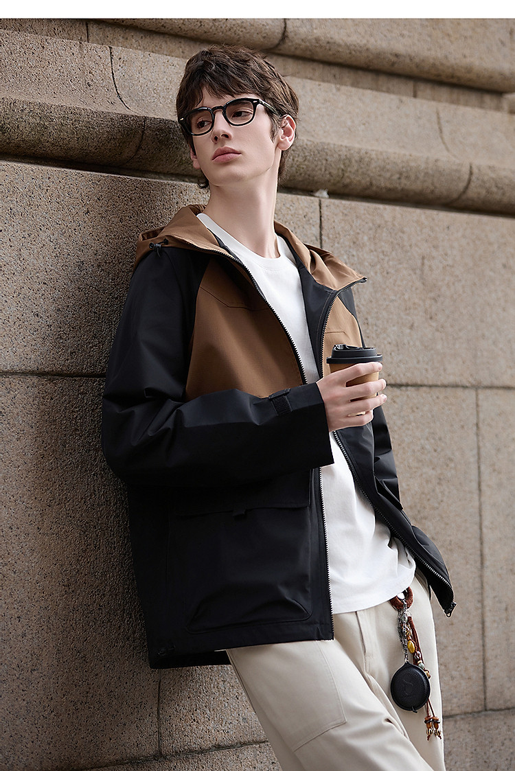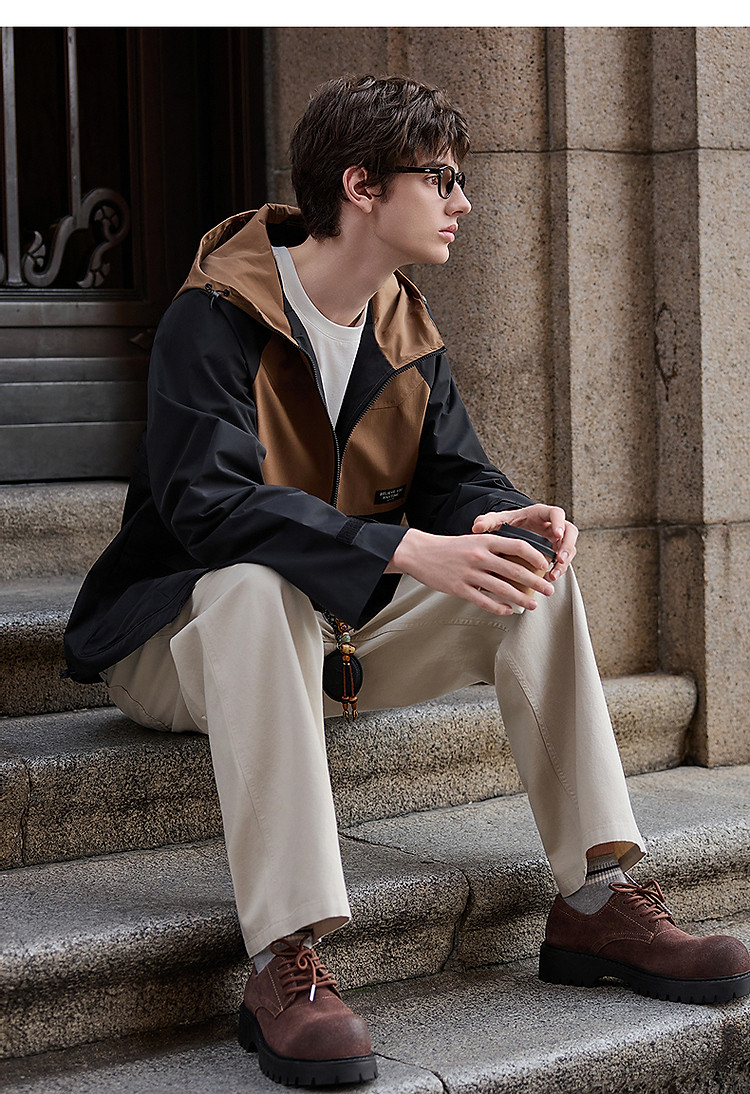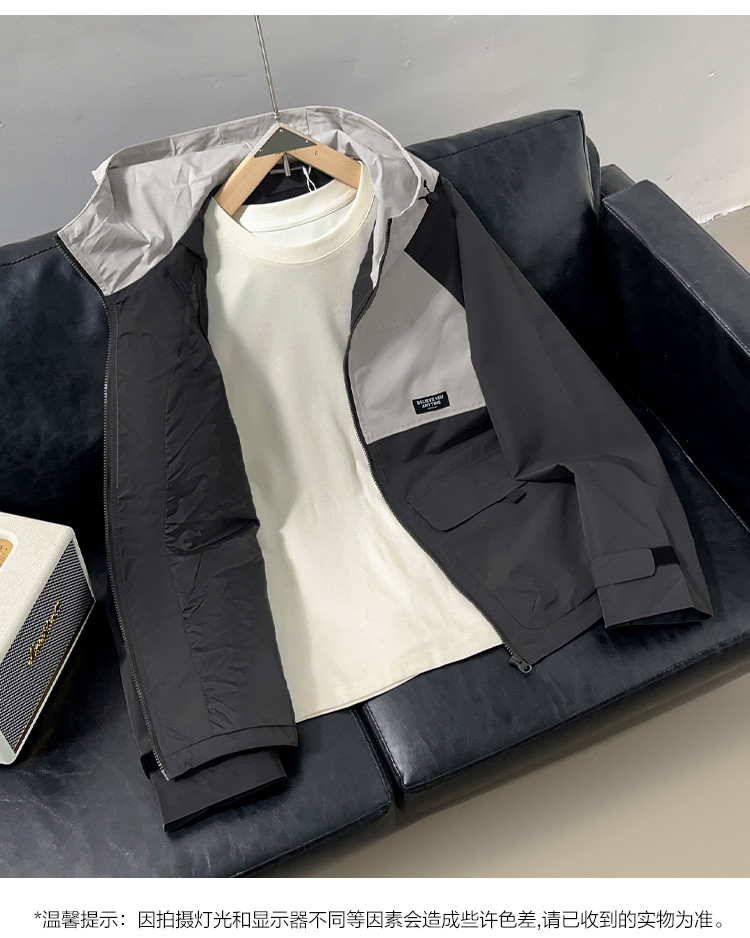唐狮2025秋季外套男连帽夹克工装休闲潮拼接撞色外套上衣宽松韩版