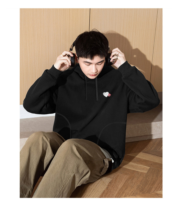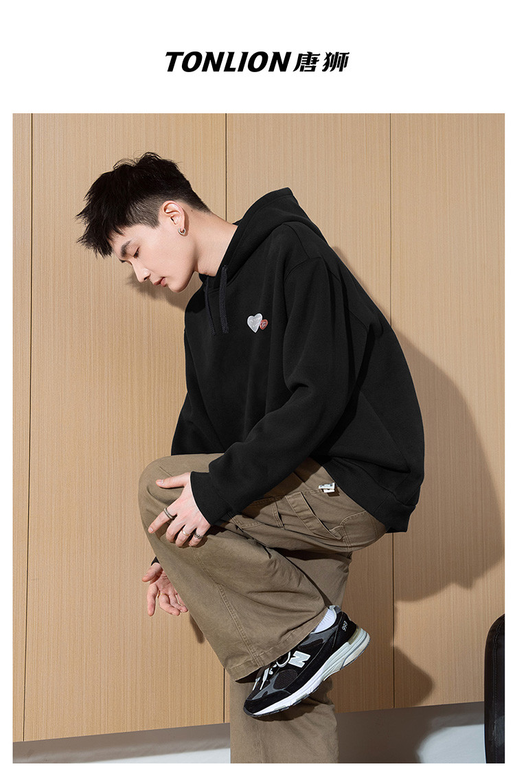 唐狮2026秋季新款男卫衣连帽休闲情侣男左胸爱心图案印花连帽卫衣