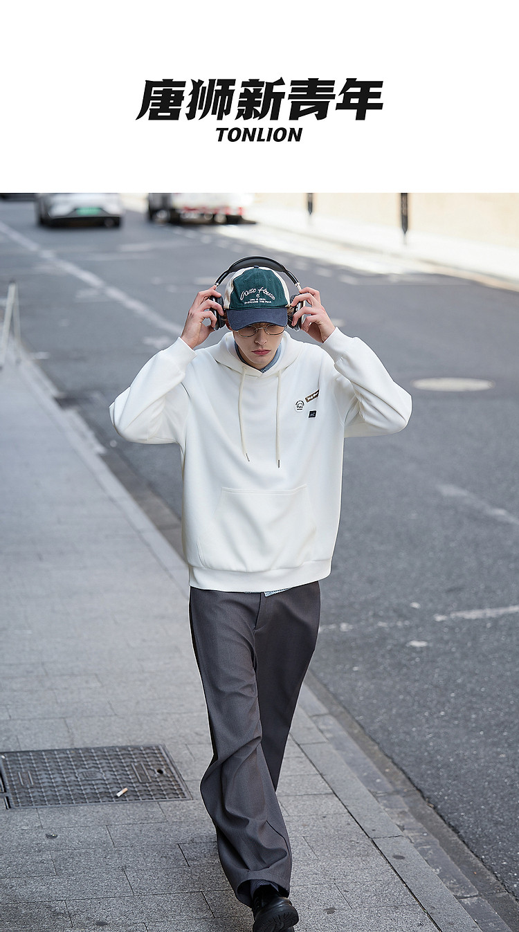 唐狮秋冬新款卫衣男士连帽衫美式青少年外套上衣外套加绒潮流
