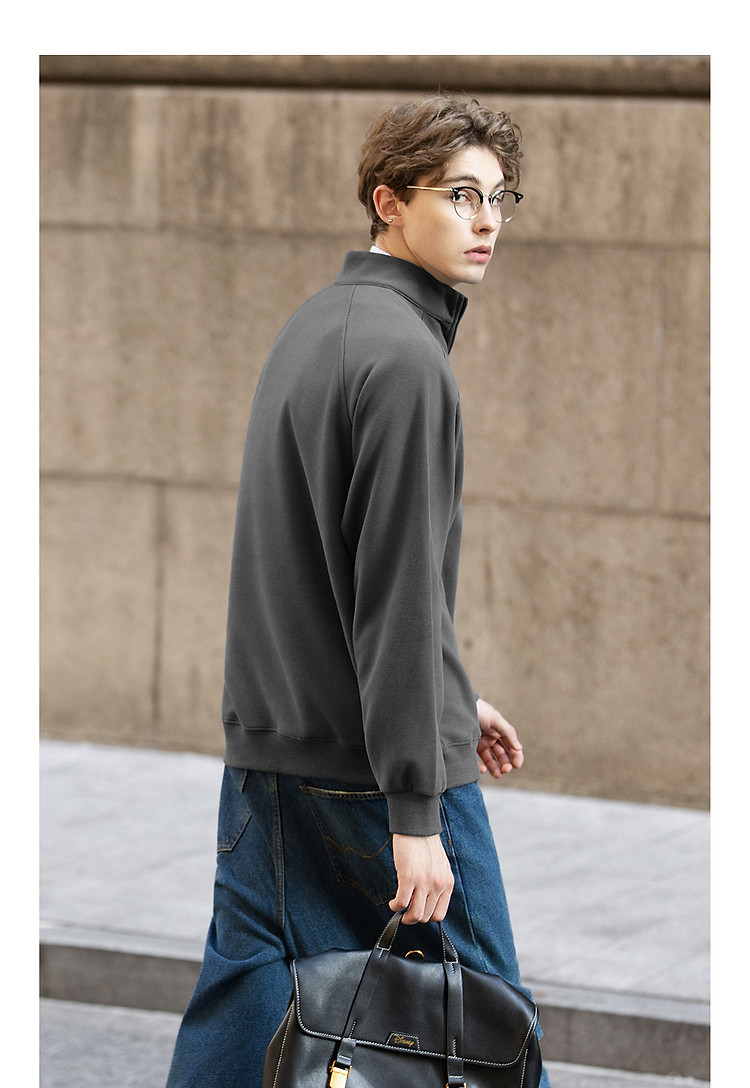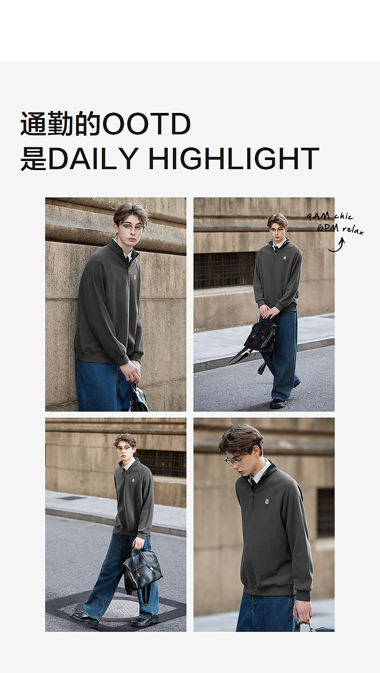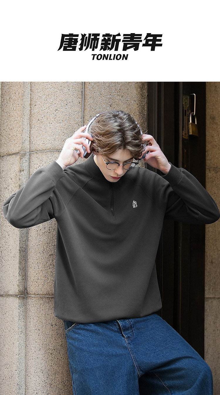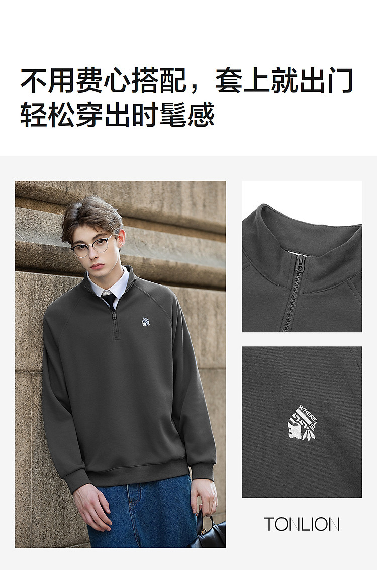 唐狮2026秋季长袖polo衫男立领精致刺绣翻领灰色拉链半开襟休闲
