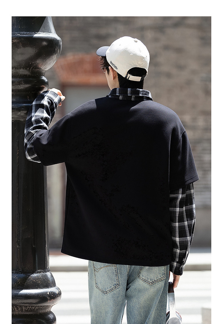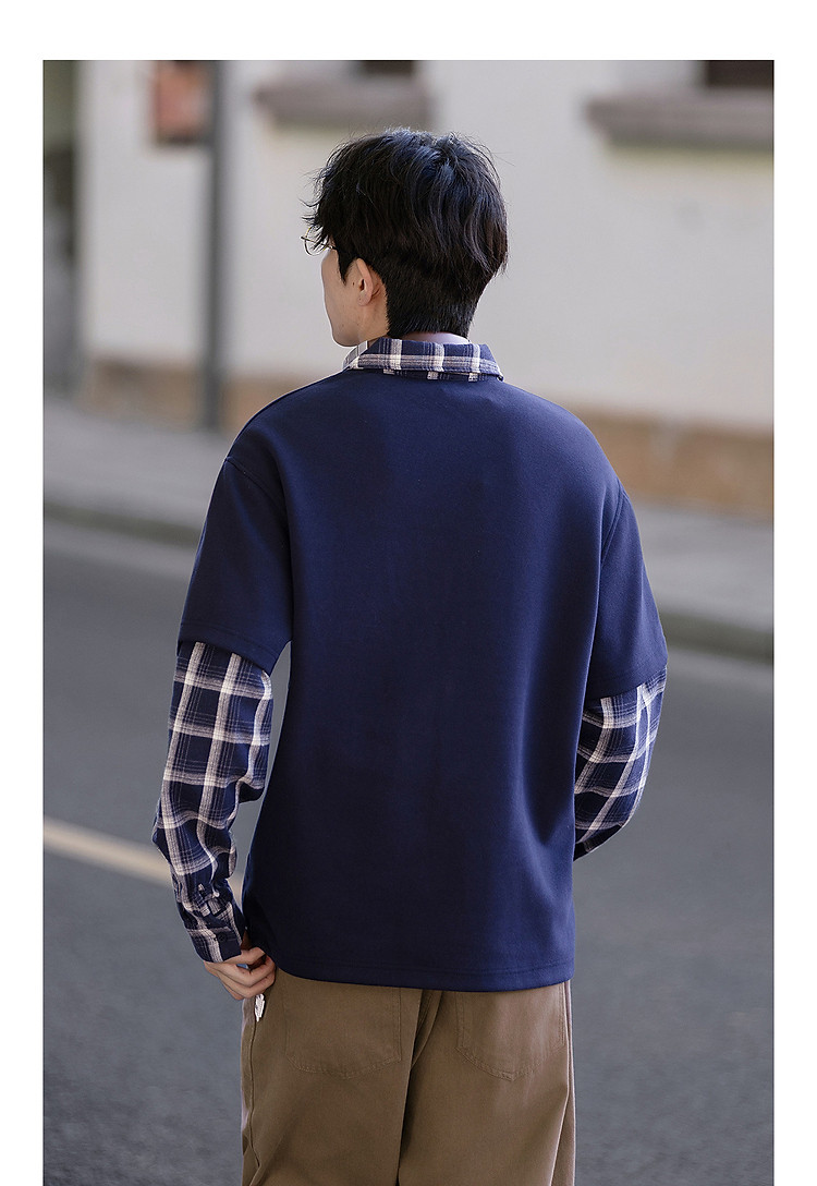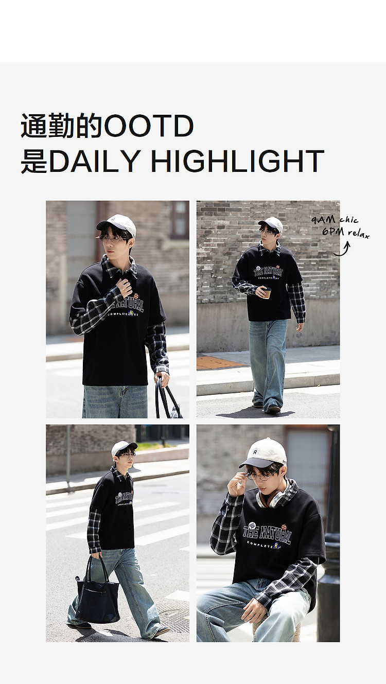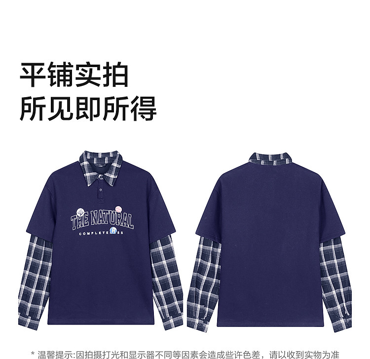 唐狮男款长袖polo2026春秋新款假两件字母印花设计感独特翻领上衣