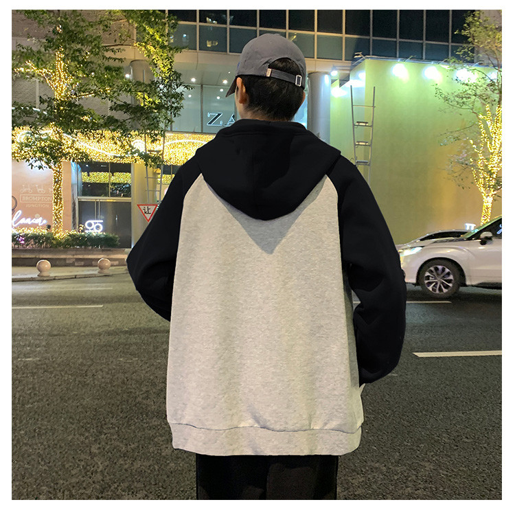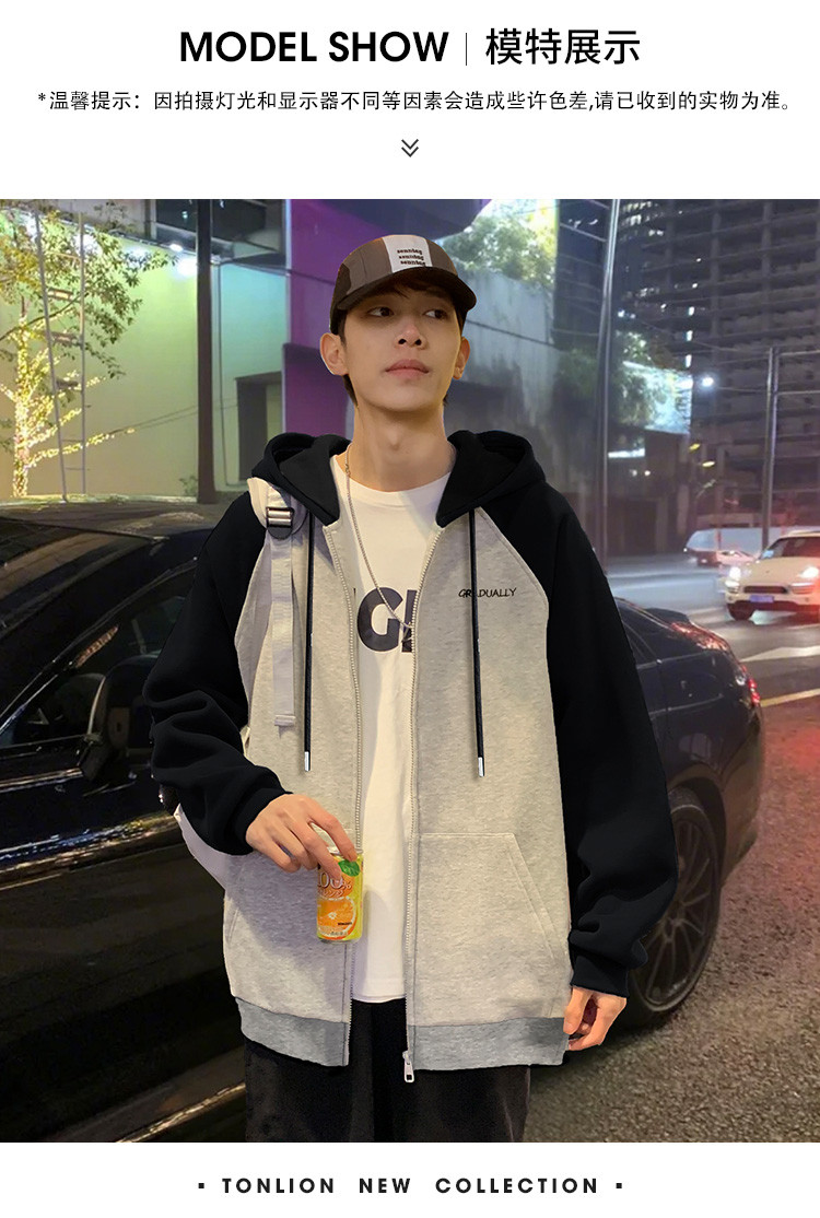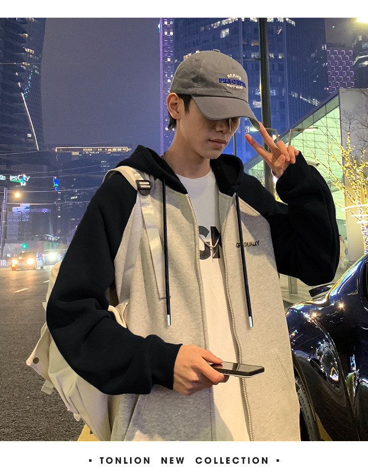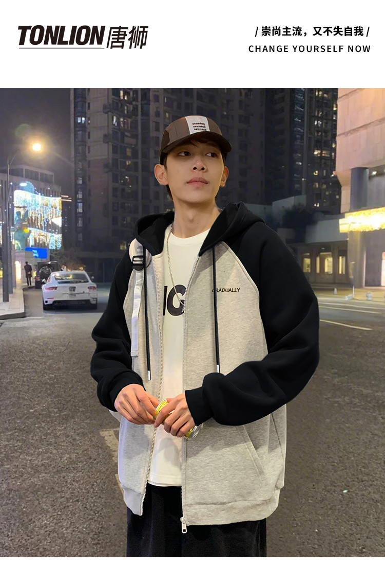 唐狮2025春秋季新款外套男字母刺绣撞色设计感休闲风连帽开衫卫衣