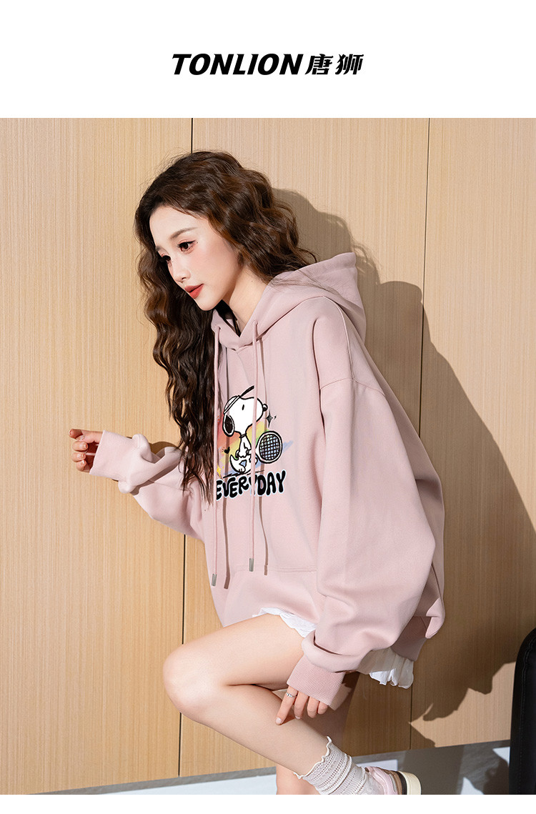 【史努比联名款】唐狮2026春秋季情侣款卡通印花设计感连帽卫衣