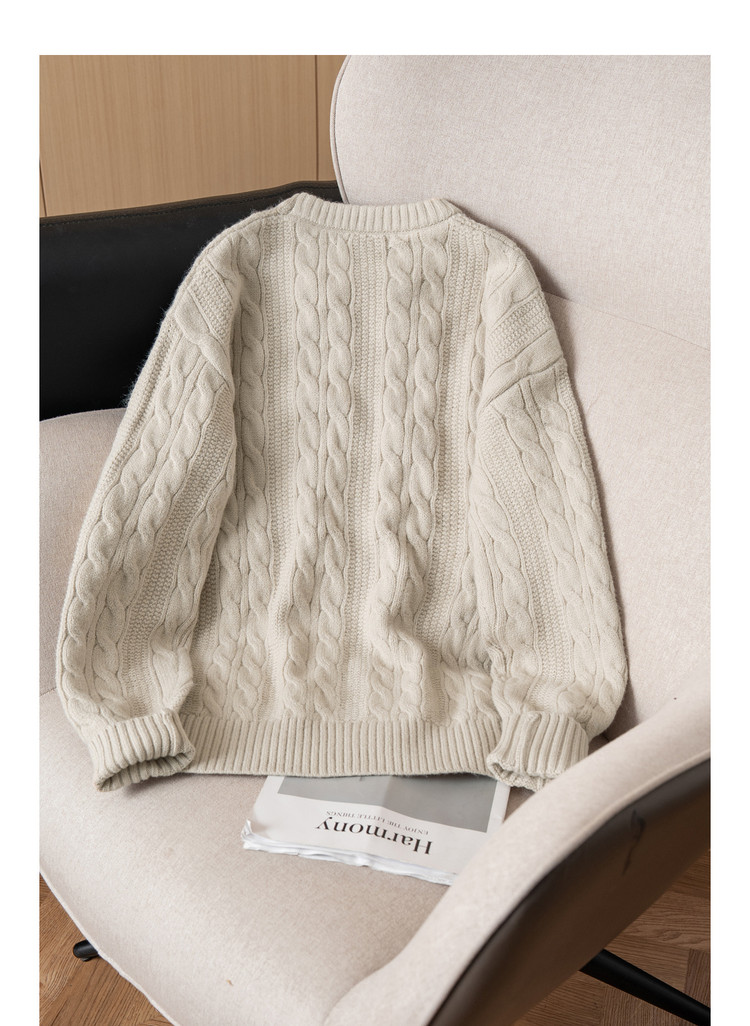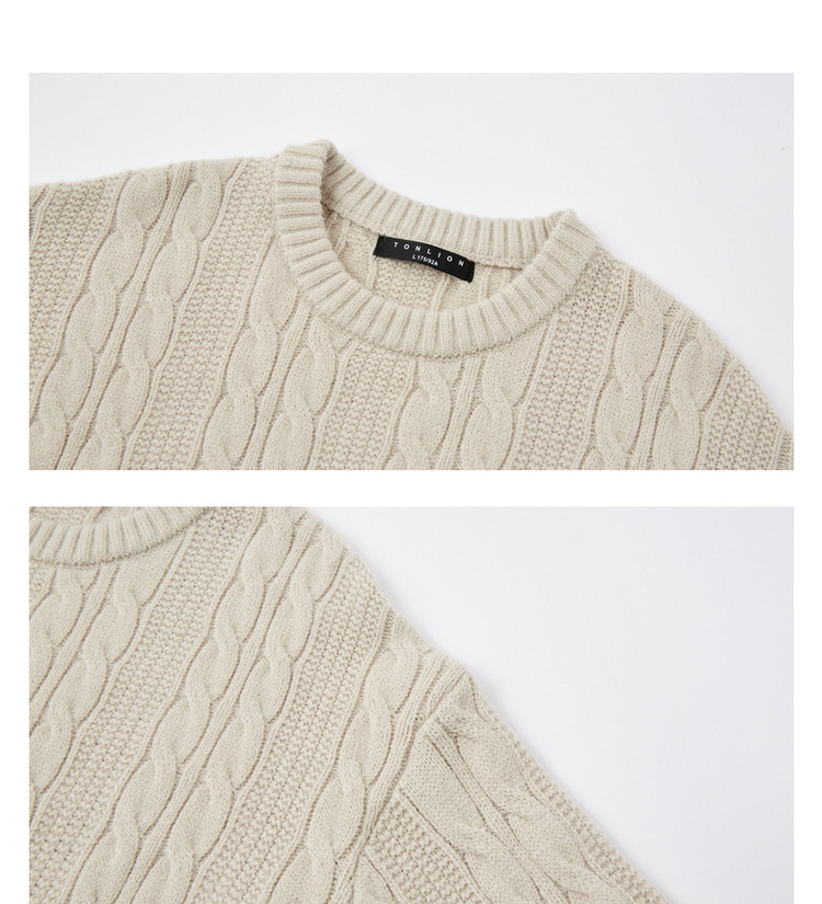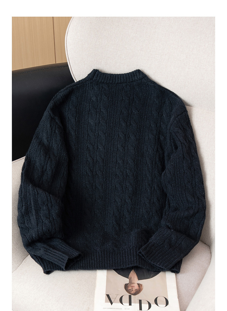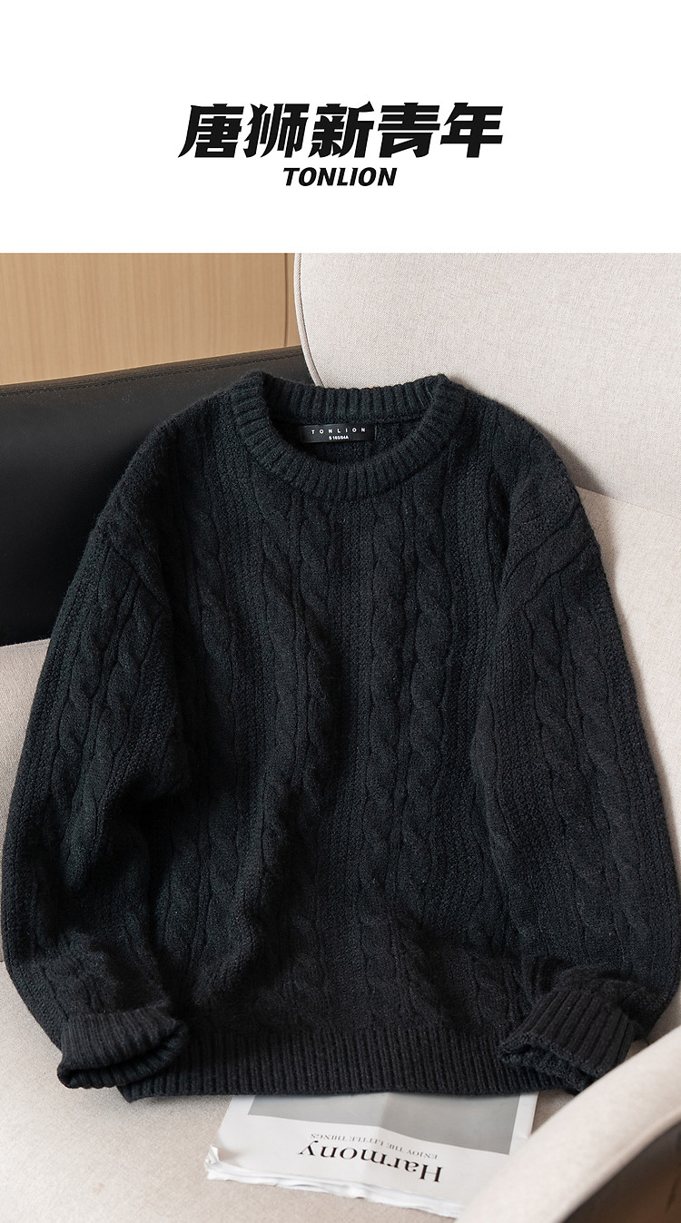 唐狮秋冬季新款麻花毛衣男士复古青少年慵懒风圆领针织毛衫潮
