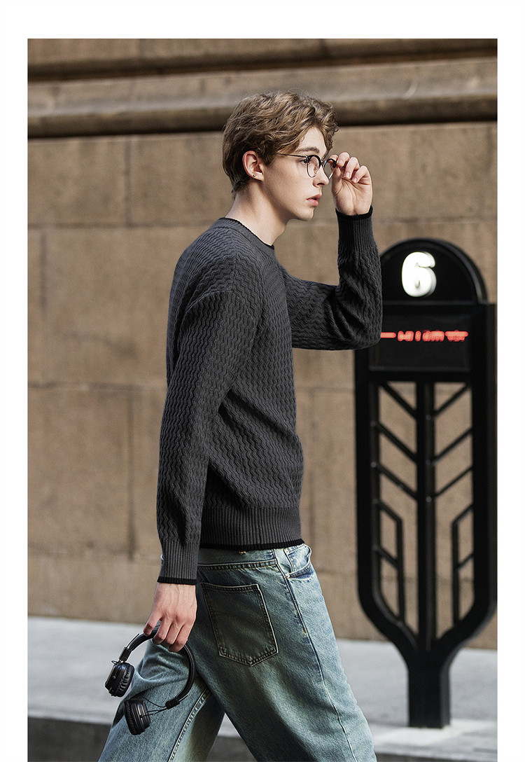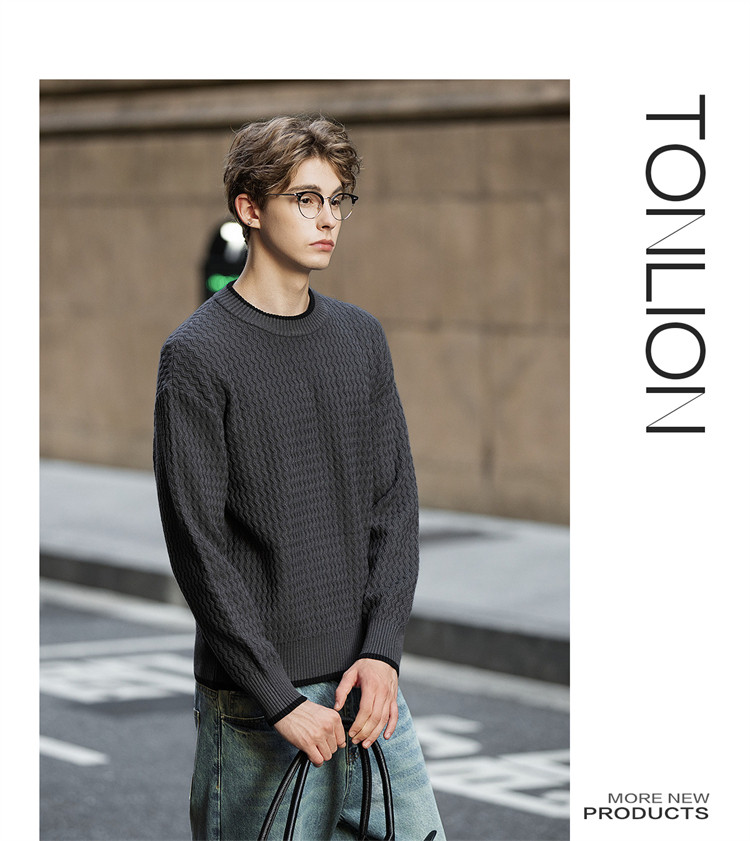 唐狮秋冬季新款麻花毛衣男士复古青少年慵懒风圆领针织毛衫潮
