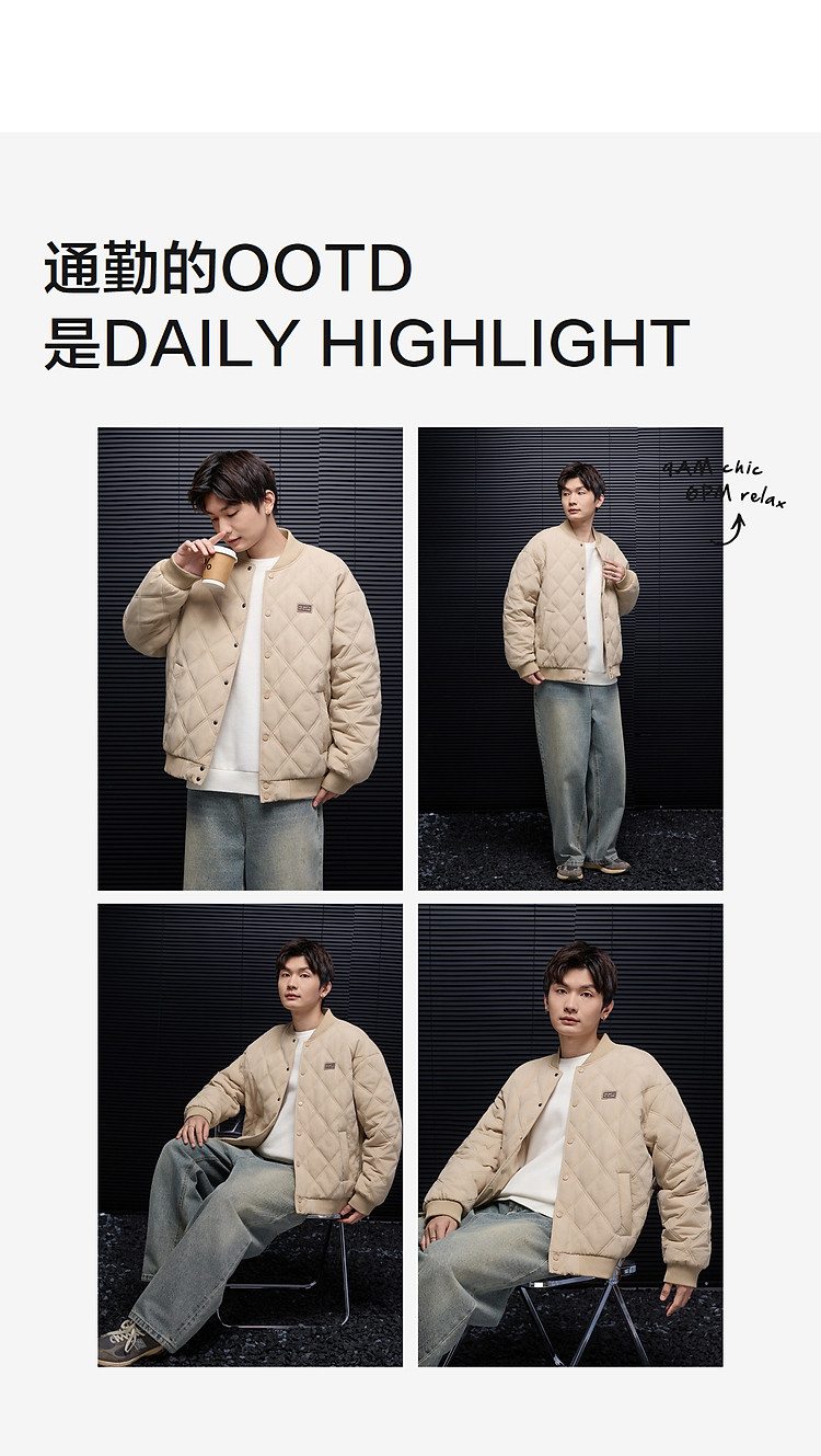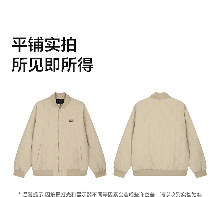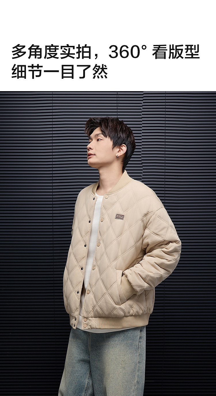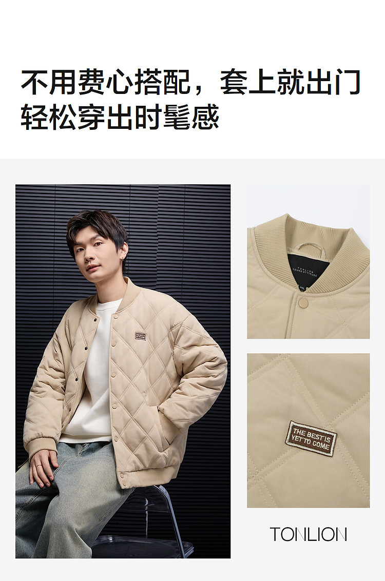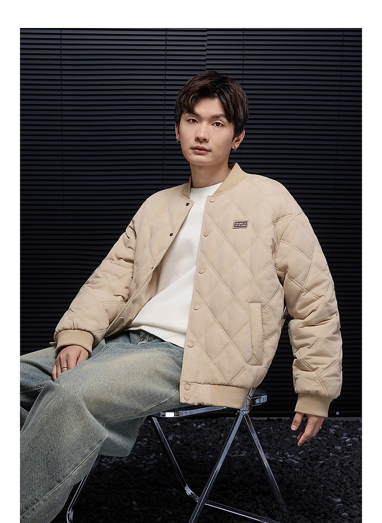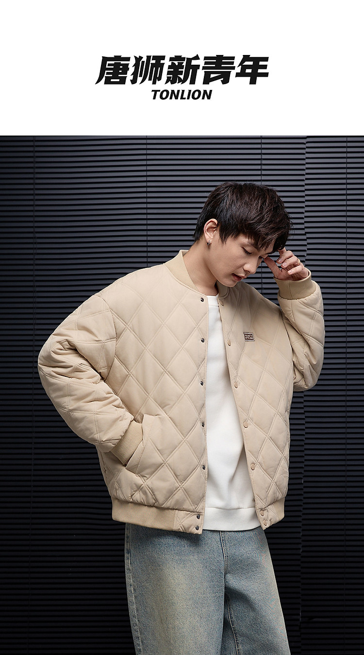 唐狮秋冬季新款棉衣男士棒球领菱形格运动棉服夹棉外套加厚防寒服