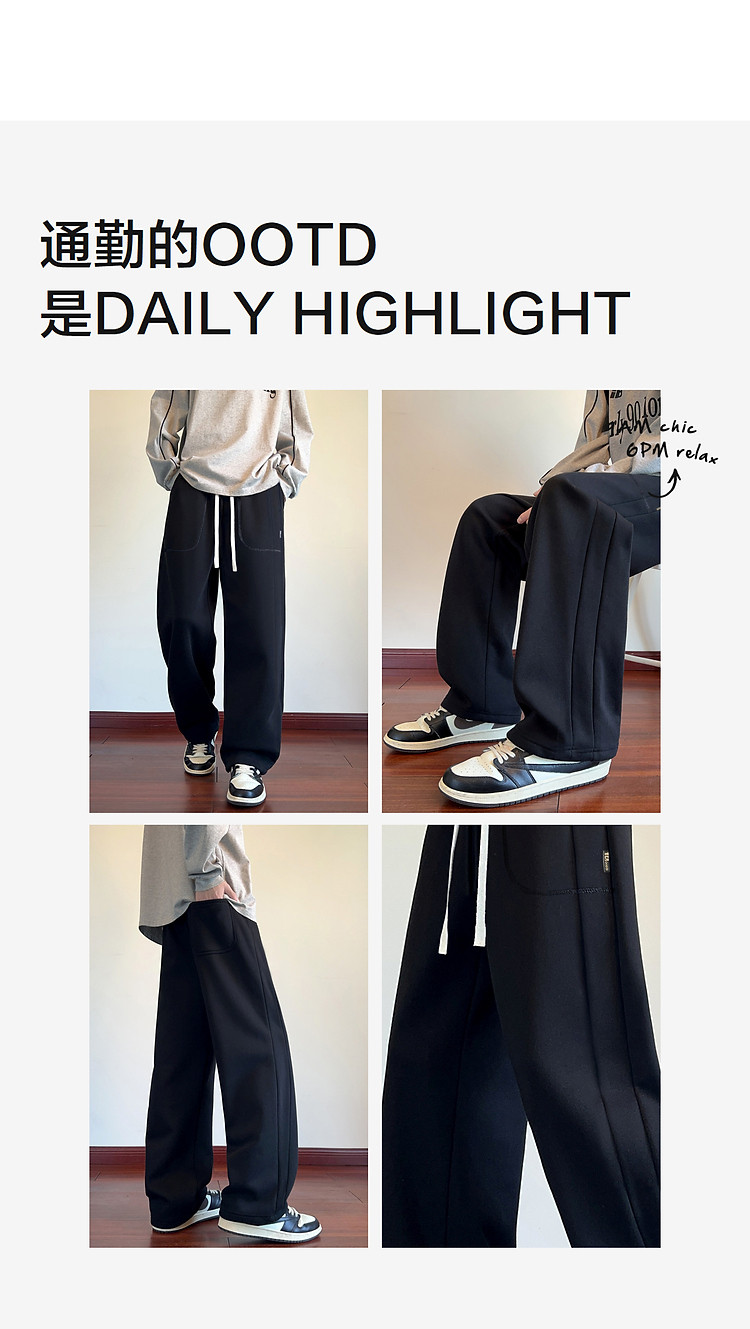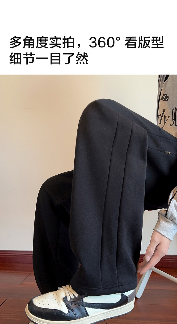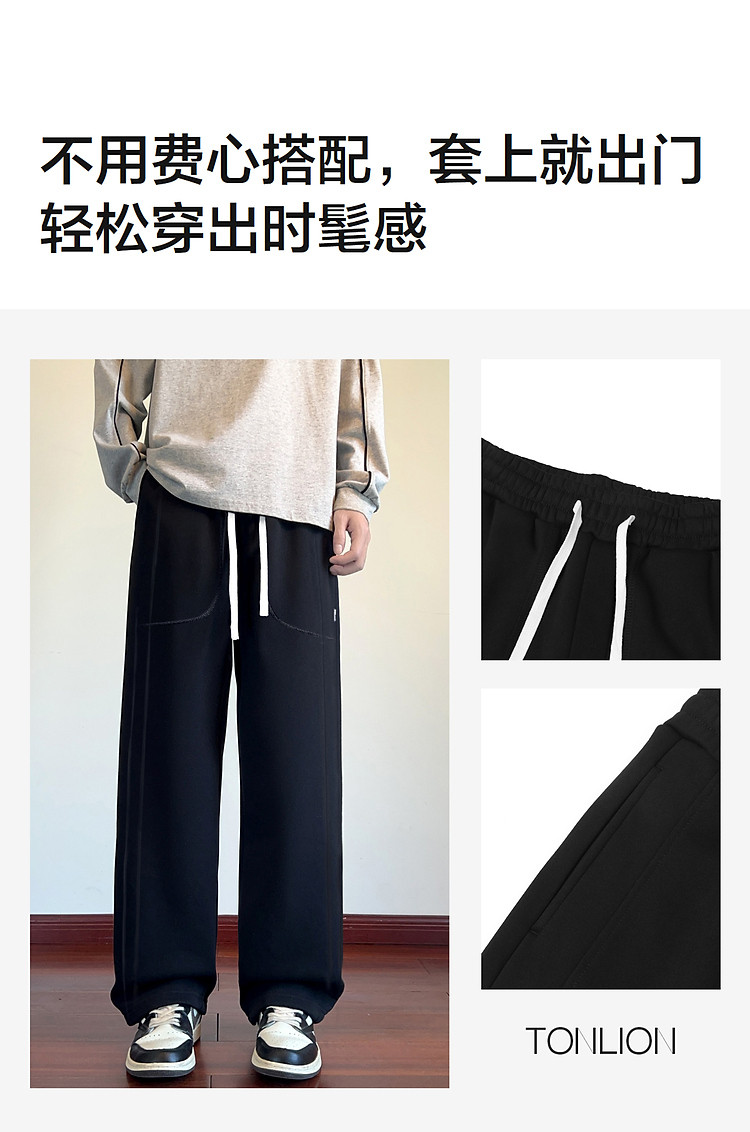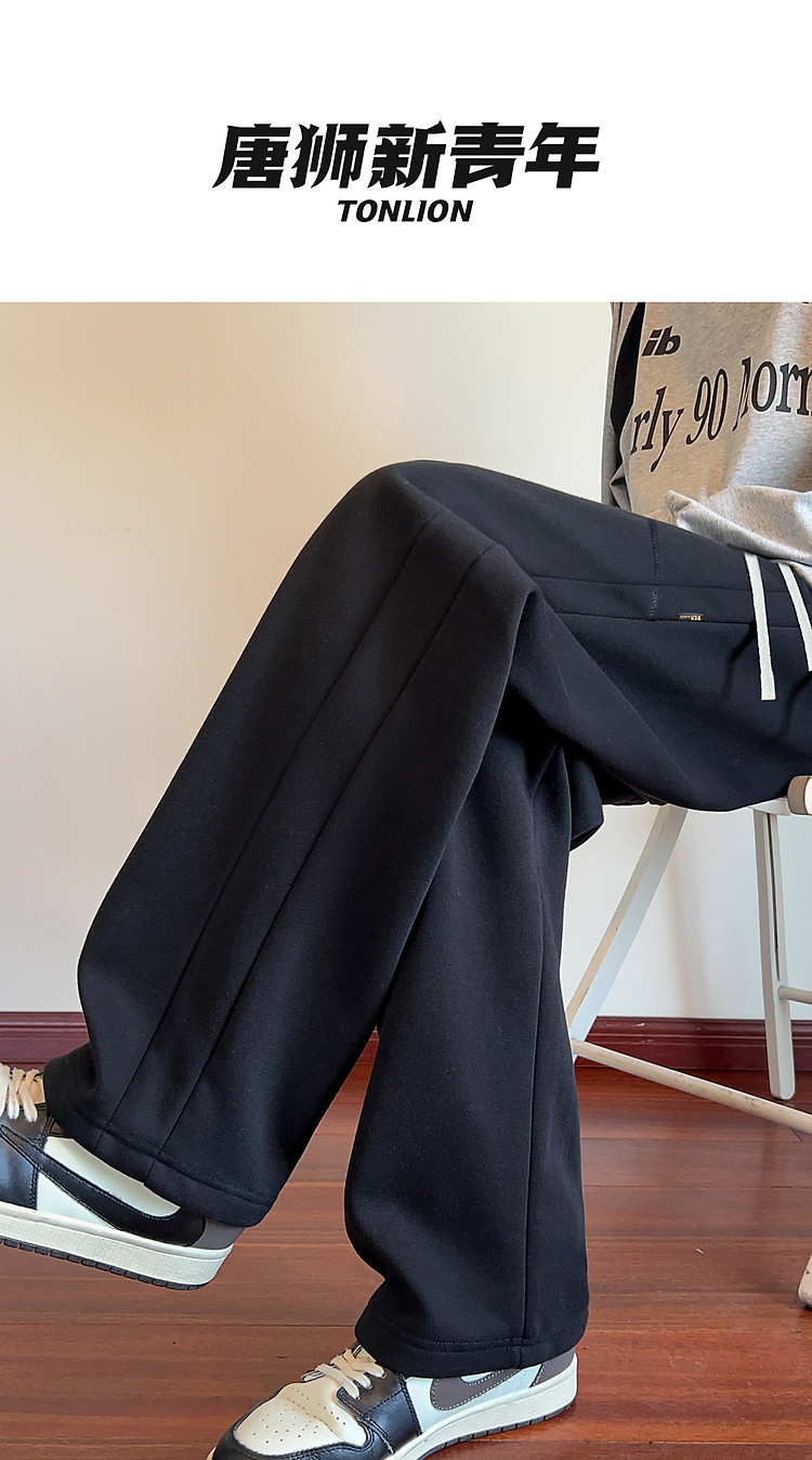 唐狮秋冬季新款运动裤男阔腿卫裤宽松休闲长裤子直筒男生黑色