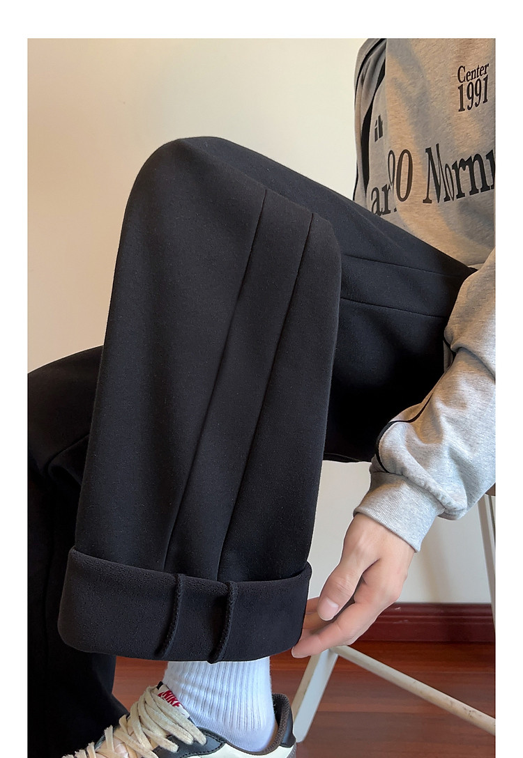 唐狮2026冬季男加绒牛仔长裤炭黑色侧边设计显瘦美式复古风穿搭w