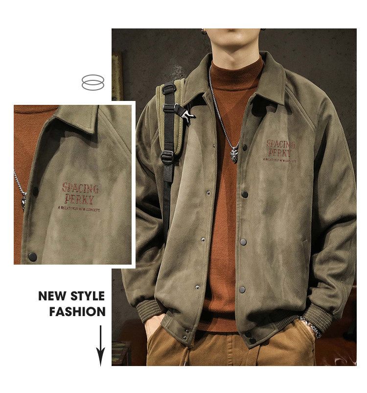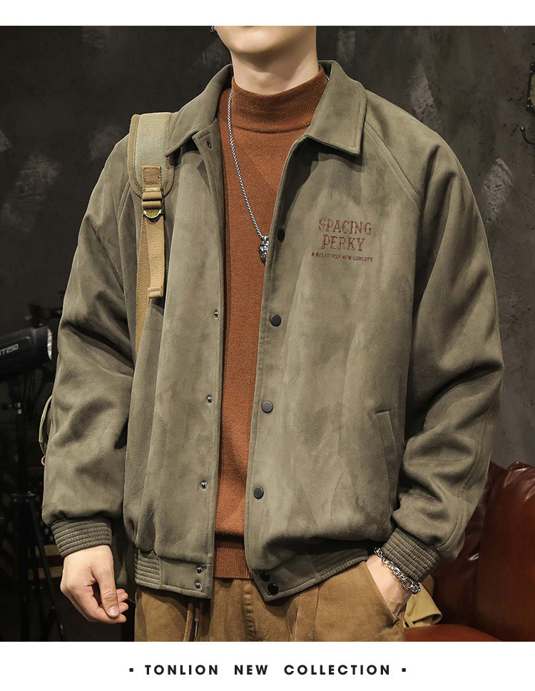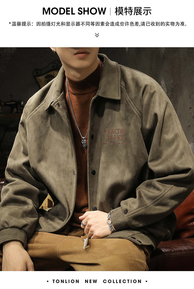 唐狮2026新款春秋季男长袖衬衫翻领领左胸文字休闲慵懒风外套潮