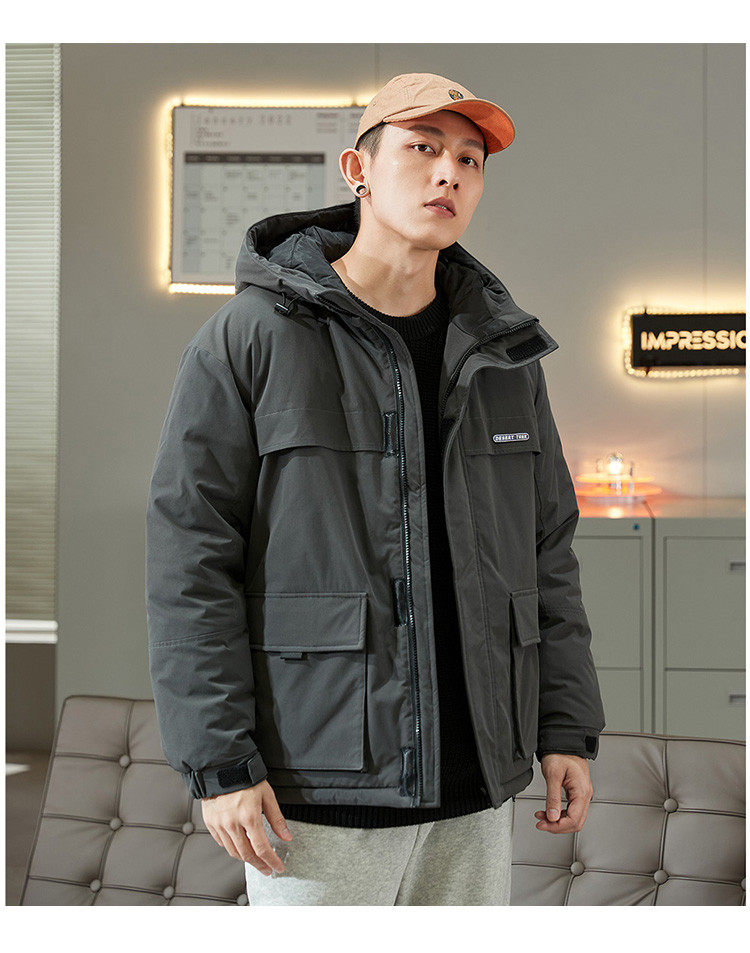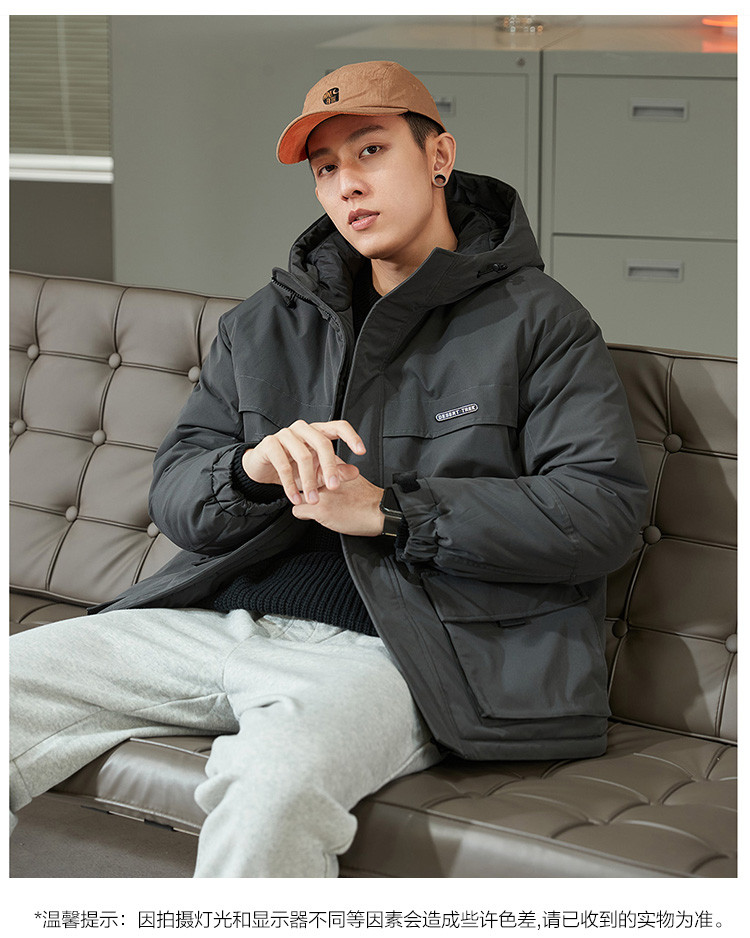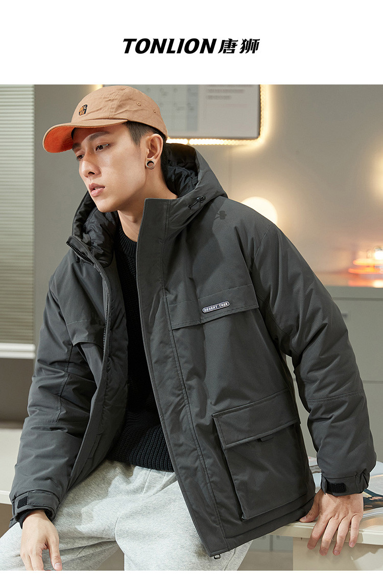 唐狮2026冬季男连帽前胸小标短款工装棉衣百搭简约日常高级感