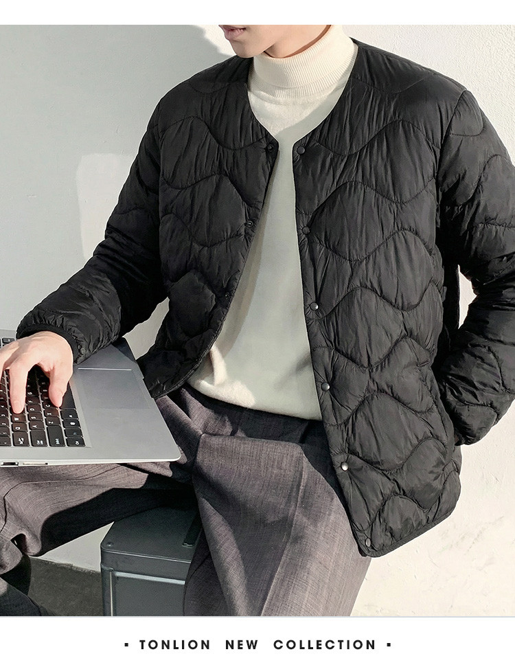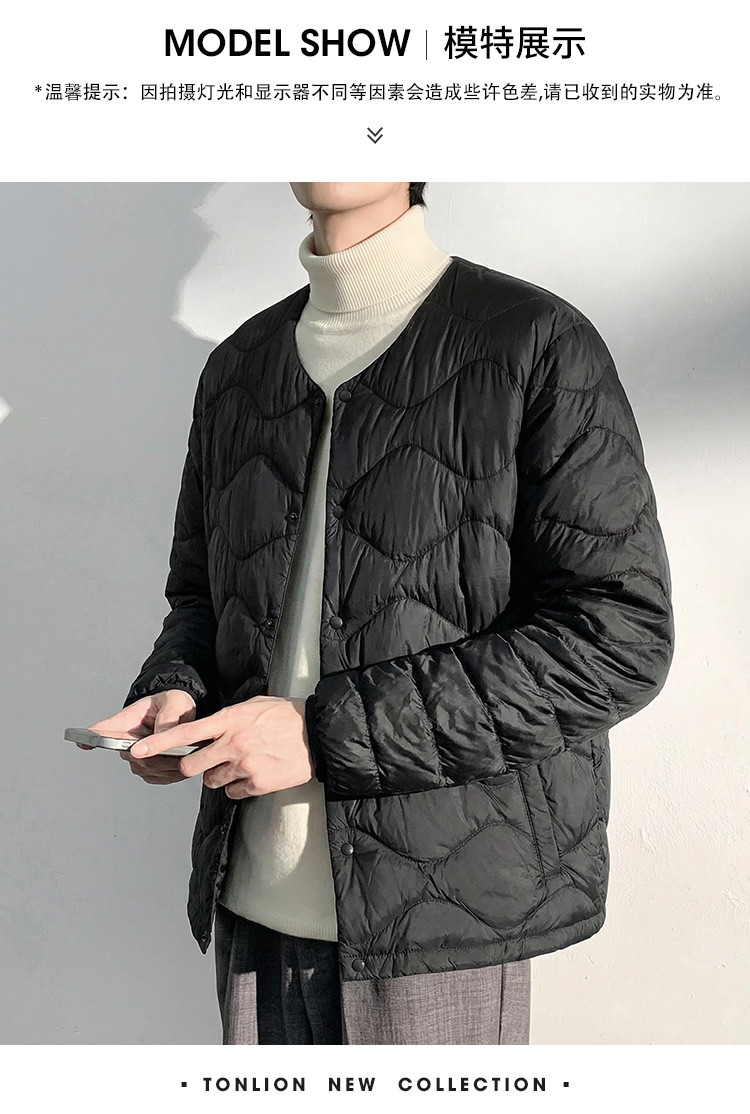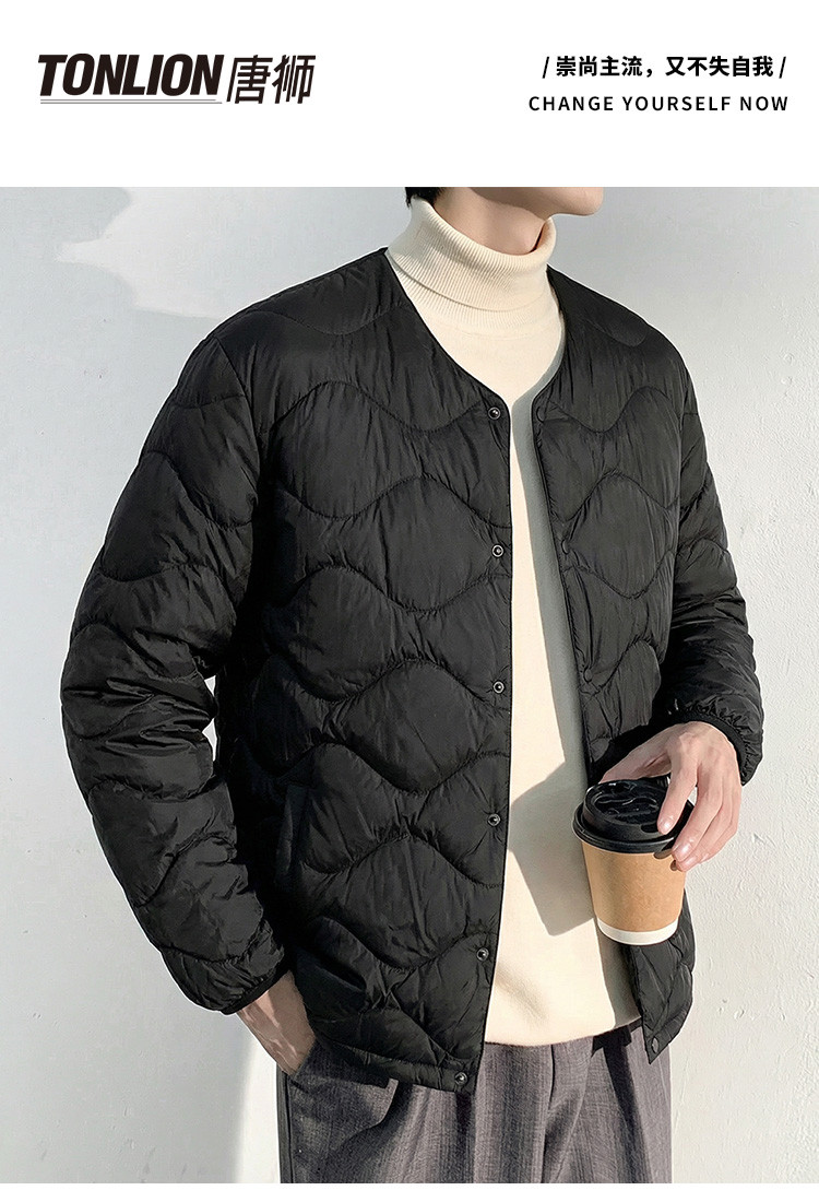 唐狮2026冬季短款轻薄羽绒服男小v领黑色设计感商务简约气质高级