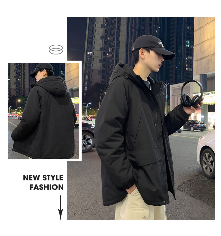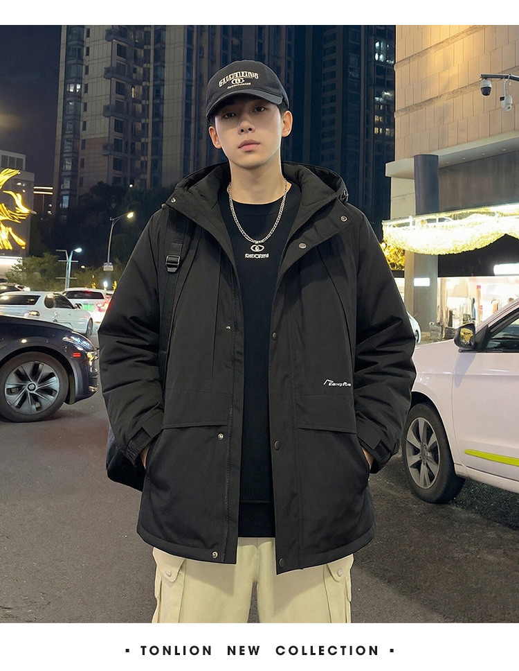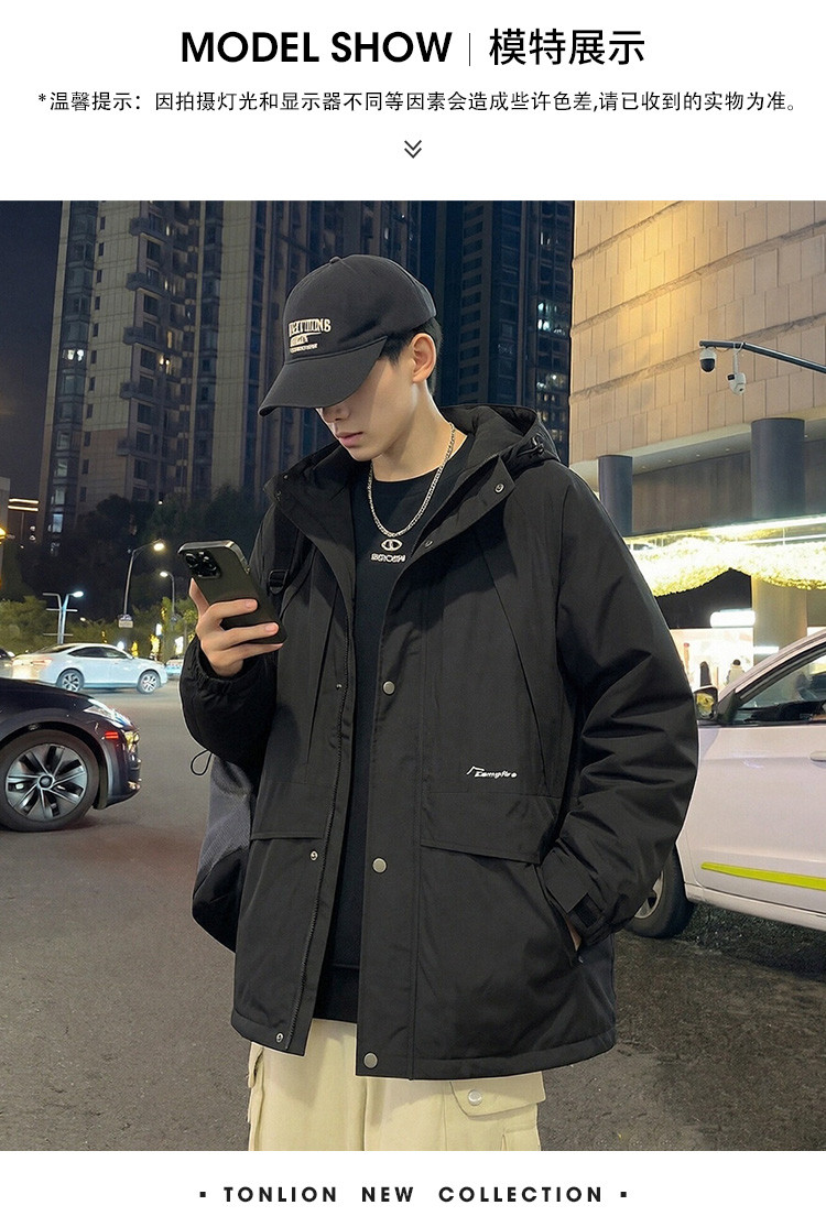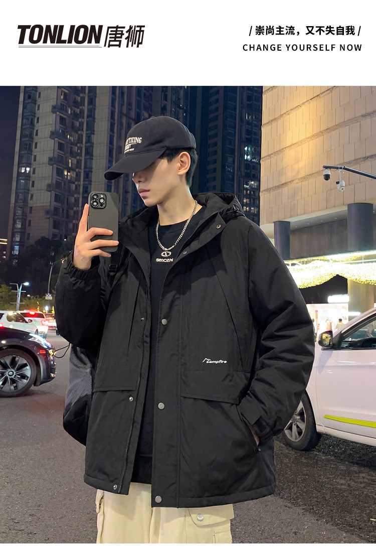 唐狮2026秋冬季短款羽绒服男连帽黑色潮流百搭保暖加厚羽绒外套