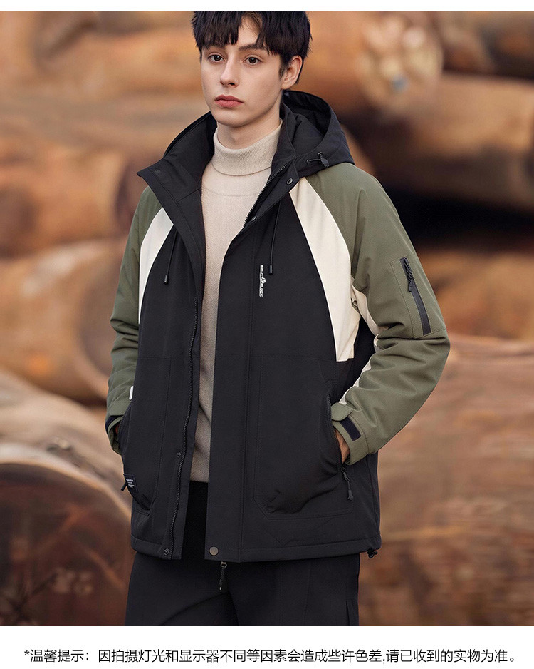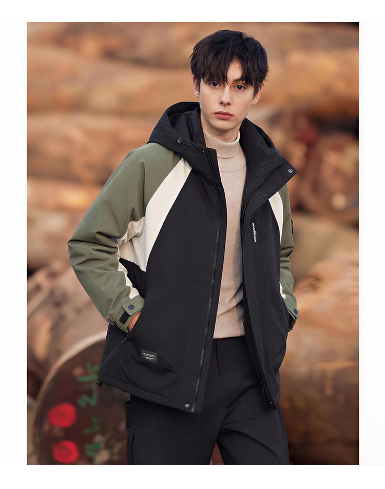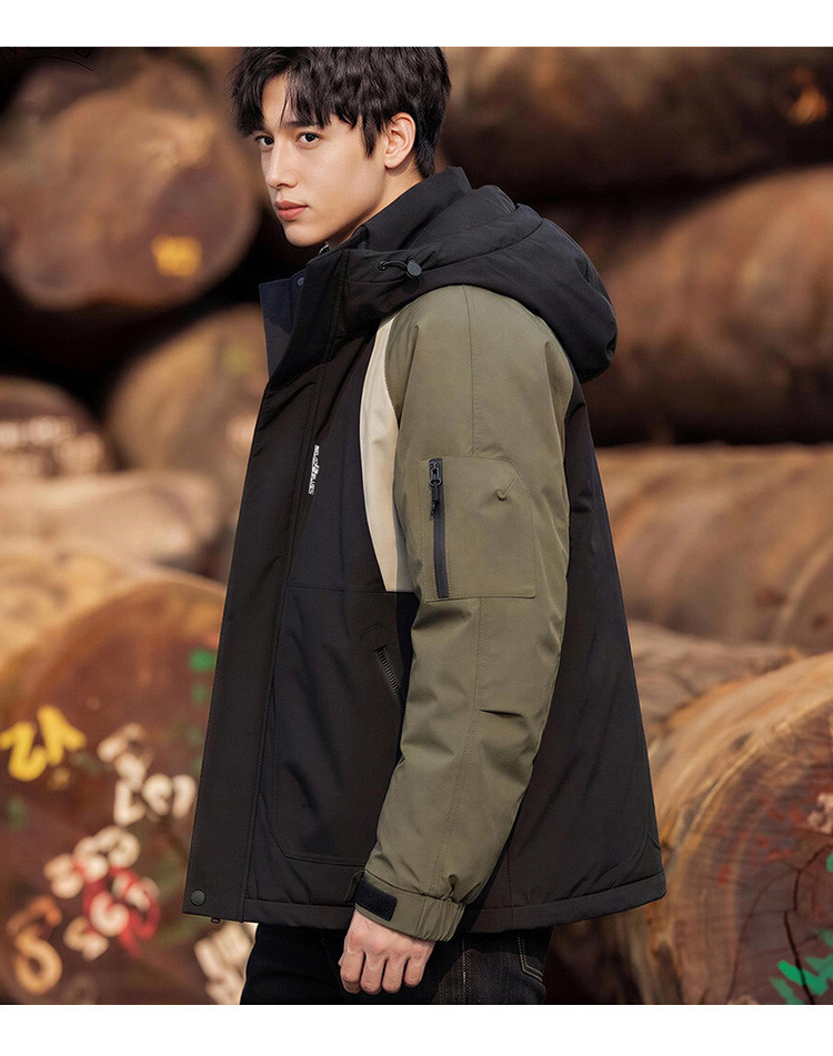 唐狮2026秋冬季短款工装羽绒服男连帽撞色拼接潮流百搭简约设计感