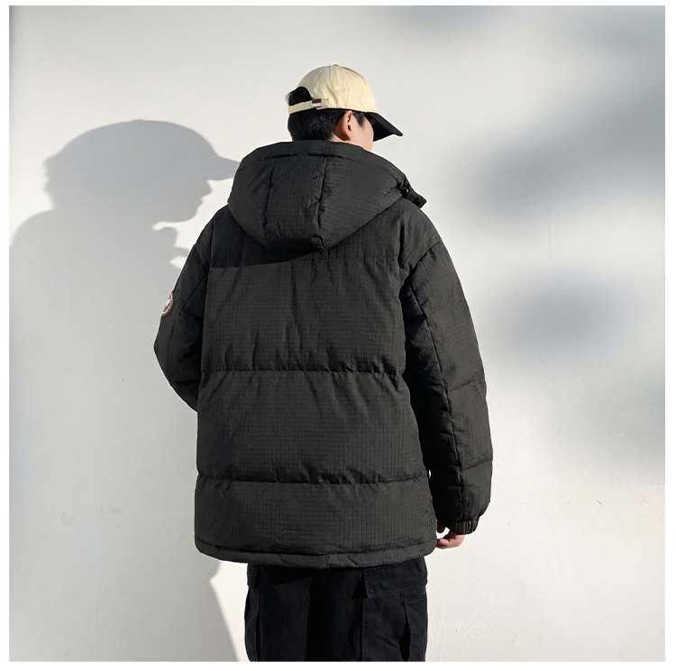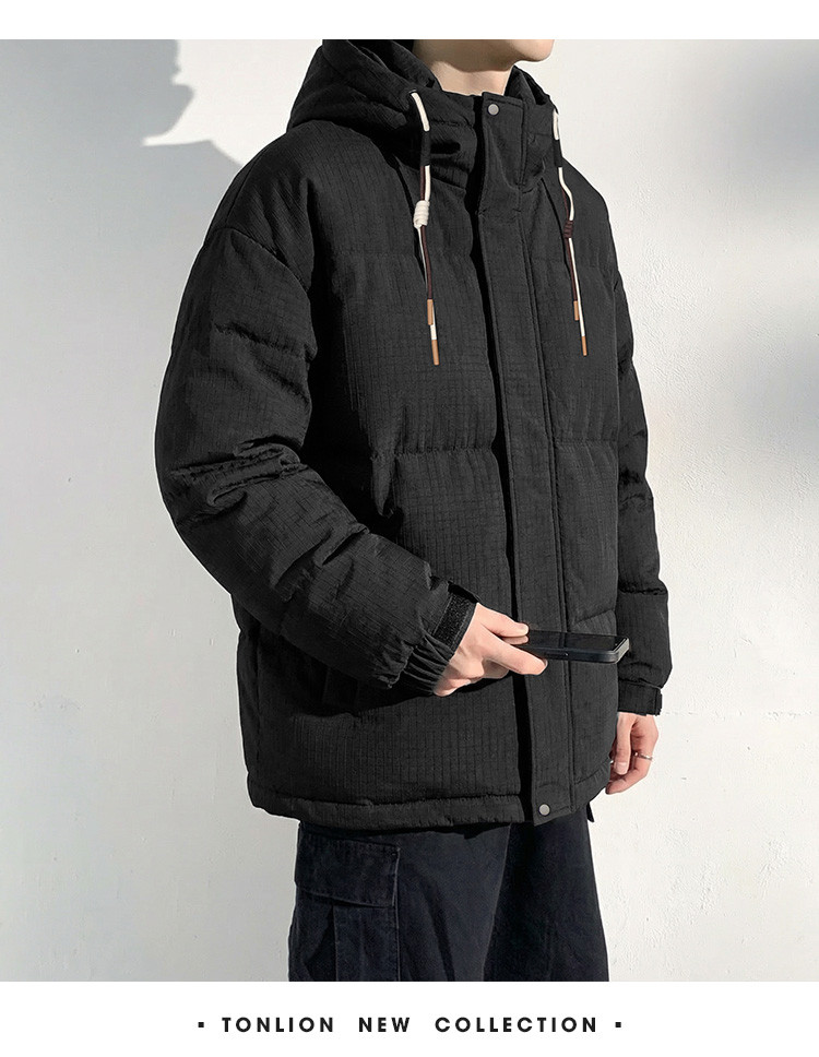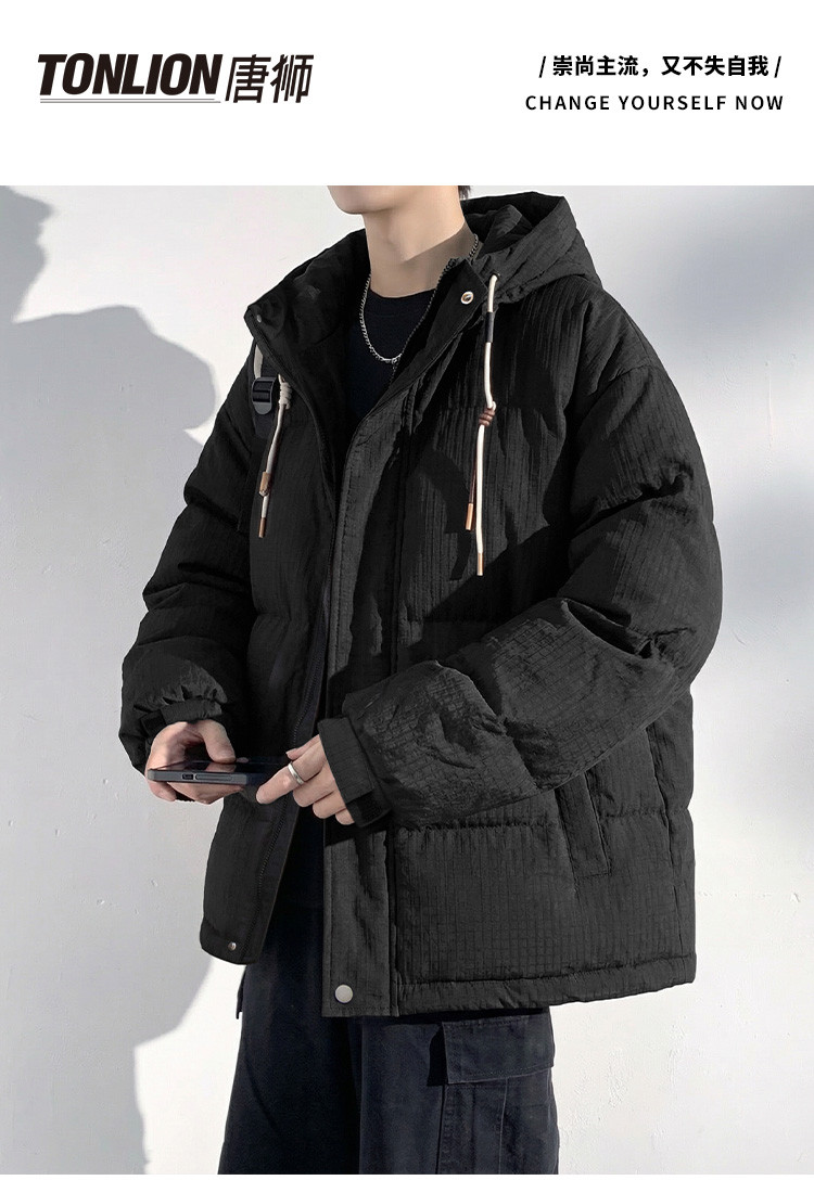 唐狮2026冬季短款羽绒服男连帽肌理感面料黑色羽绒外套保暖防寒