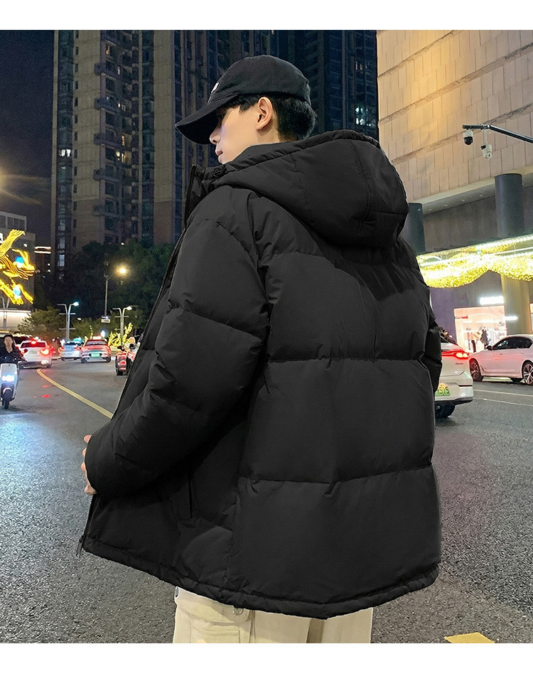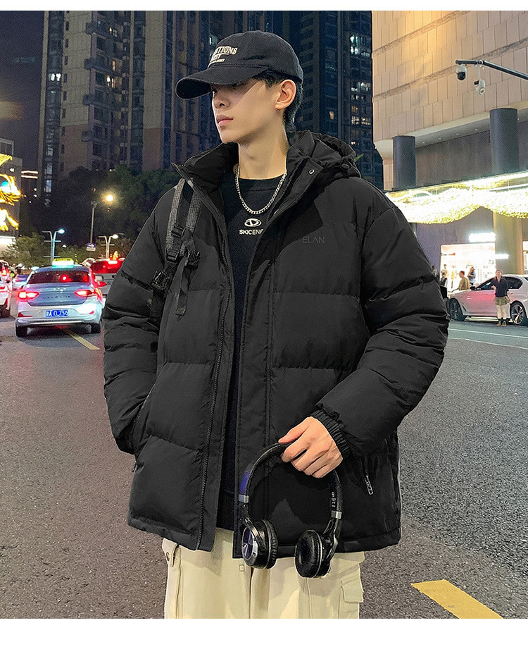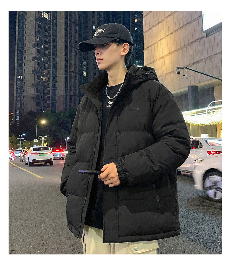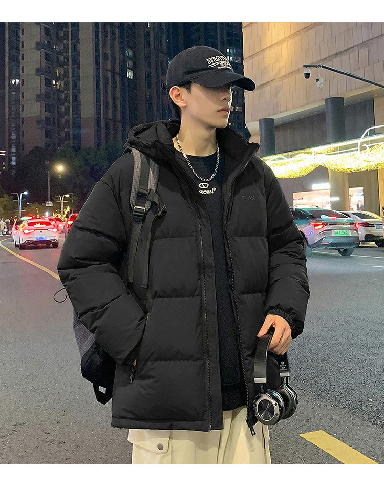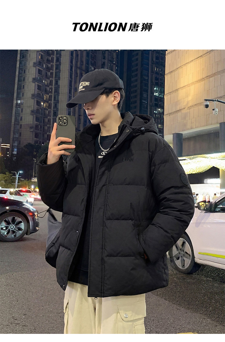 唐狮2025冬季短款羽绒服男生黑色连帽加厚保暖面包服时尚经典外套