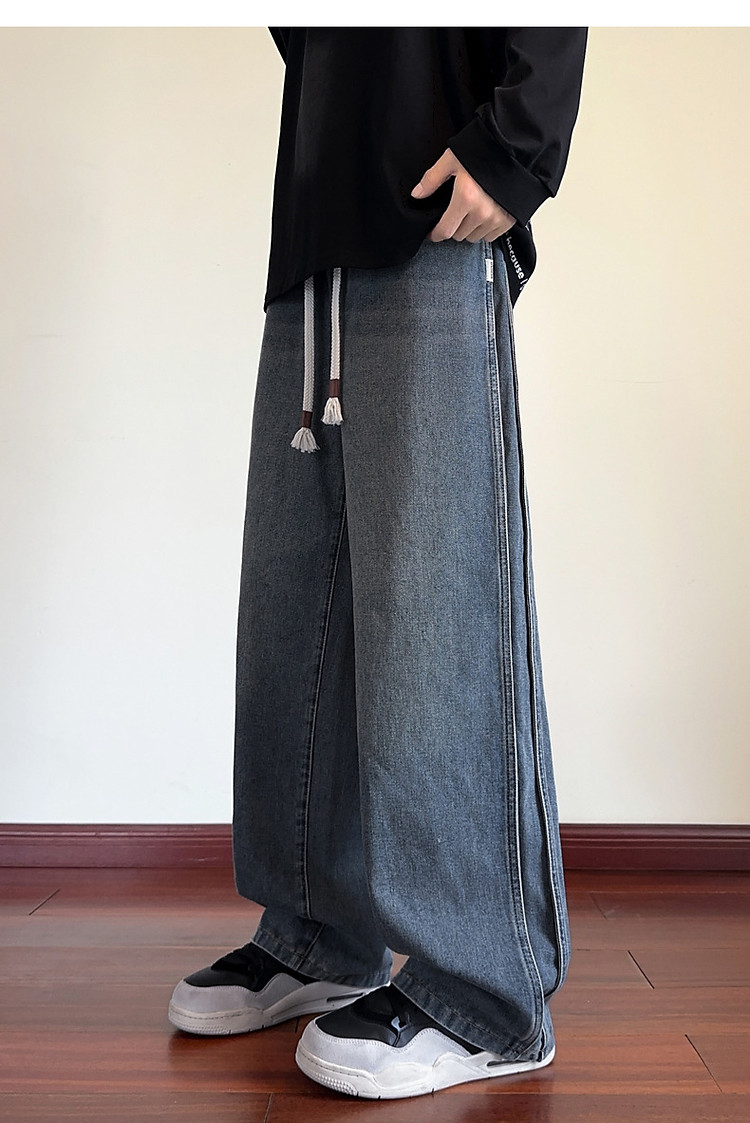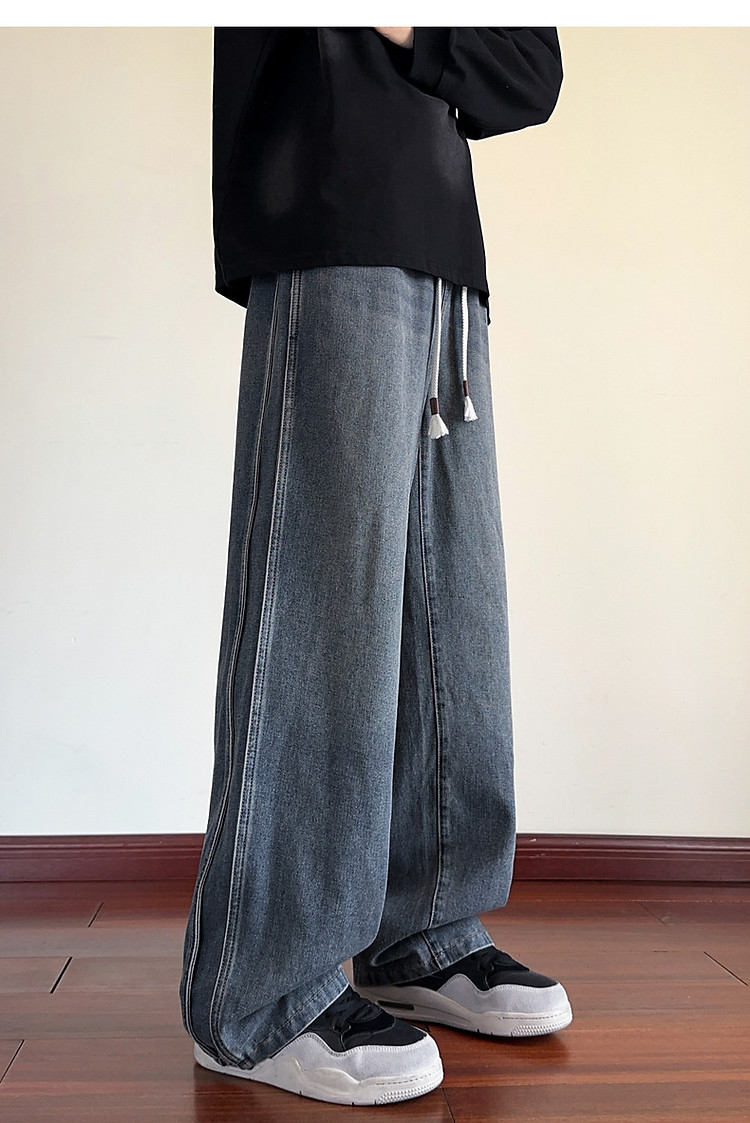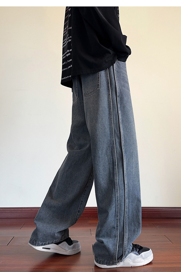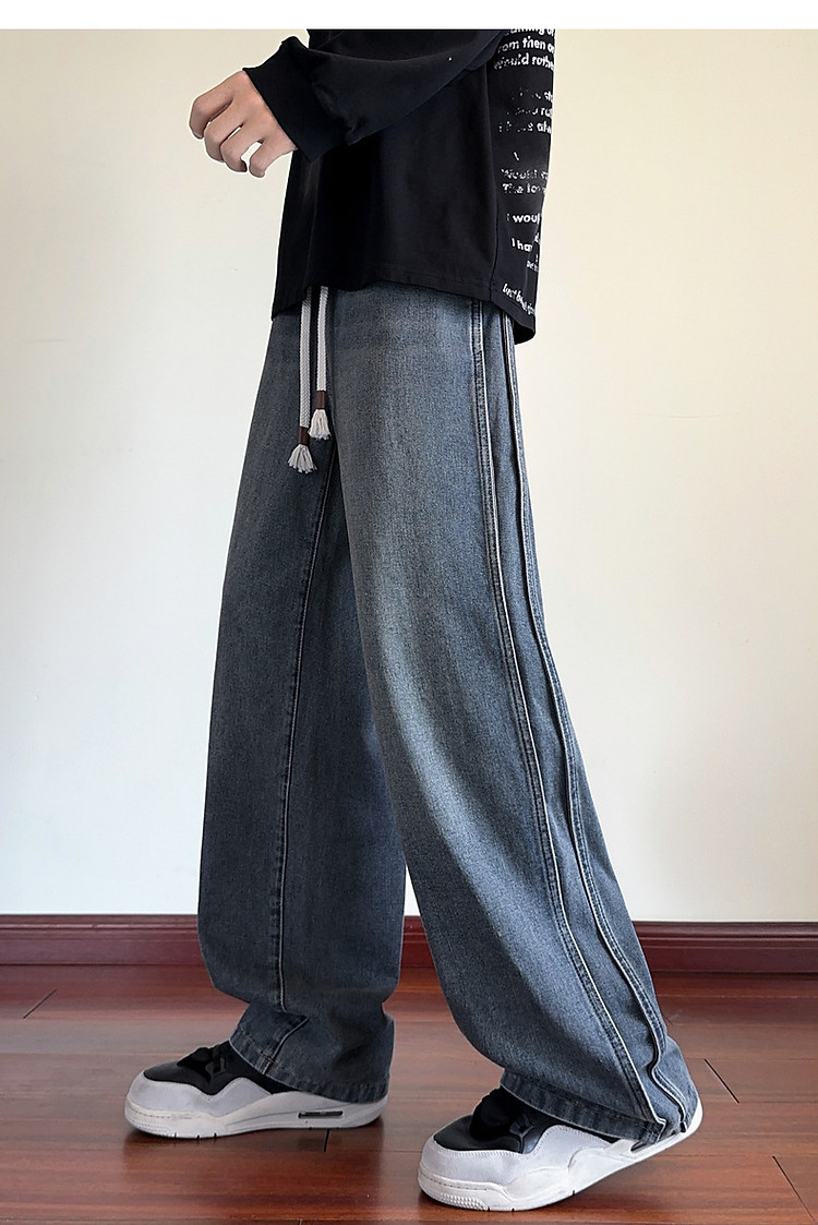 唐狮2026秋冬新款男牛仔长裤宽松侧边直筒裤美式复古潮流牛仔