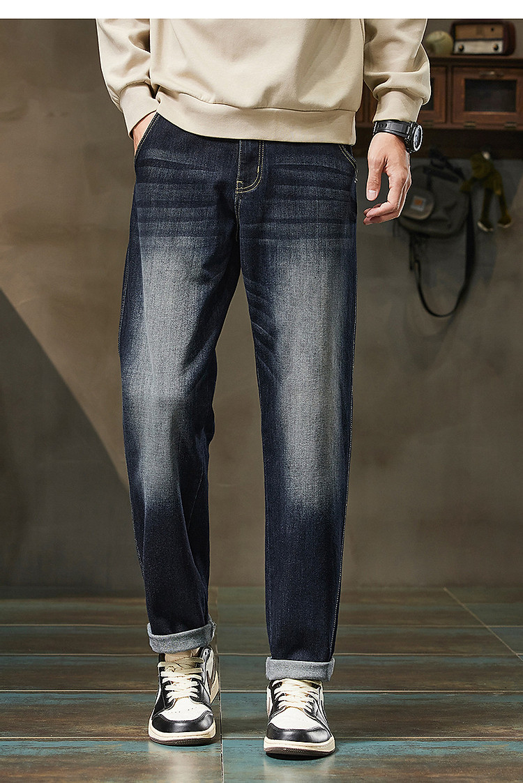 唐狮2026秋季美式复古高街牛仔长裤男款休闲百搭运动风宽松裤子