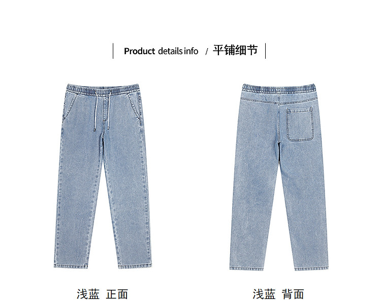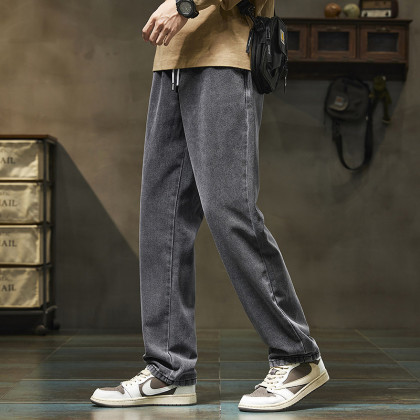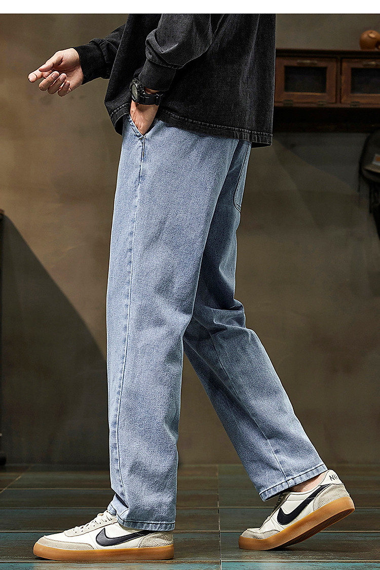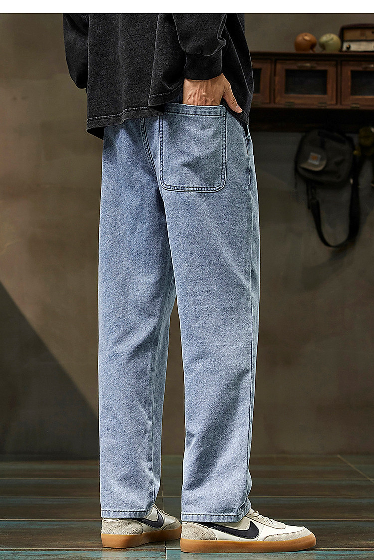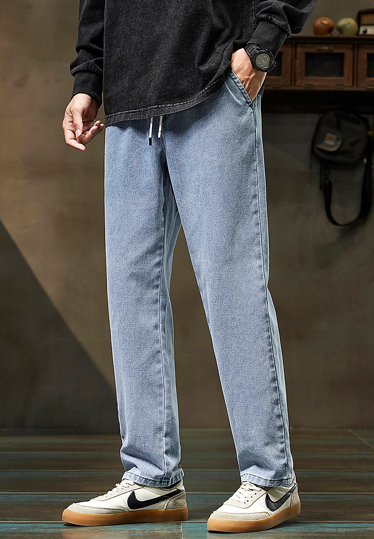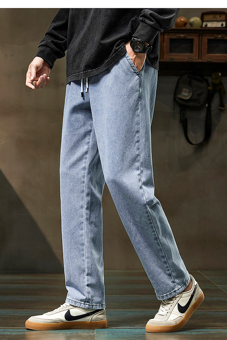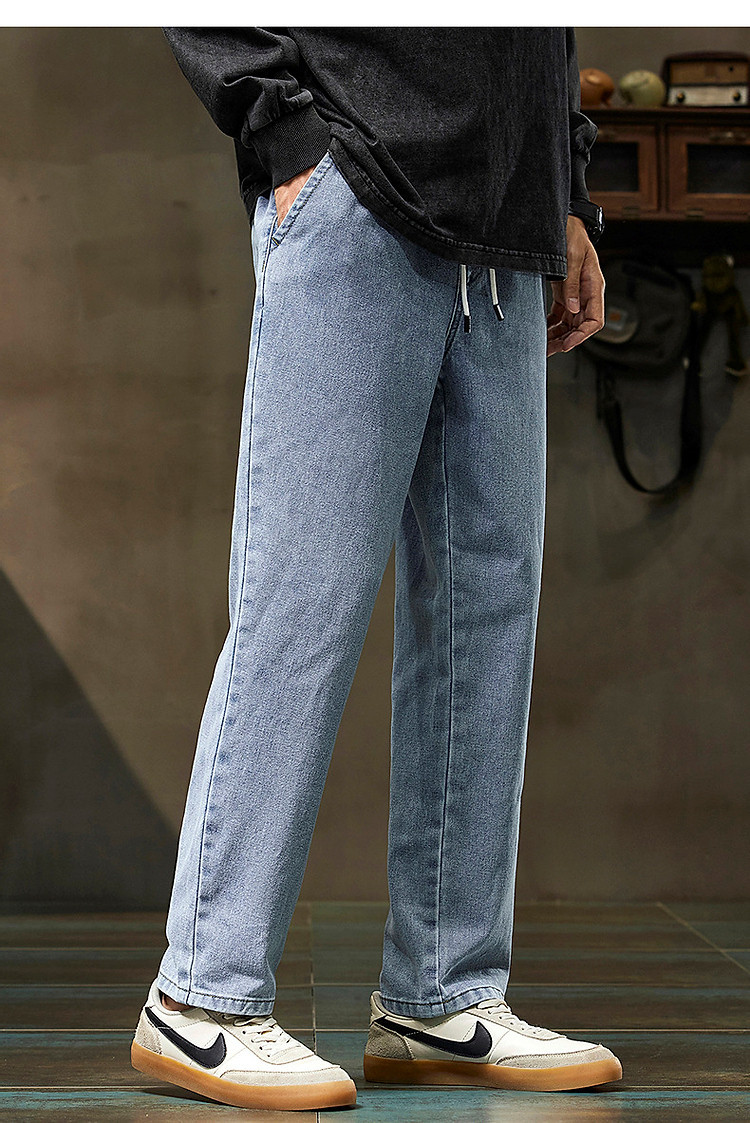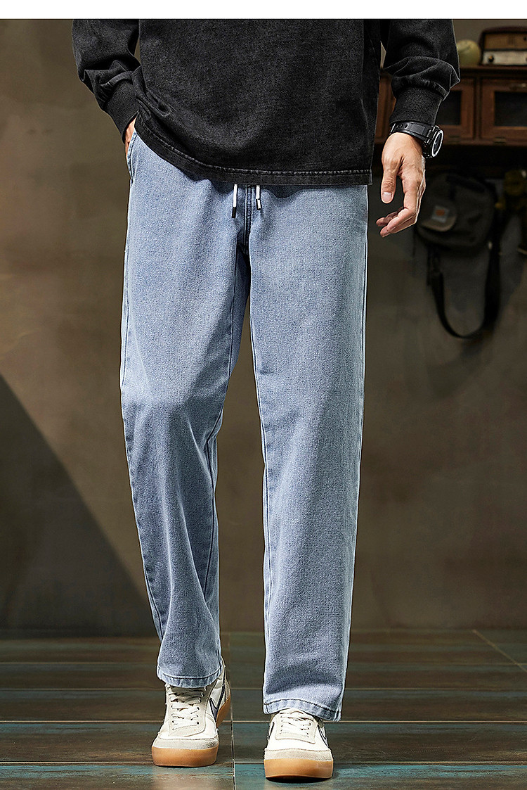 唐狮2026新款秋季浅色牛仔裤男款宽松直筒抽绳复古潮牌痞帅男生