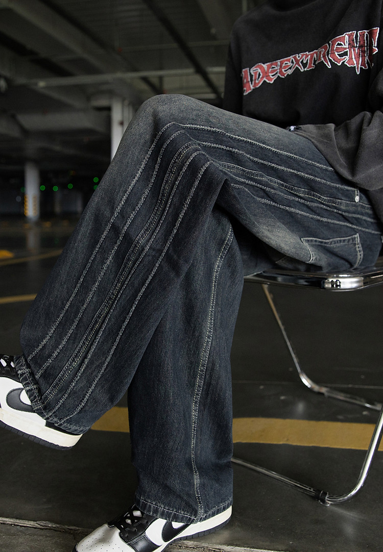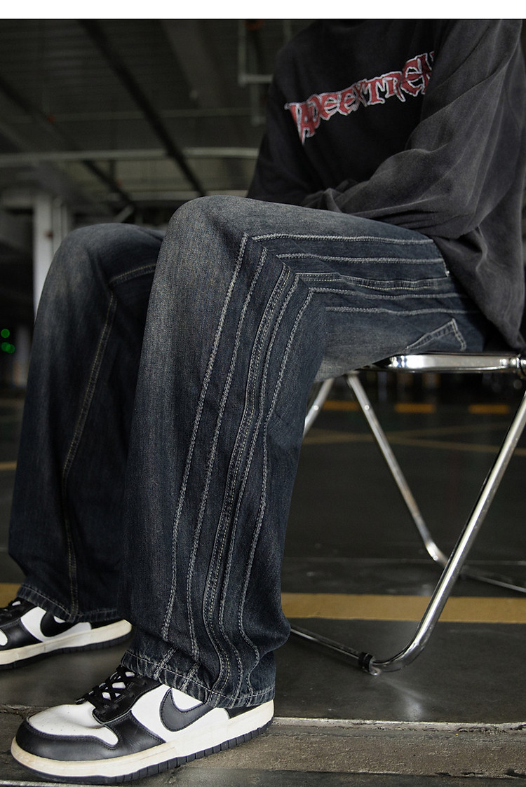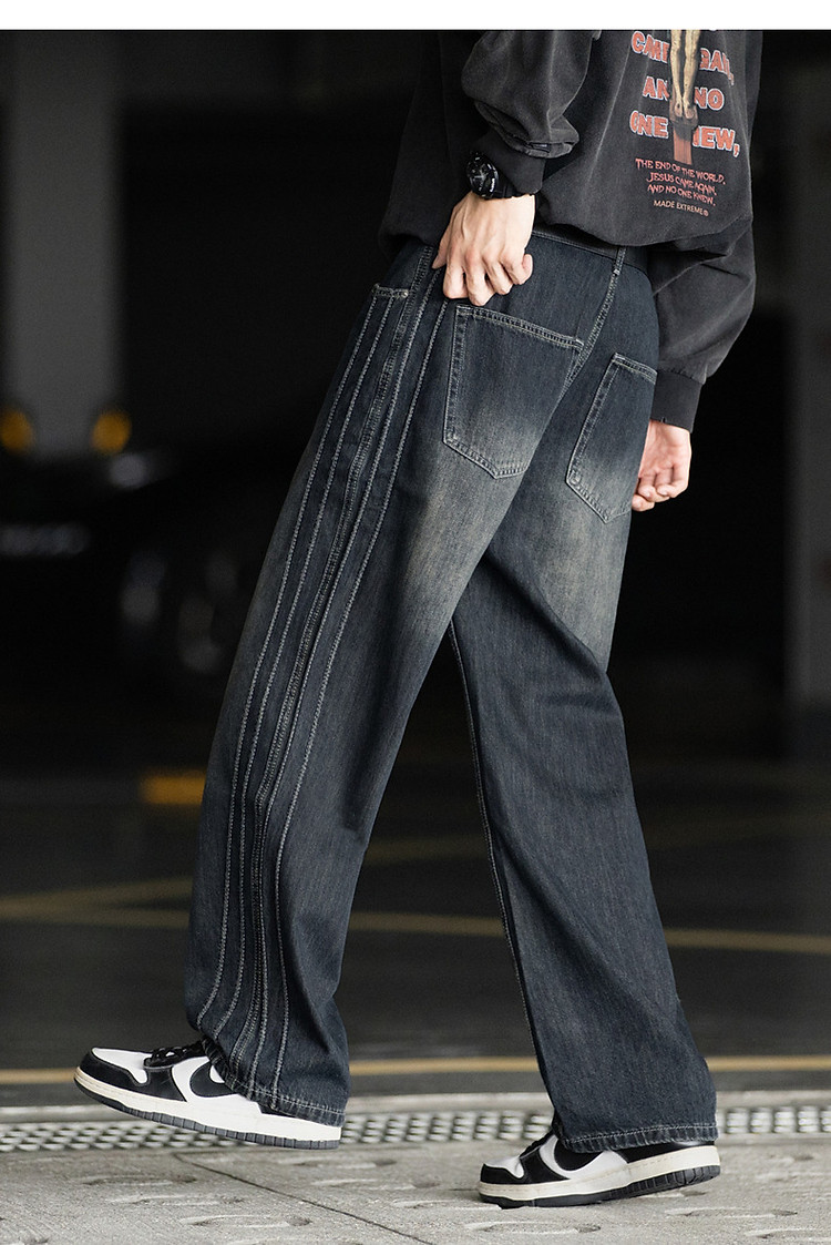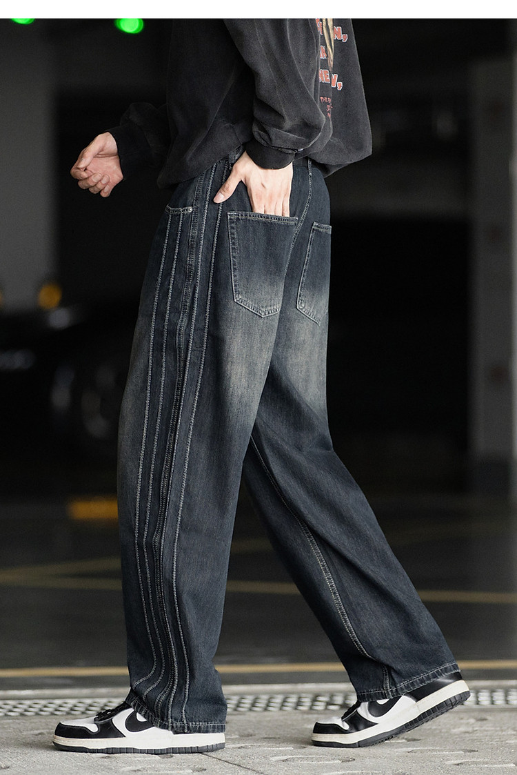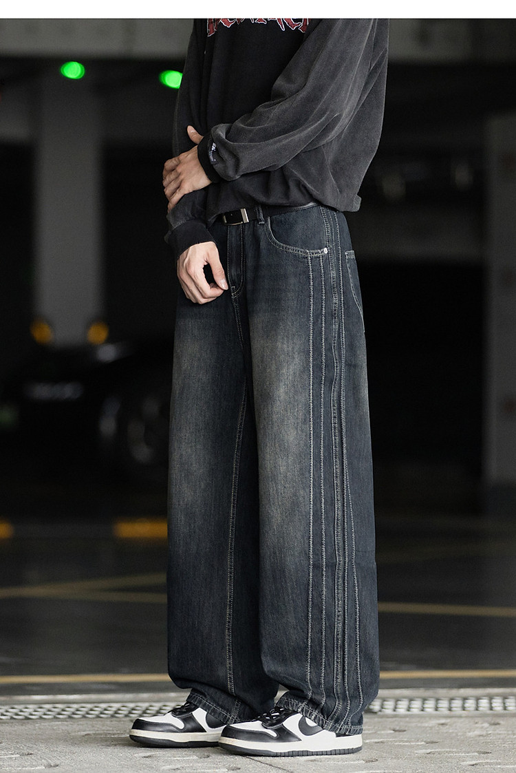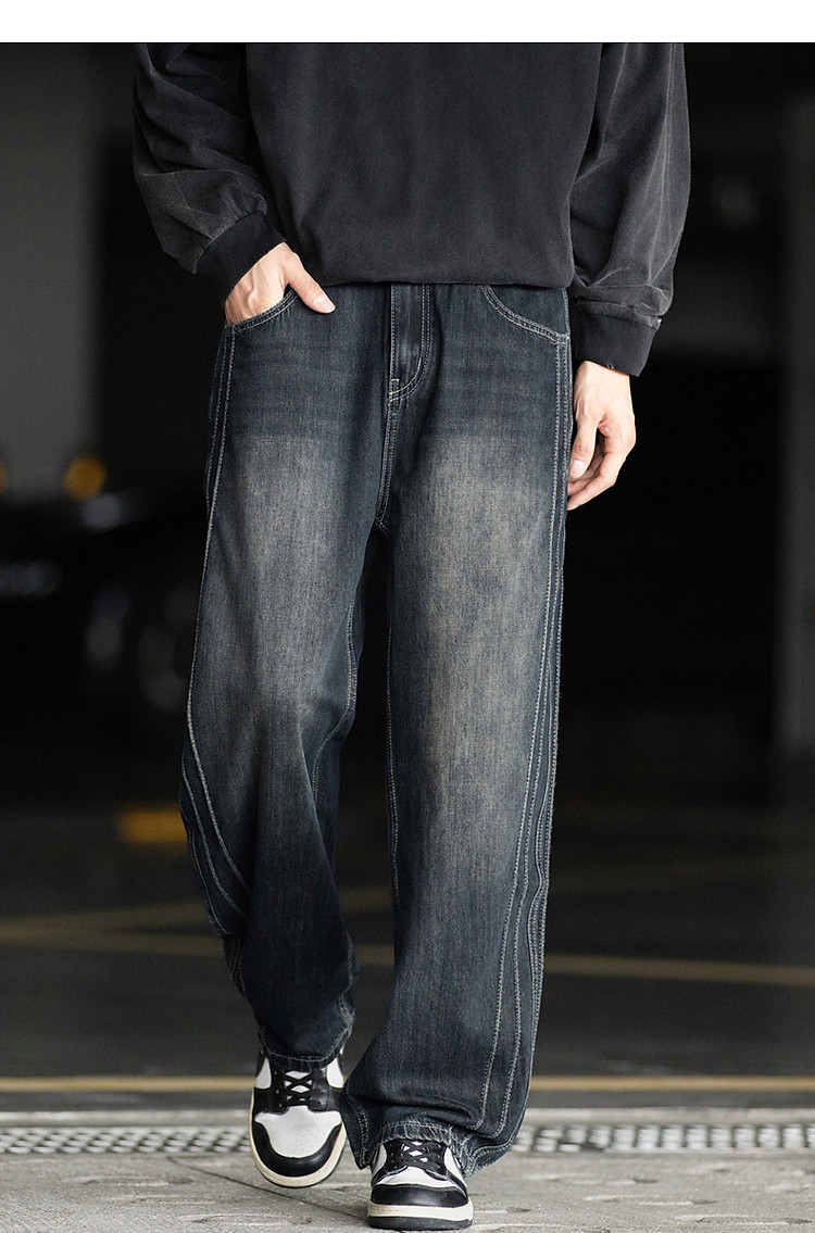 唐狮2026秋季男士牛仔裤宽松直筒阔腿裤小众设计感美式高街长裤W