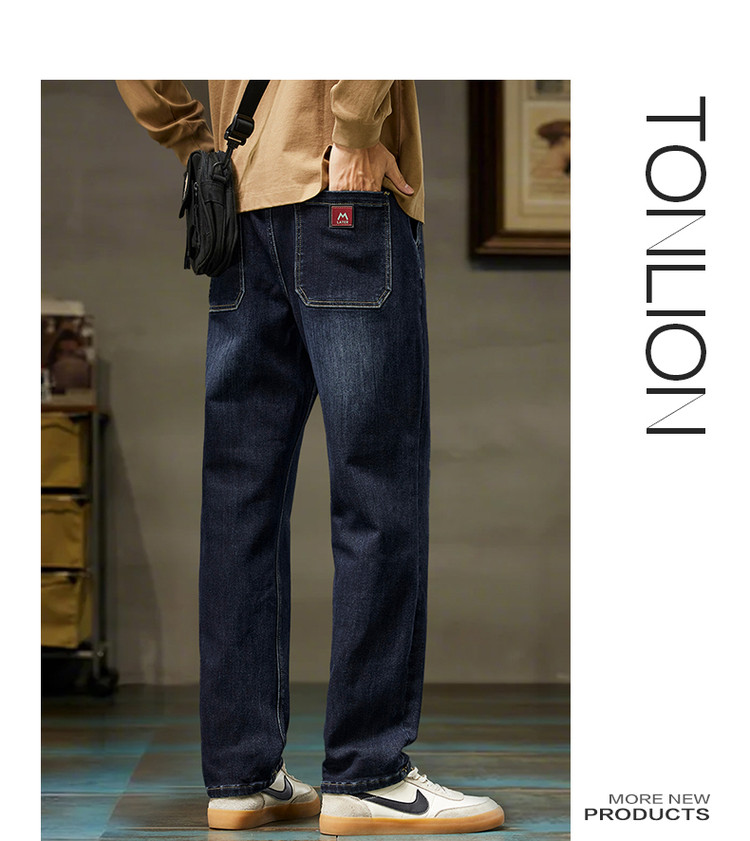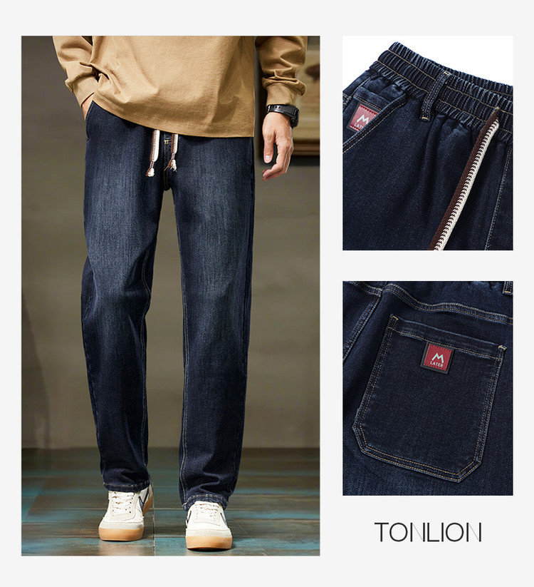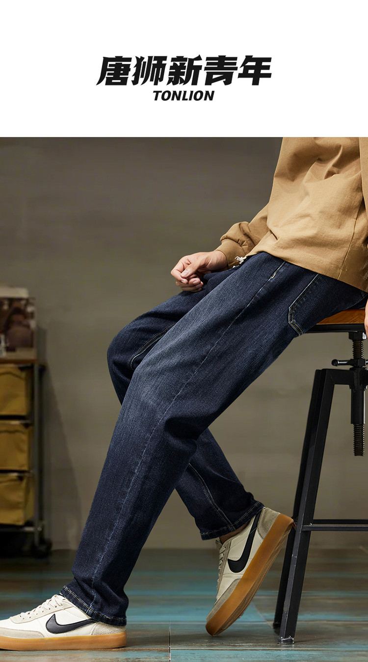 唐狮2026秋季男士牛仔长裤原色抽绳直筒阔腿裤帅气宽松潮牌美式