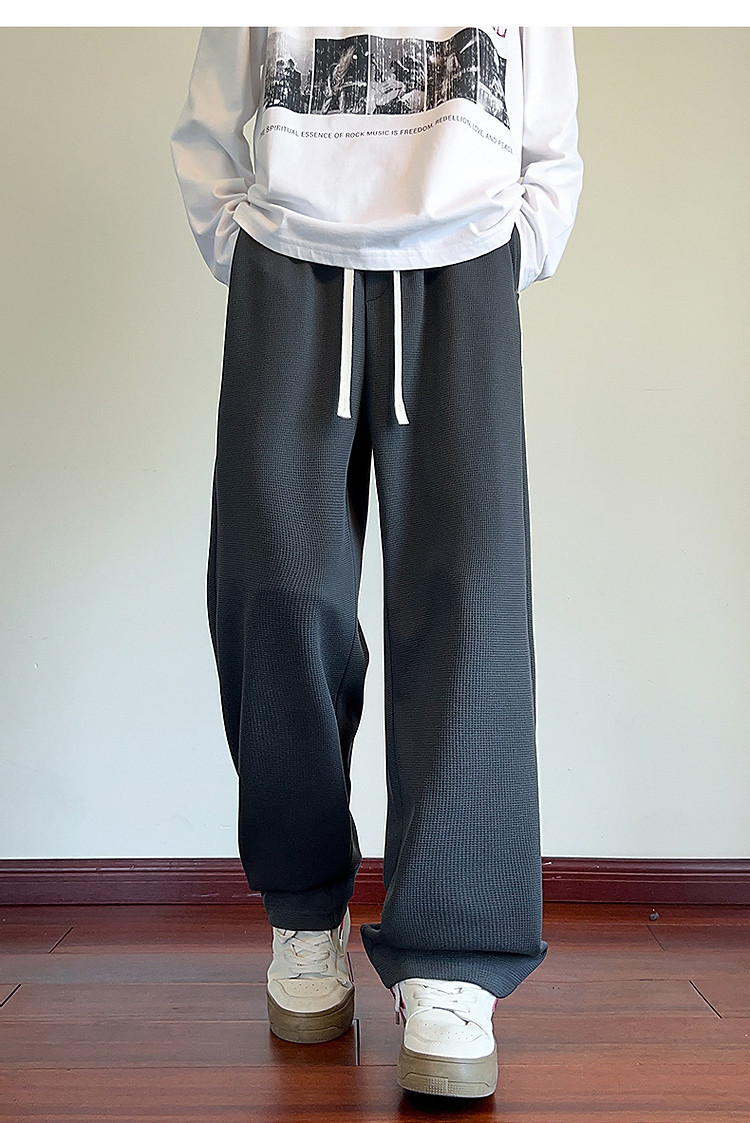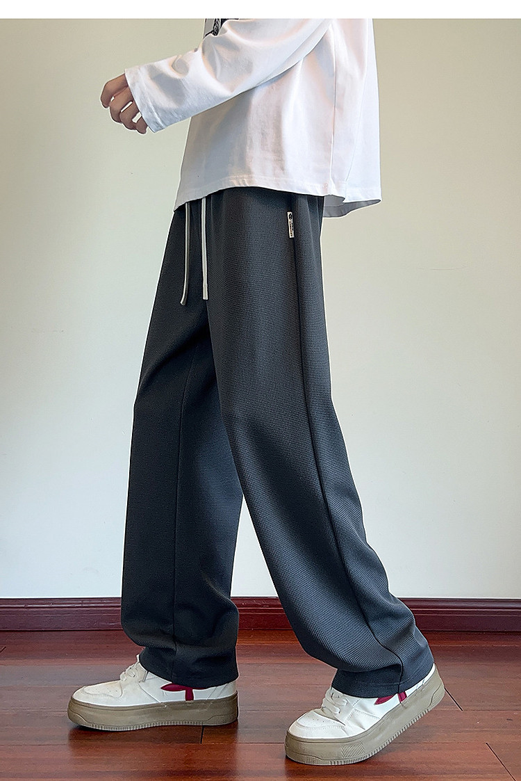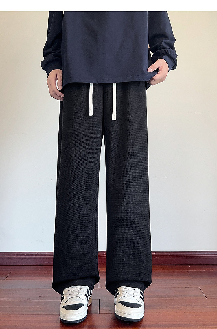 唐狮2026秋冬季直筒休闲长裤男针织拼接设计感宽松简约时尚潮