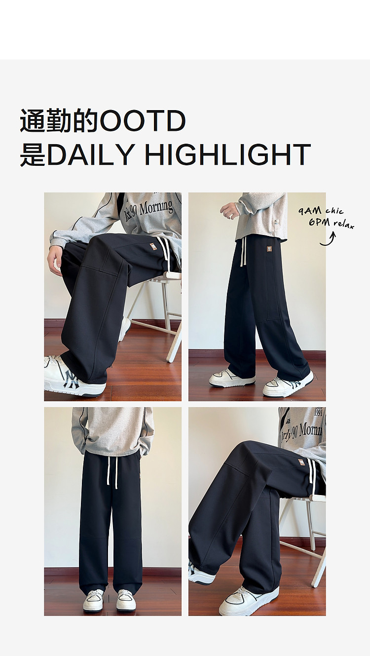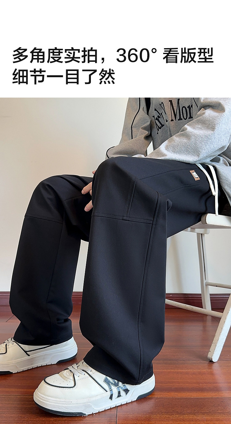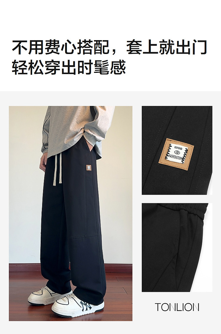 唐狮2026春秋季男士休闲长裤宽松阔腿黑色裤子百搭休闲直筒裤潮流