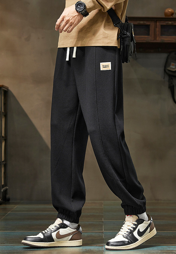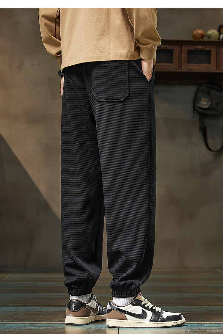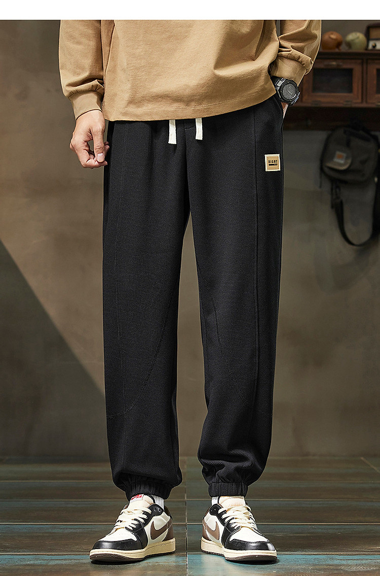 唐狮25秋季新款男休闲裤抽绳针织束腿潮流时尚设计黑色运动长裤