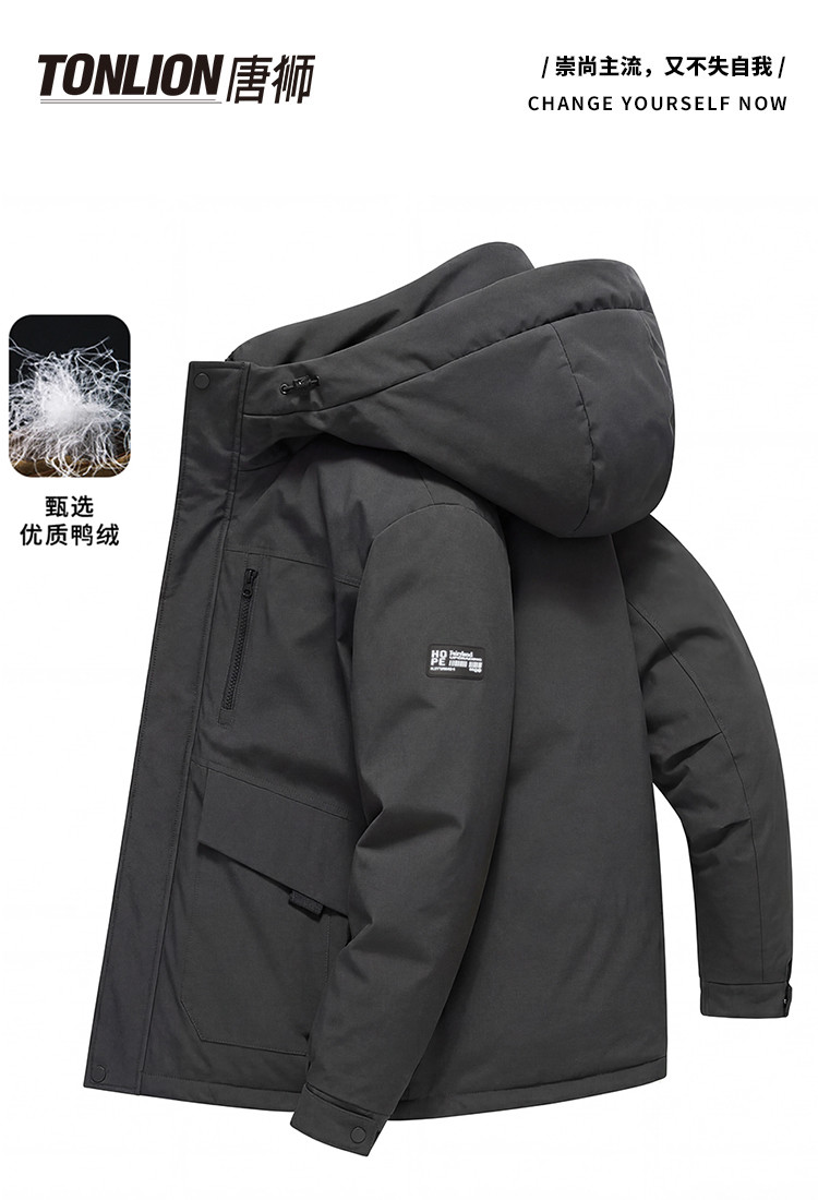唐狮2026冬季短款工装羽绒服男小众设计感时尚灰色简约风羽绒外套
