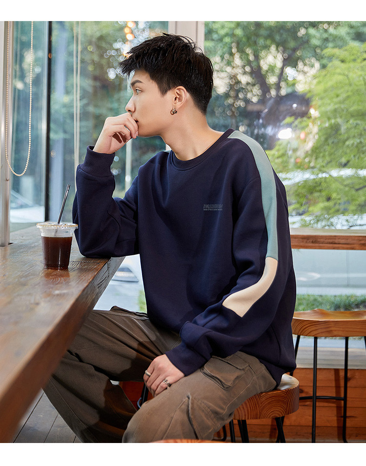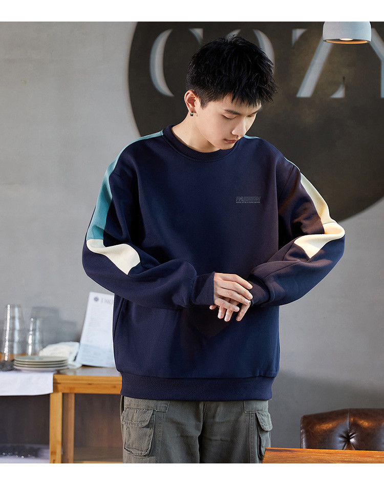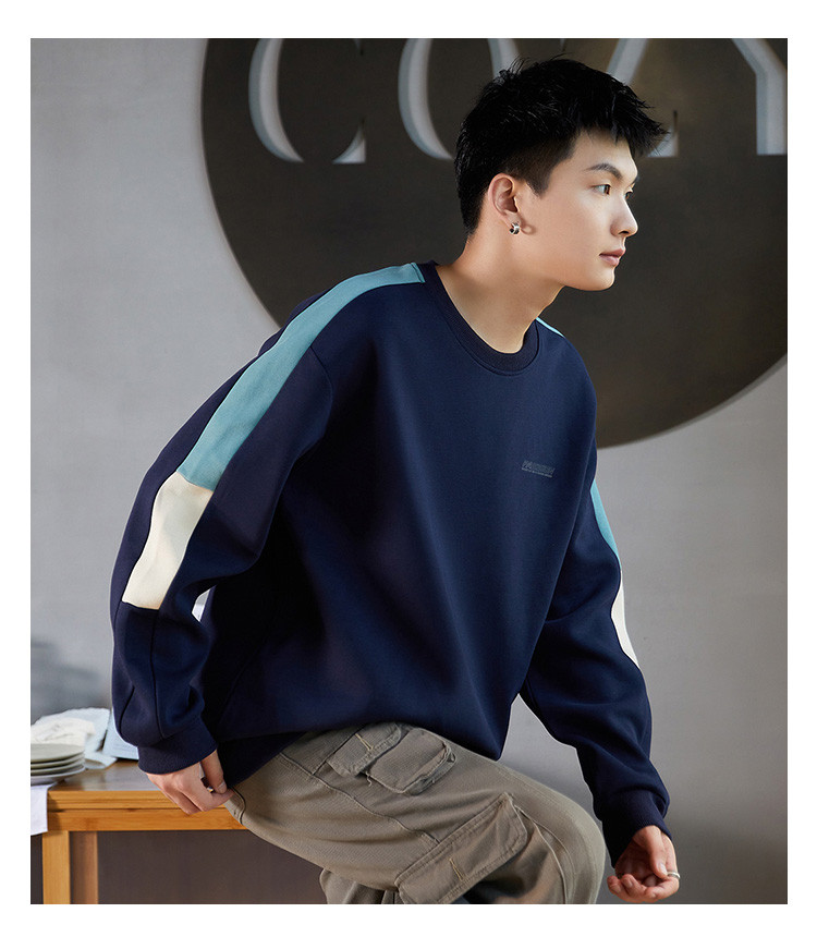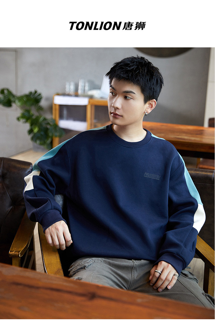 唐狮2026春秋季圆领卫衣男款运动分青少年设计感拼接小众撞色美式