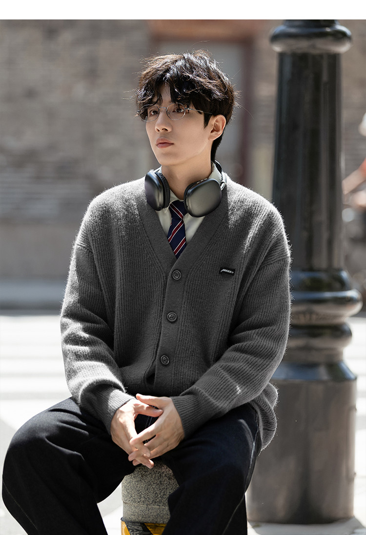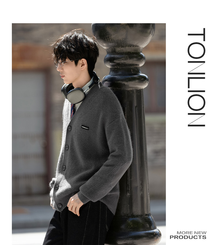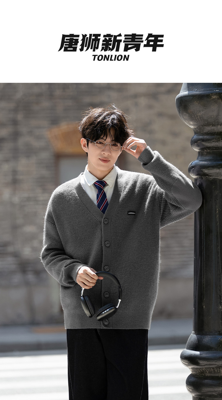 唐狮2026秋冬季毛衣外套男款V领开衫毛线衫百搭简约风潮流时尚