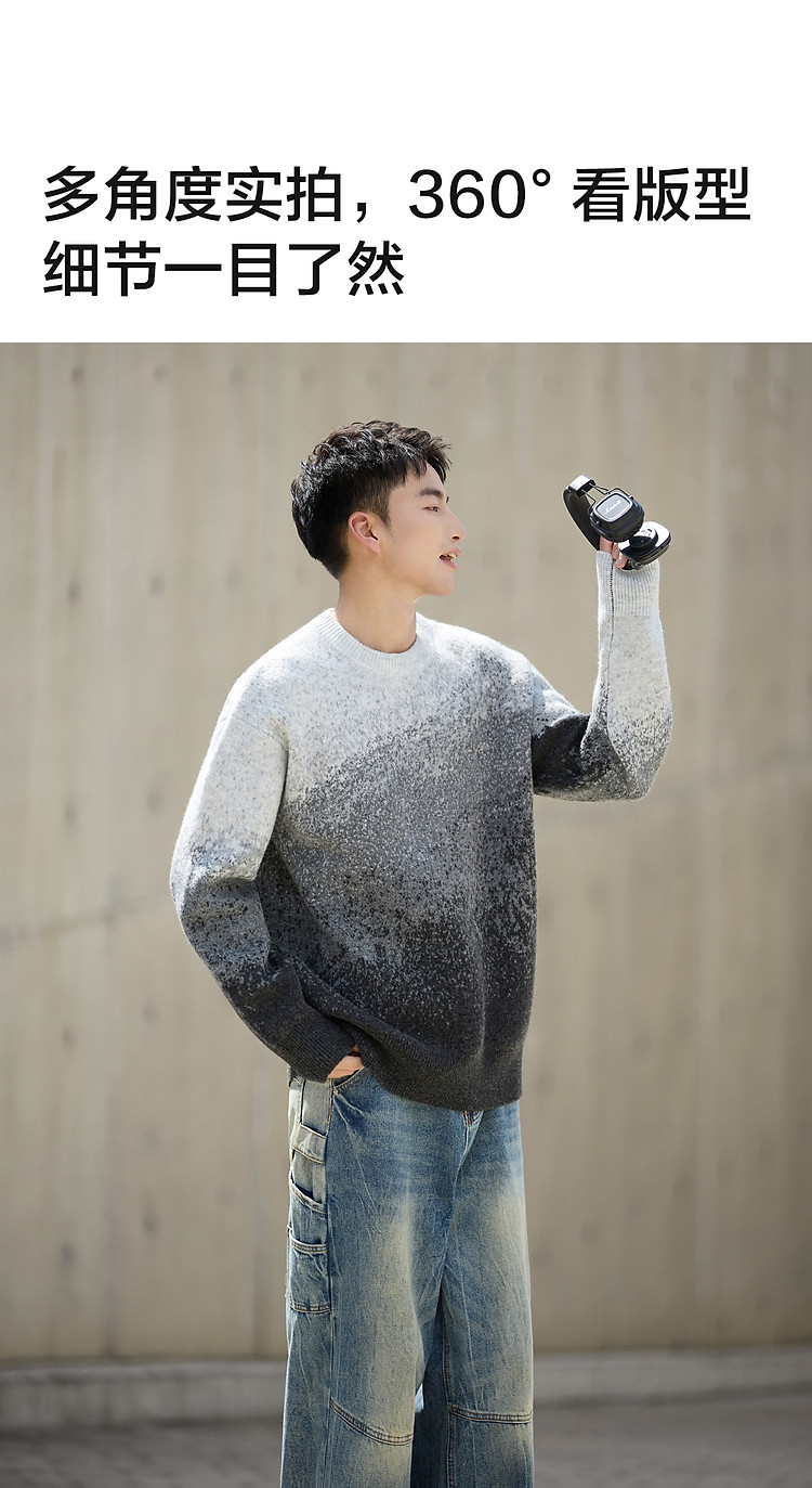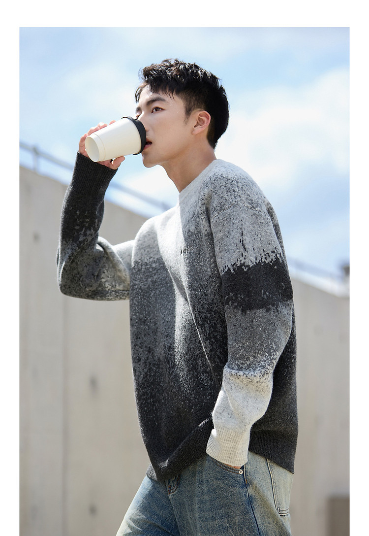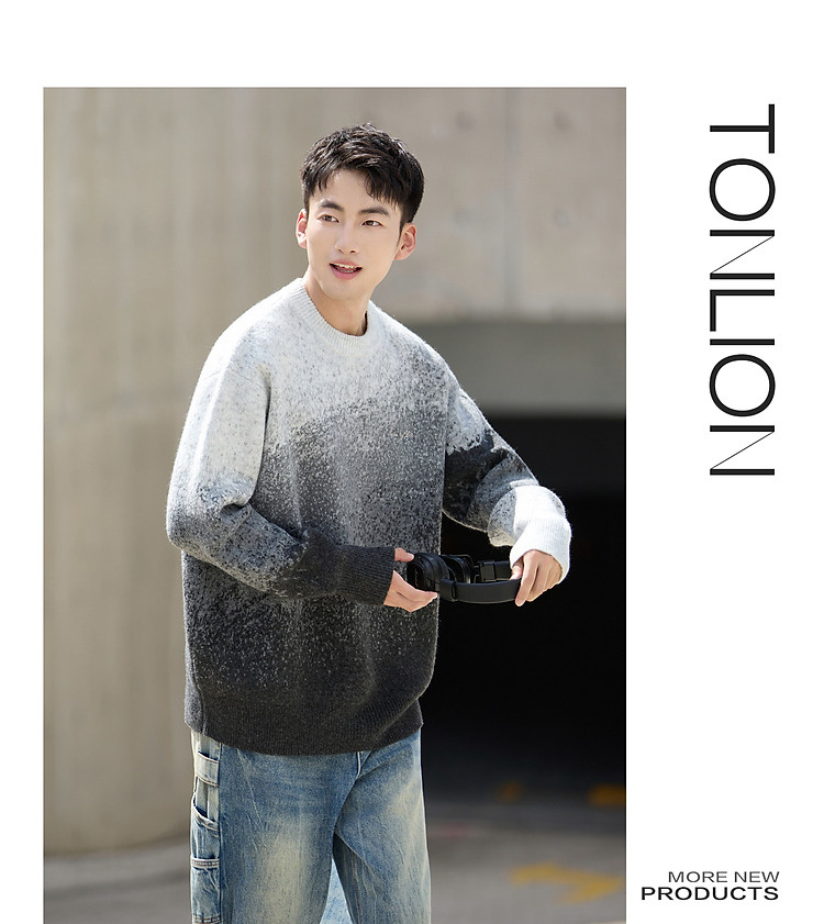 唐狮2026新款秋冬季毛衣男圆领套头四色渐变独特设计感小众毛线衫