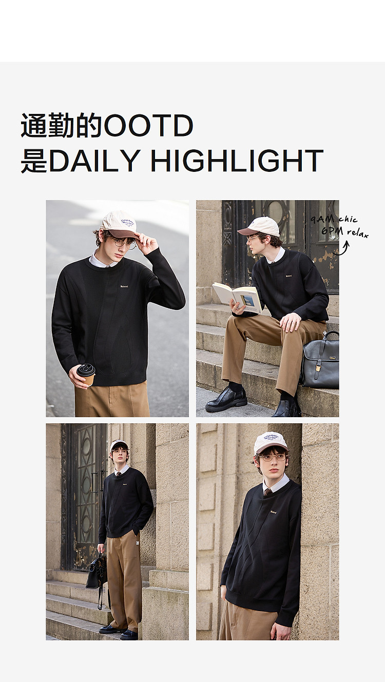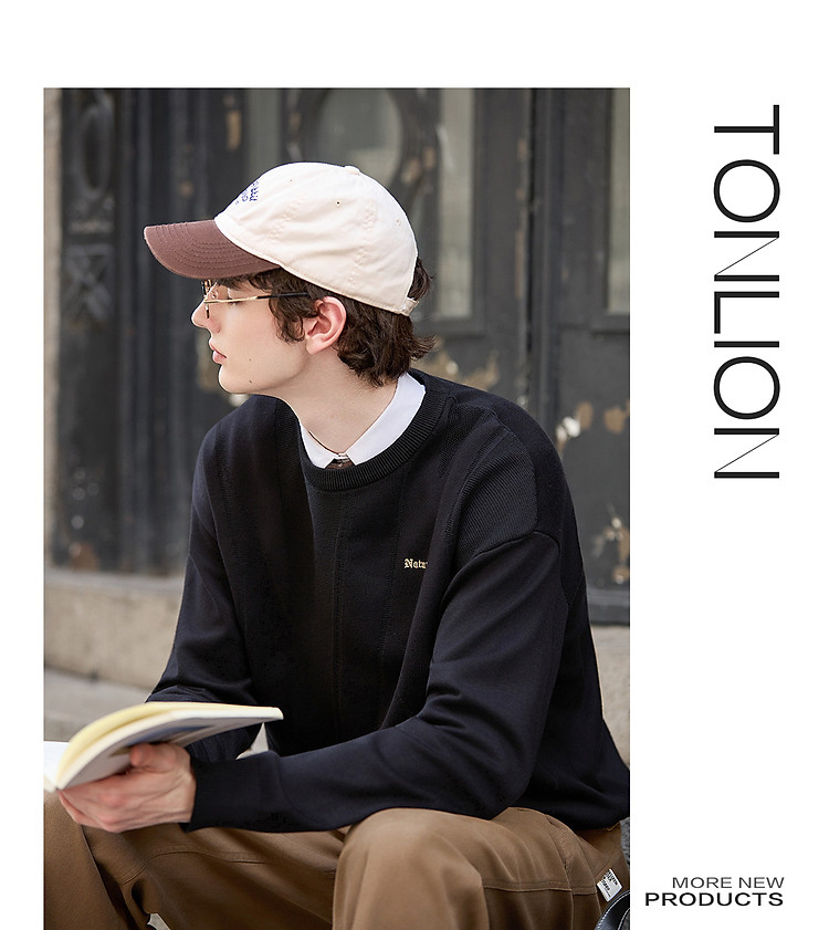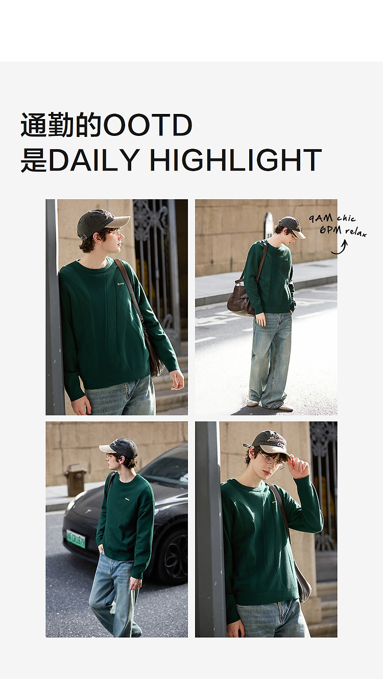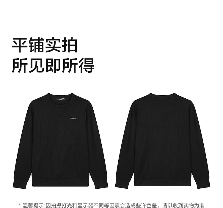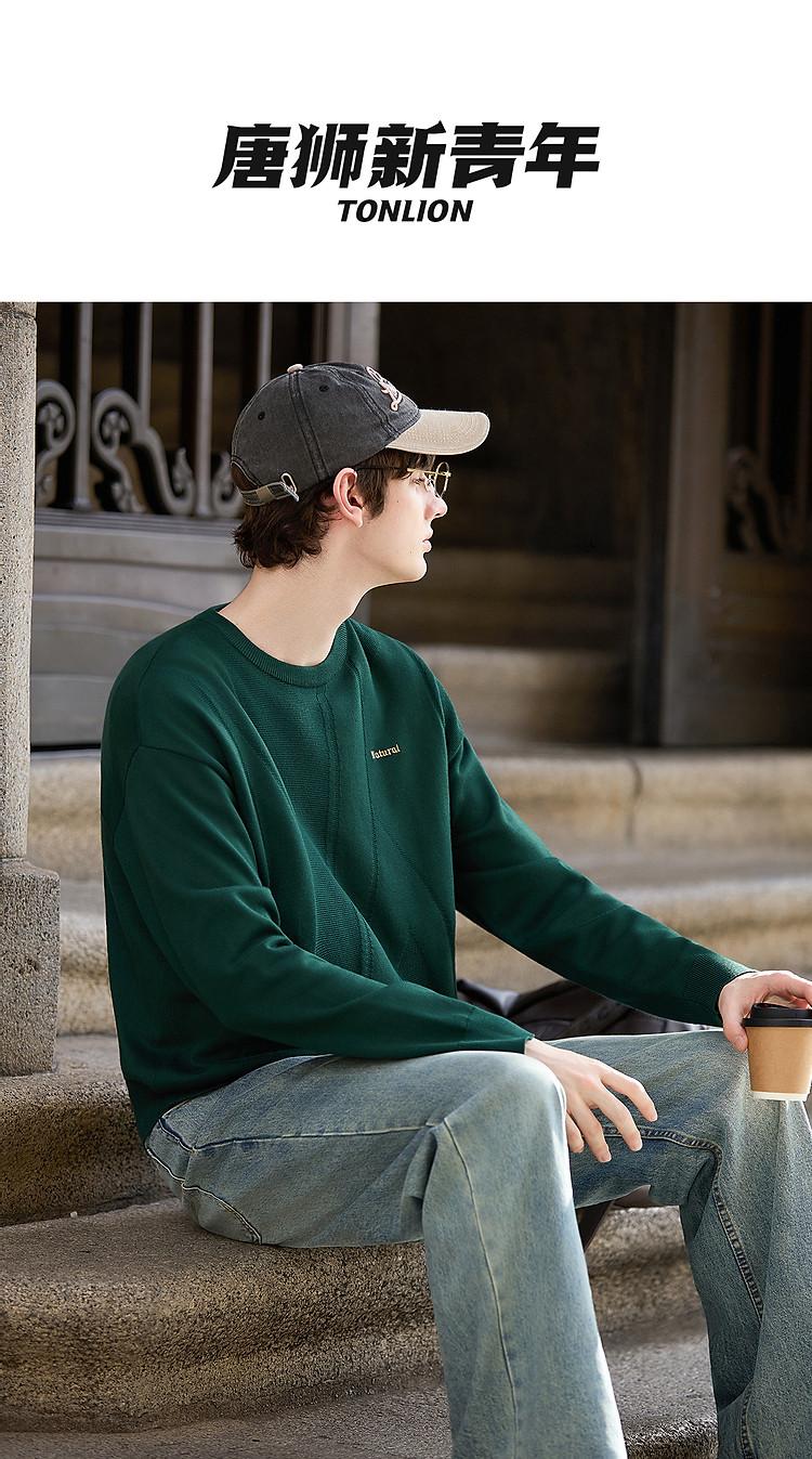 唐狮2026秋冬季新款毛衣男圆领套头字母刺绣肌理毛线衫黑色百搭