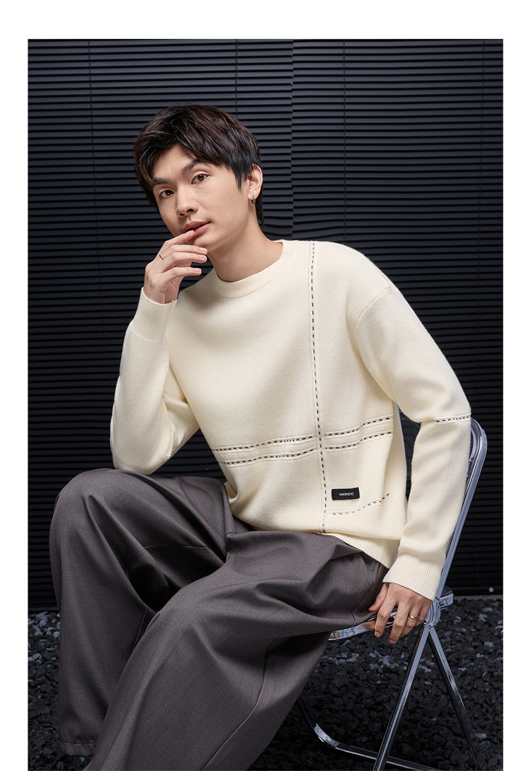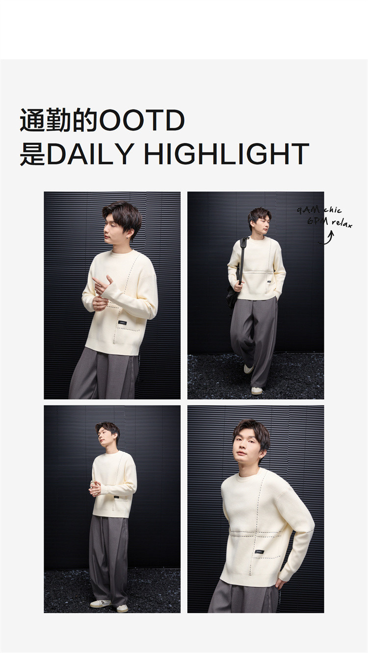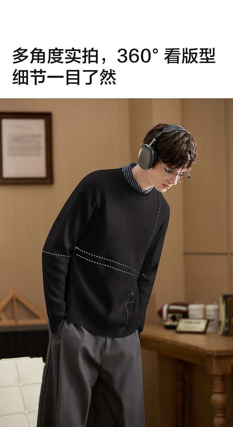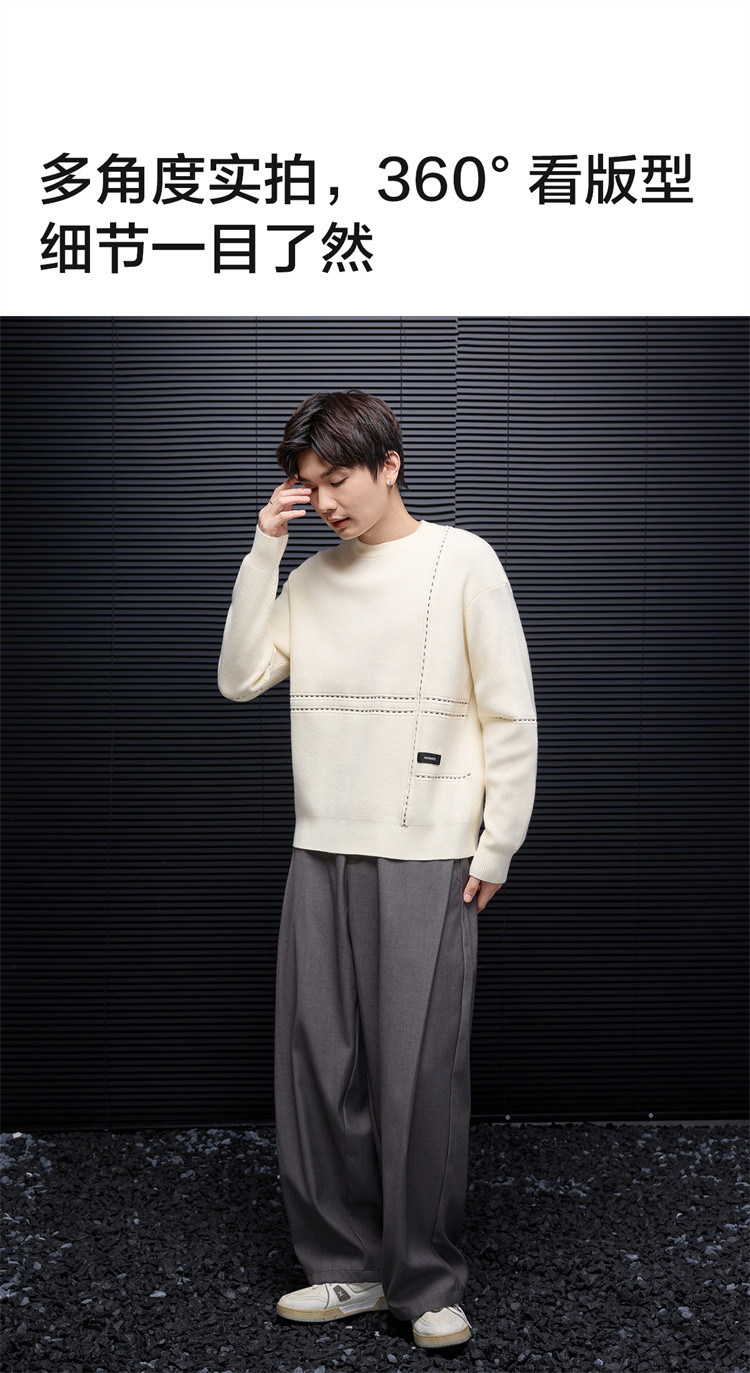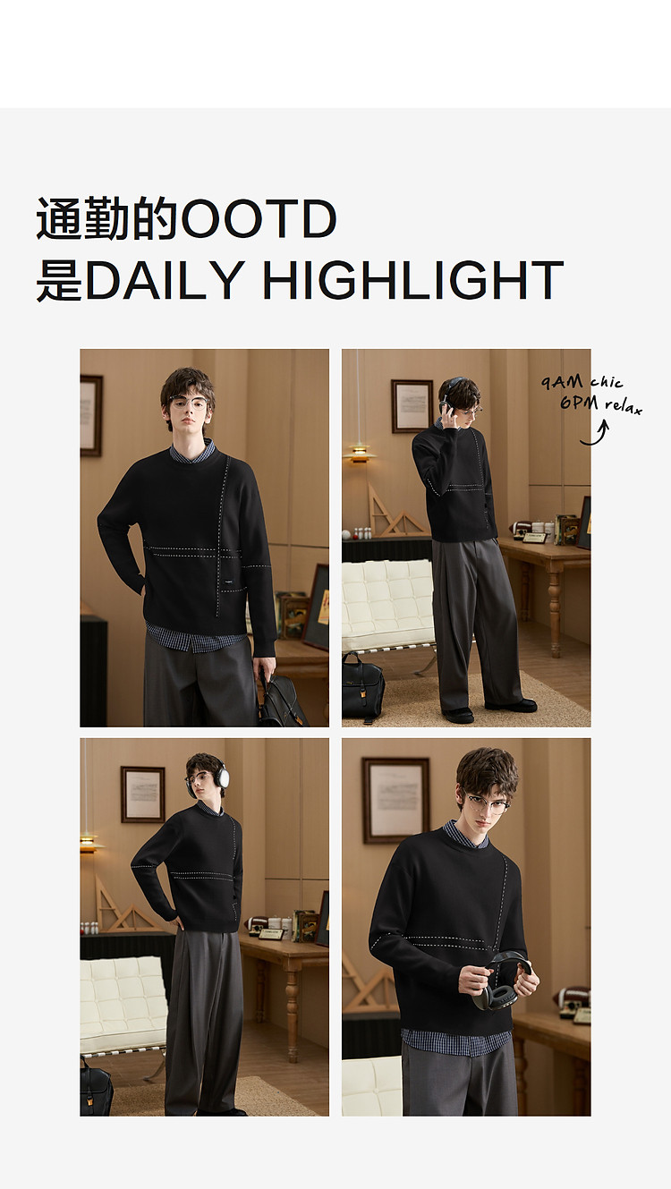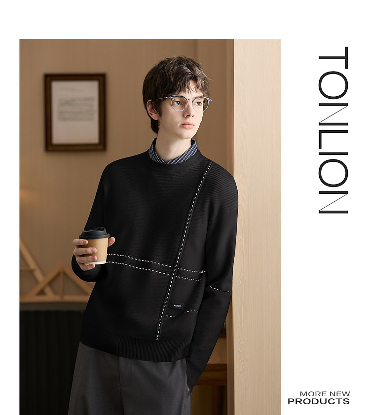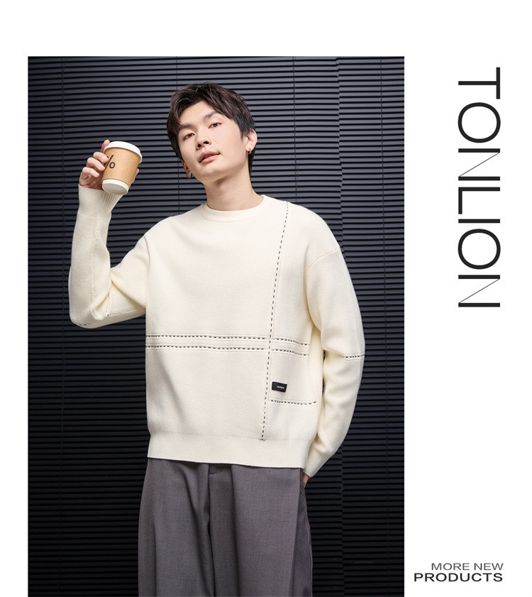 唐狮2026新款秋冬季毛衣男套头圆领明线设计慵懒风高级感毛线衫