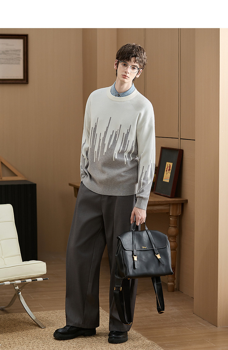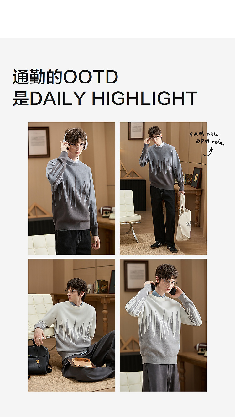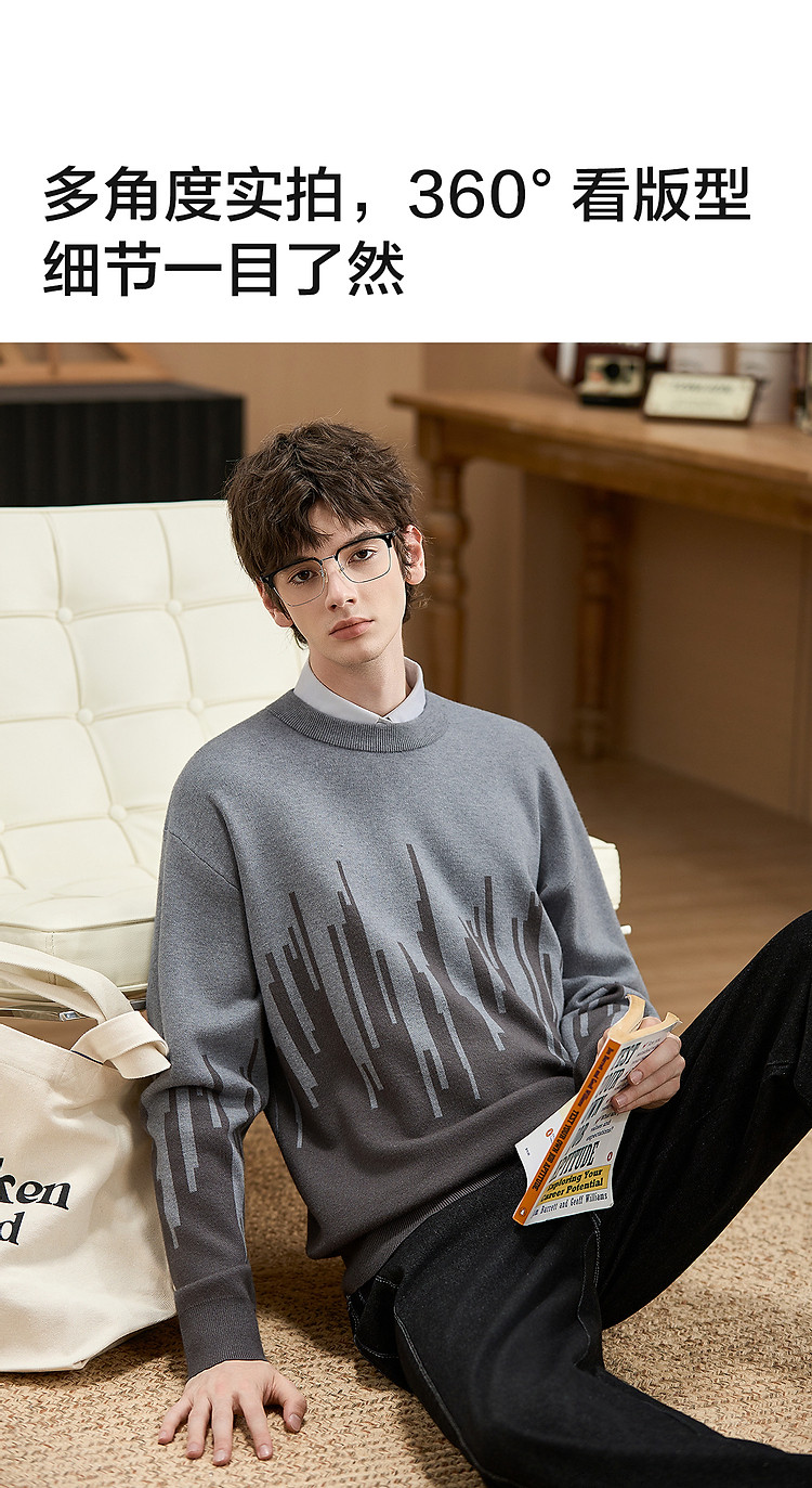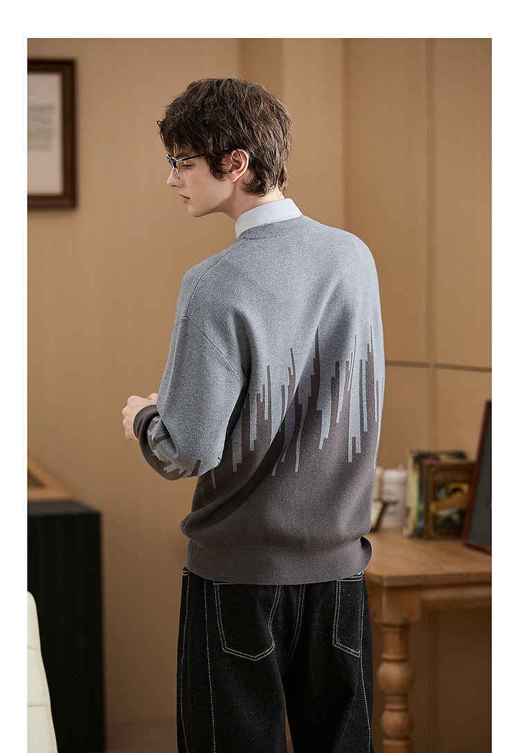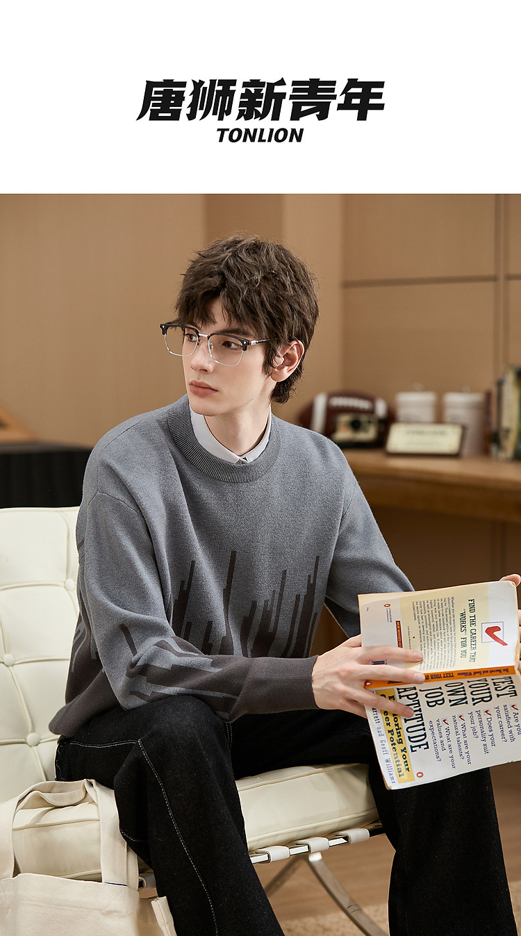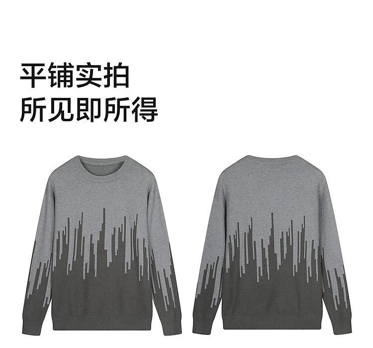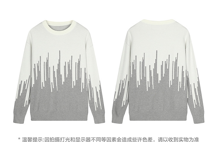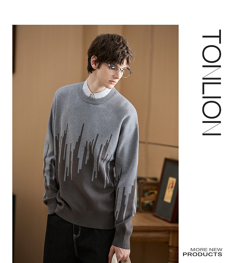 (小灯塔勿上)唐狮2025新款秋冬季毛衣男士圆领套头撞色拼接灰色