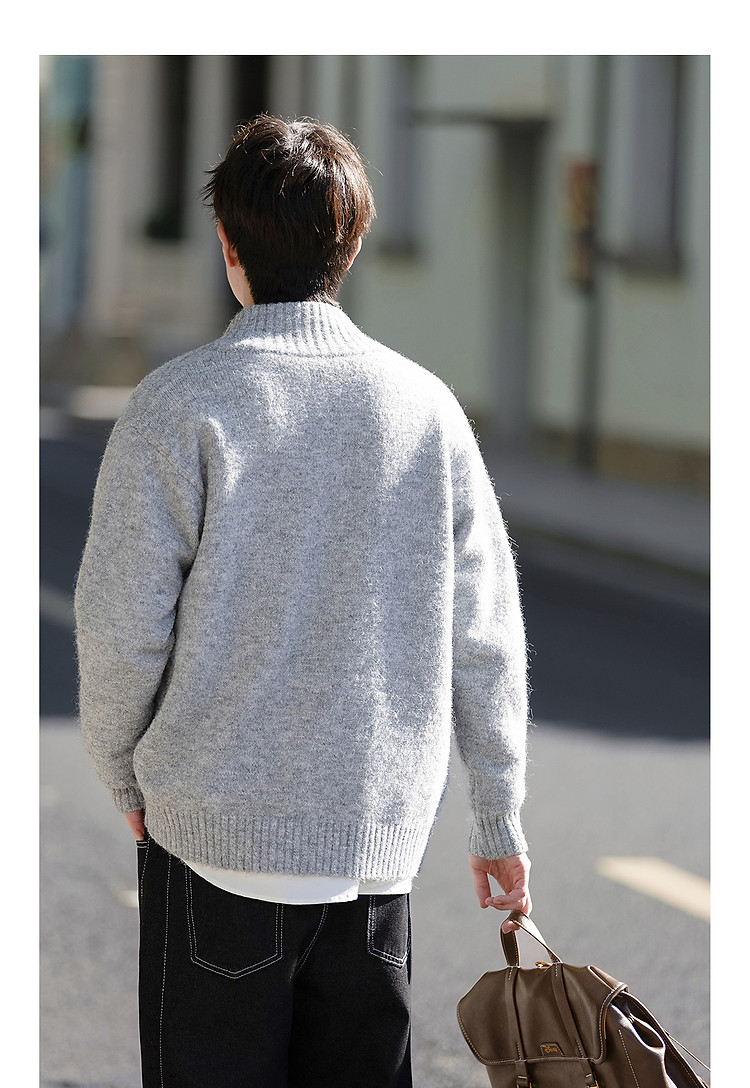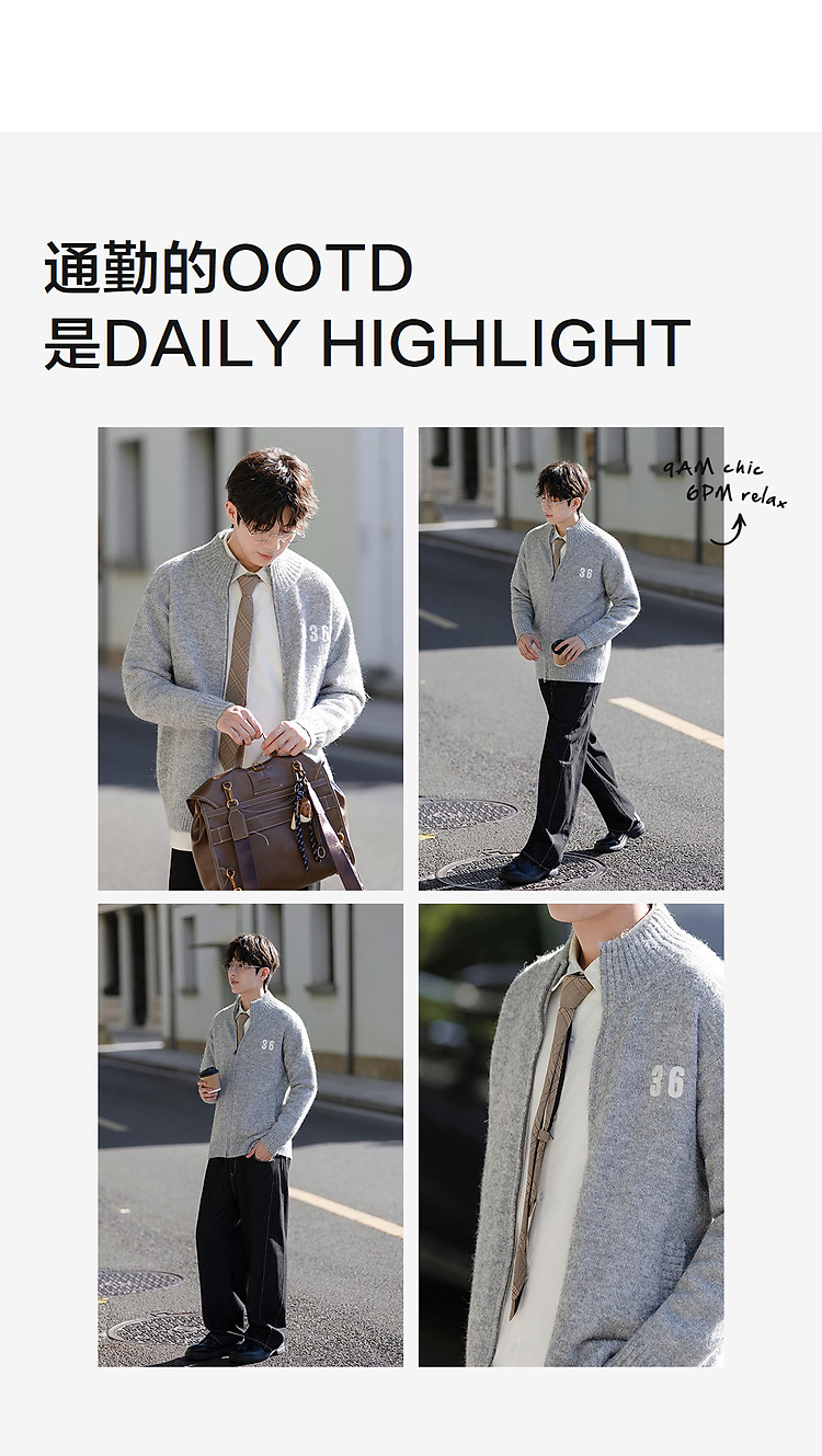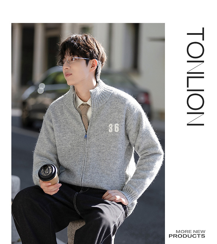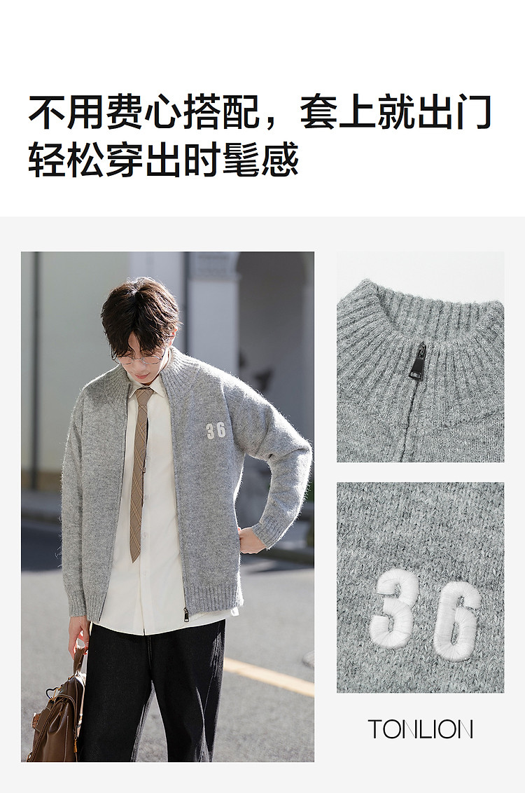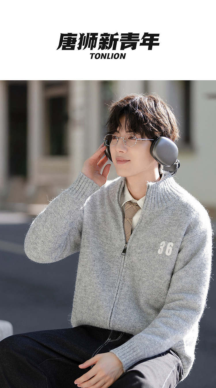 唐狮2026秋冬季男士毛衣外套立领绣花简约风开衫毛线衫潮流时尚