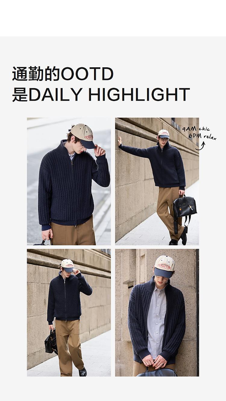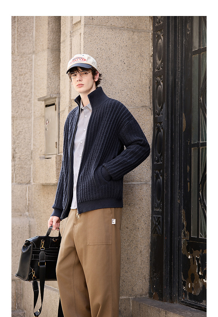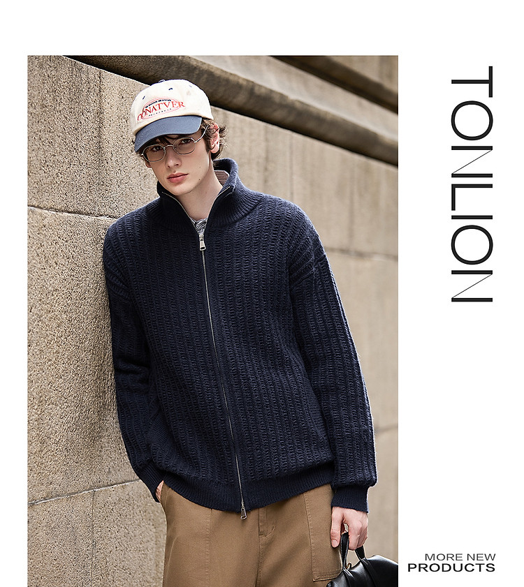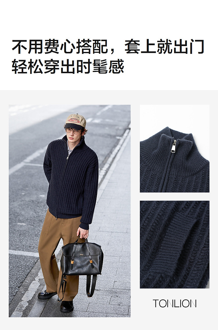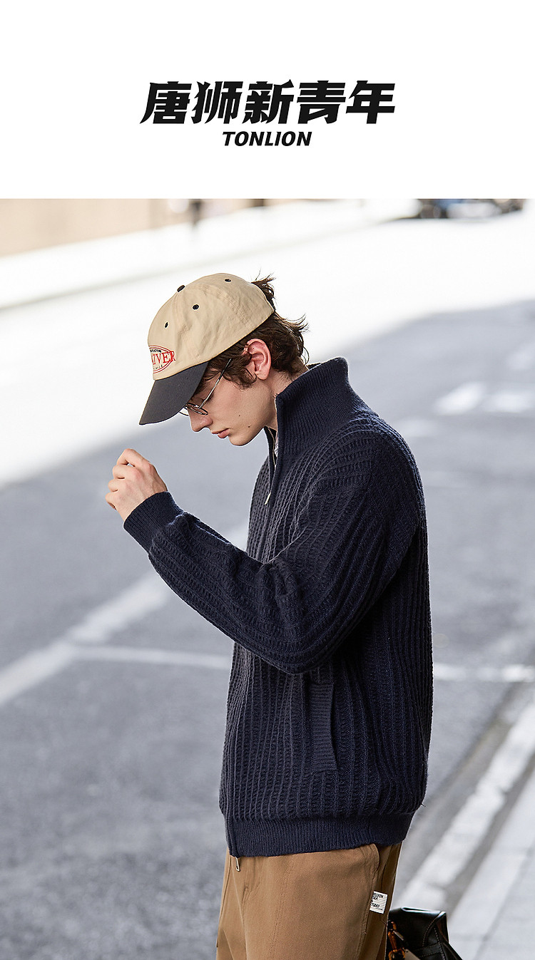 唐狮2026秋冬毛衣外套男绞花毛衣立领藏青色开衫毛线衫休闲慵懒风