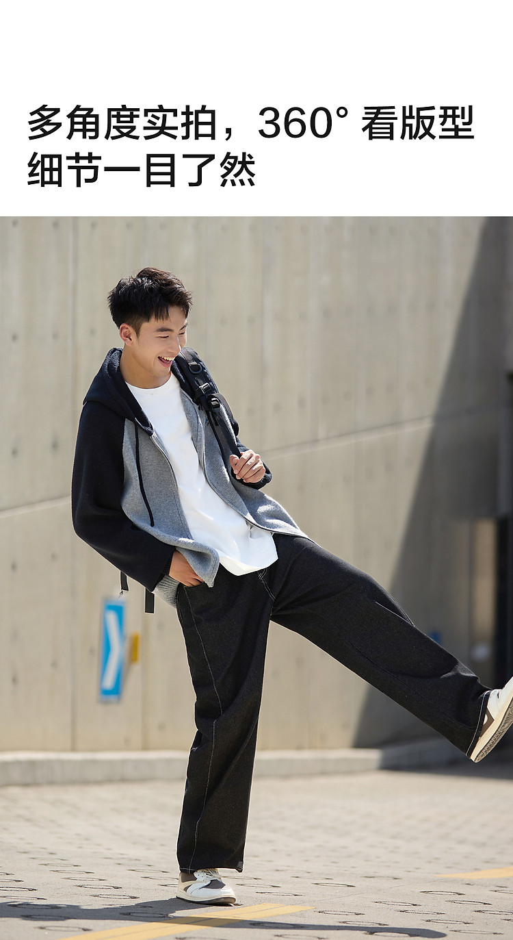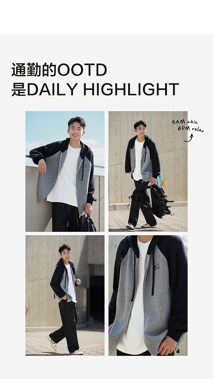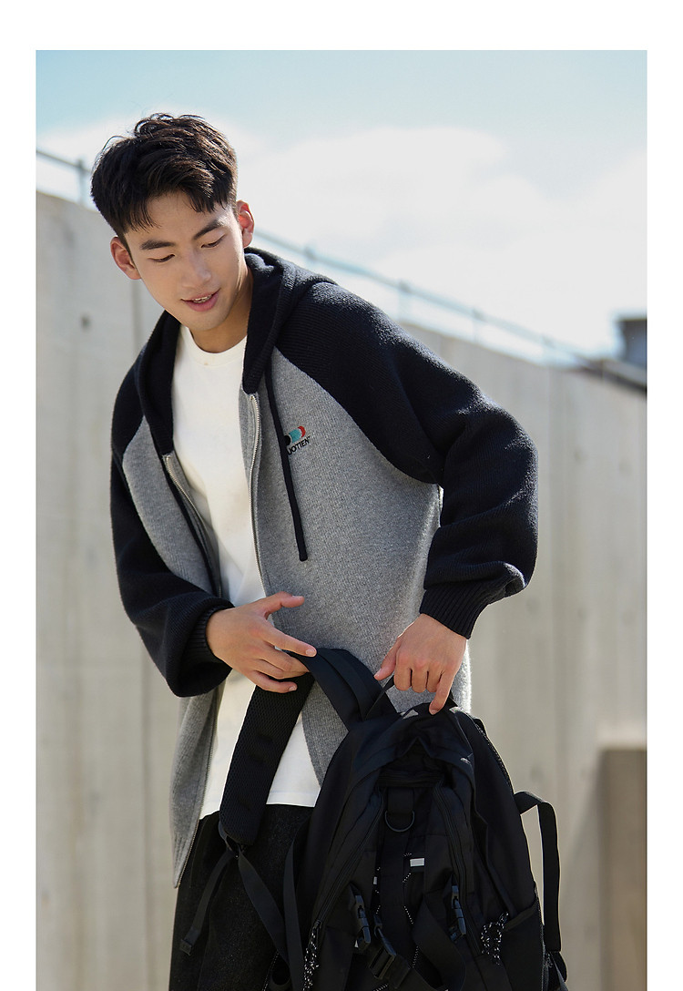 唐狮2026新款男连帽开衫毛衣插肩袖精致刺绣简约休闲风宽松毛线衫