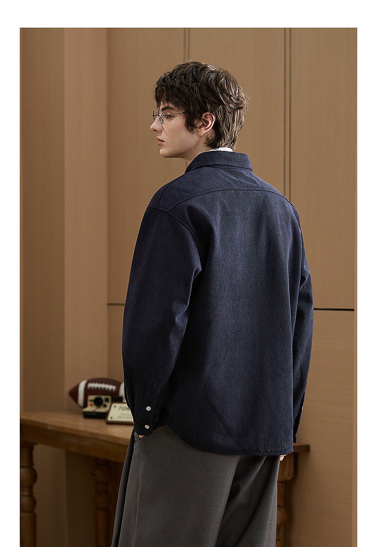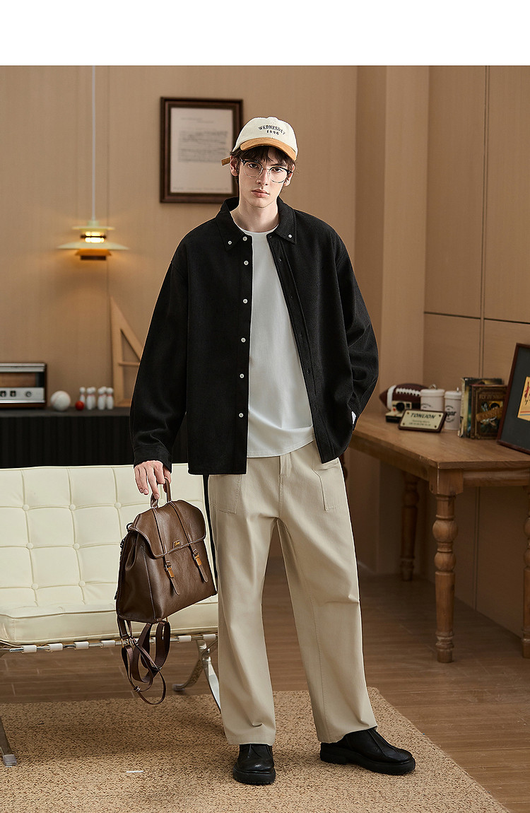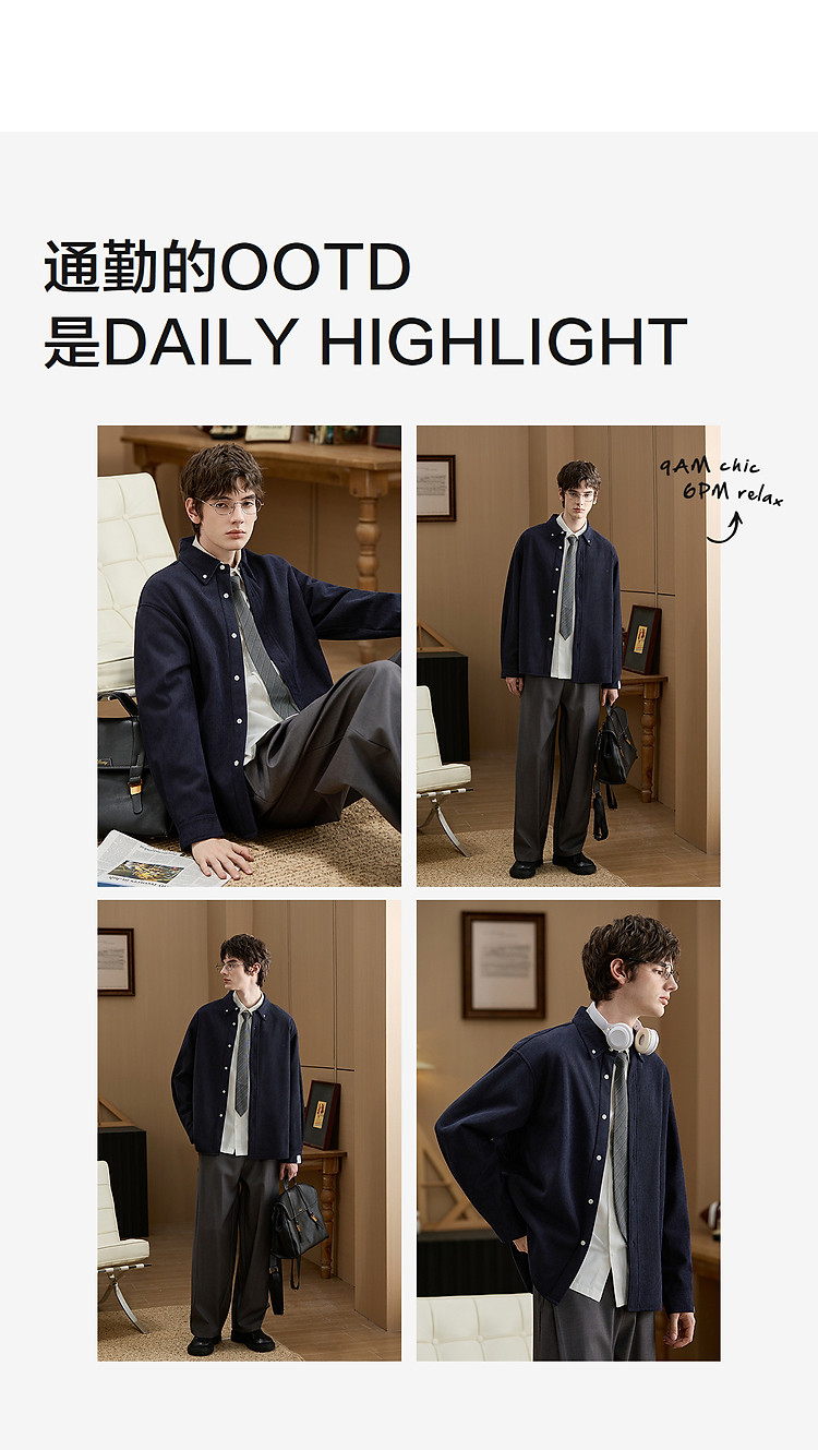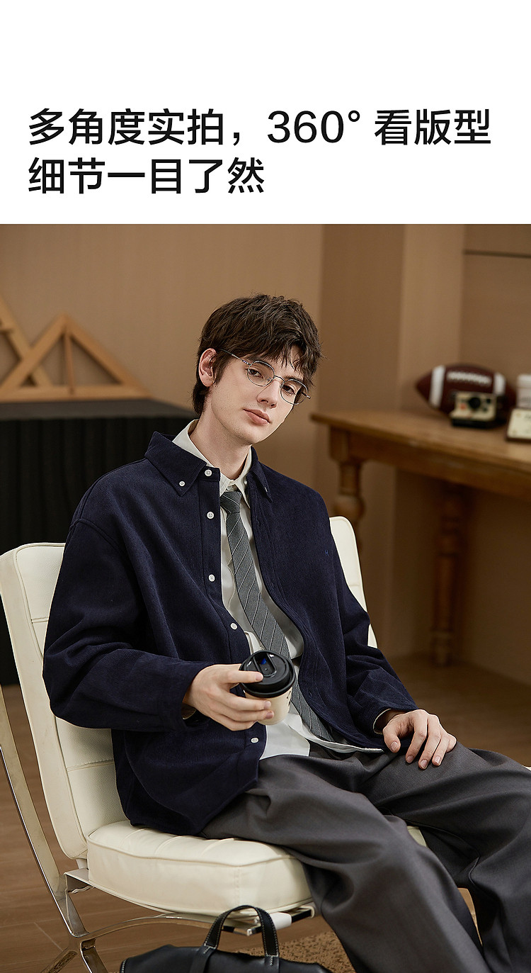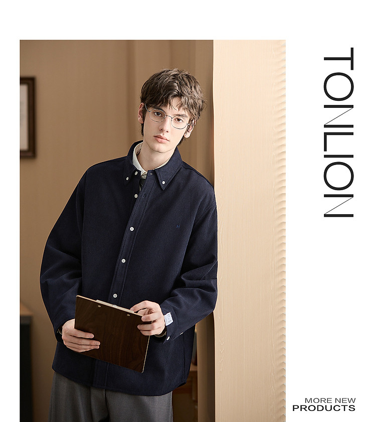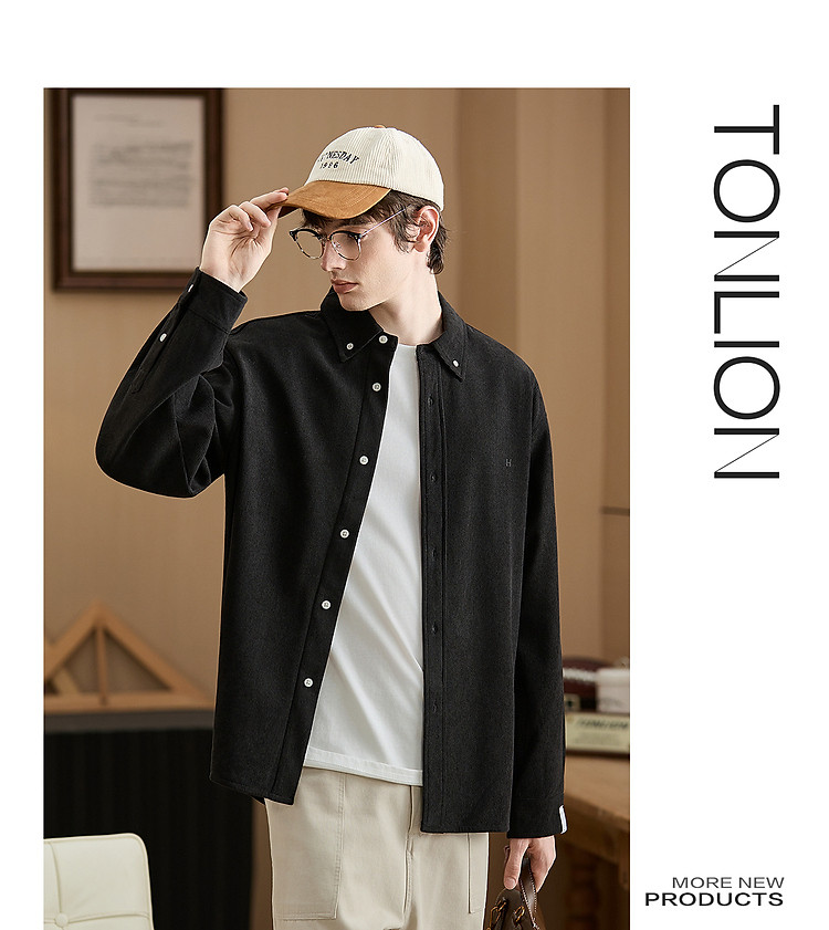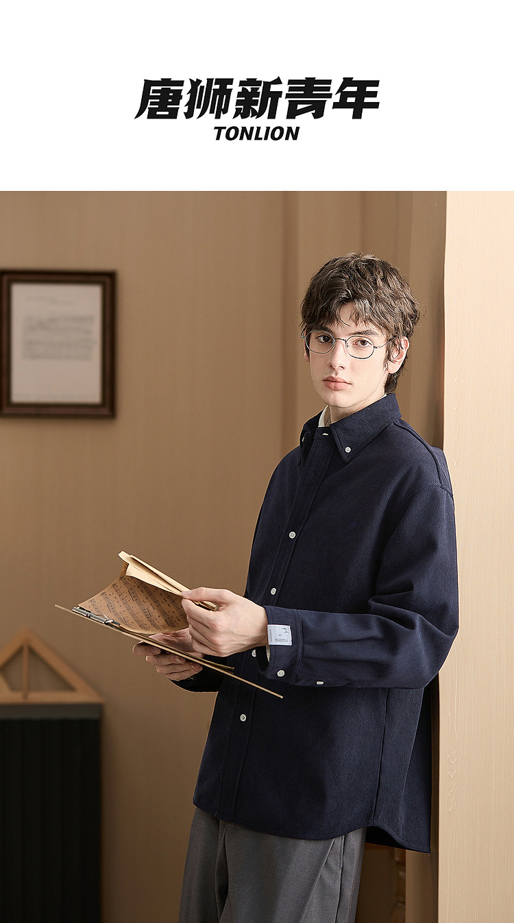 唐狮2026秋冬季新款长袖衬衫男精致刺绣灯芯绒翻领休闲时尚百搭