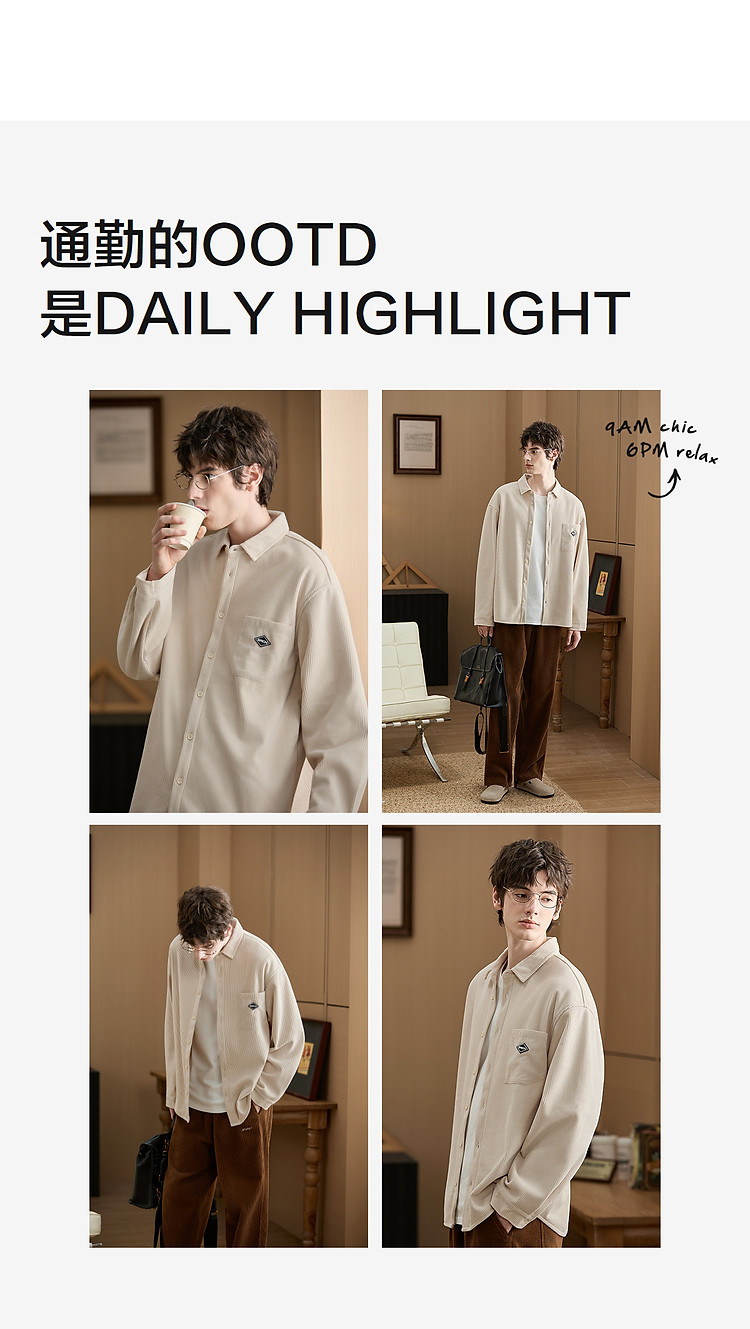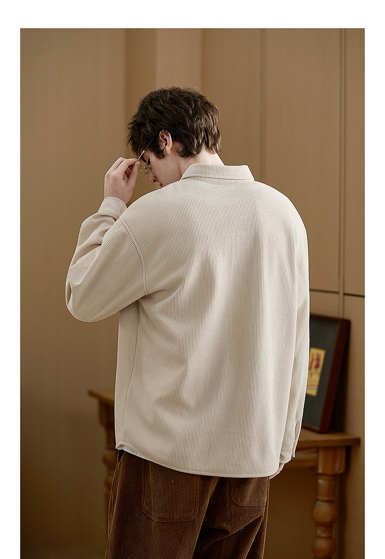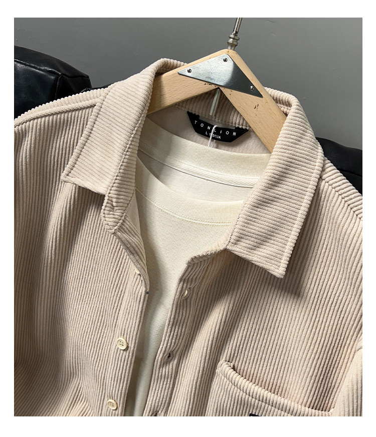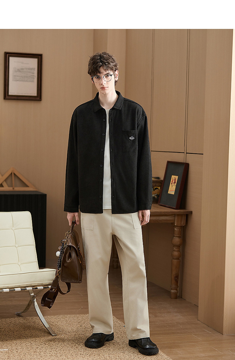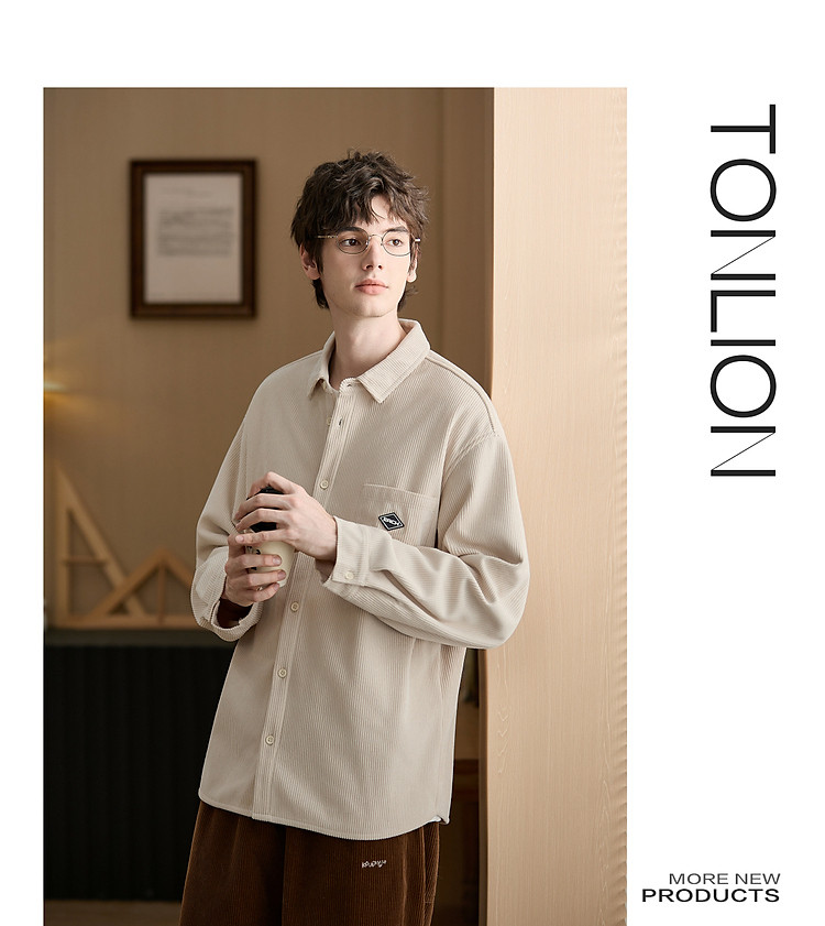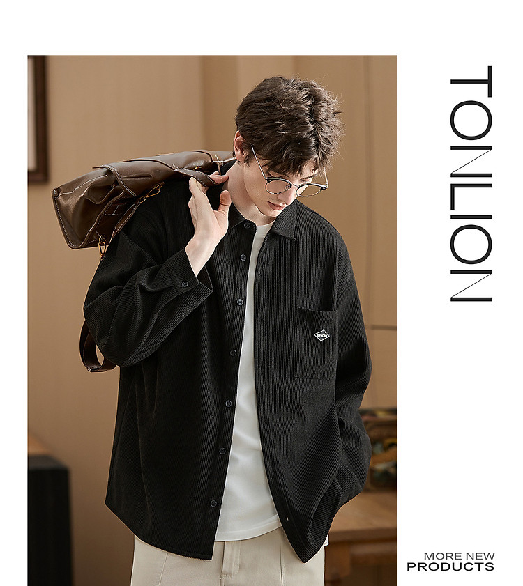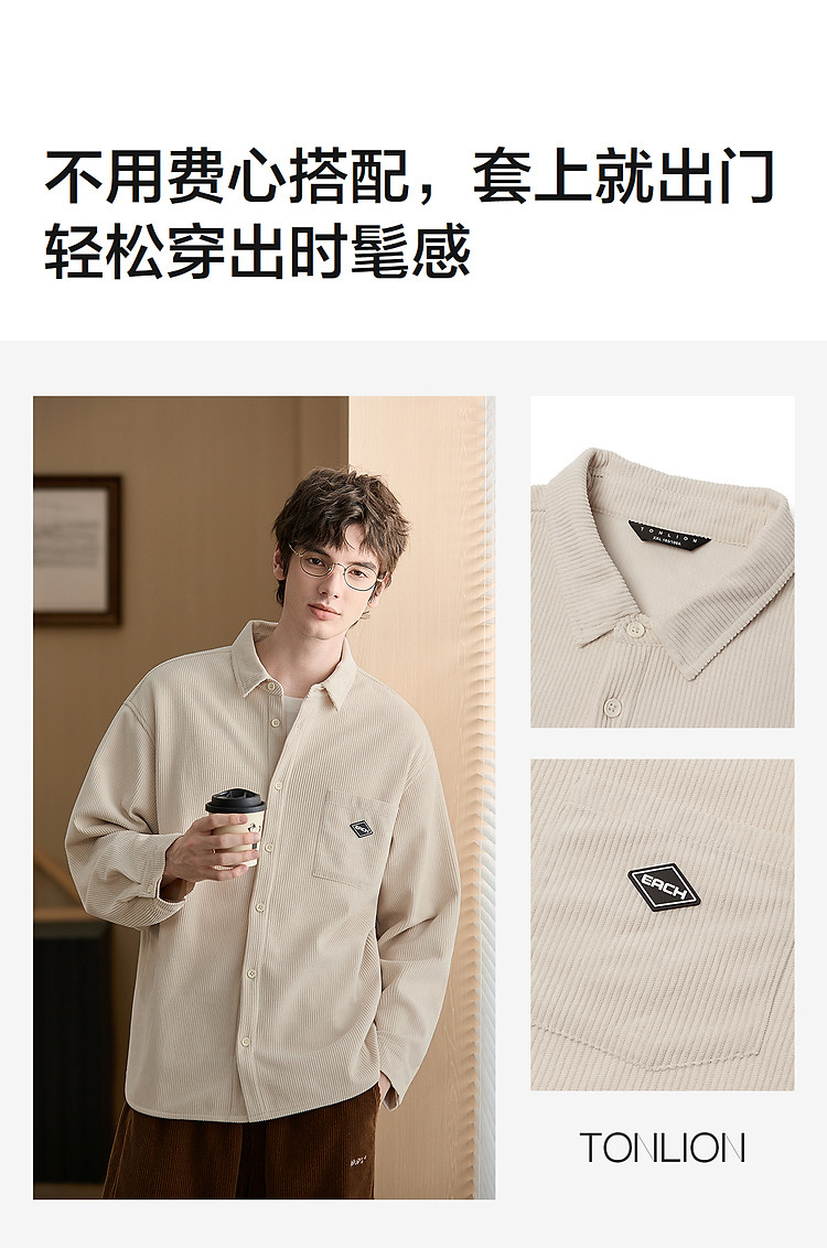唐狮2026秋冬季男士翻领长袖衬衫灯芯绒衬衫休闲时尚潮流日式穿搭