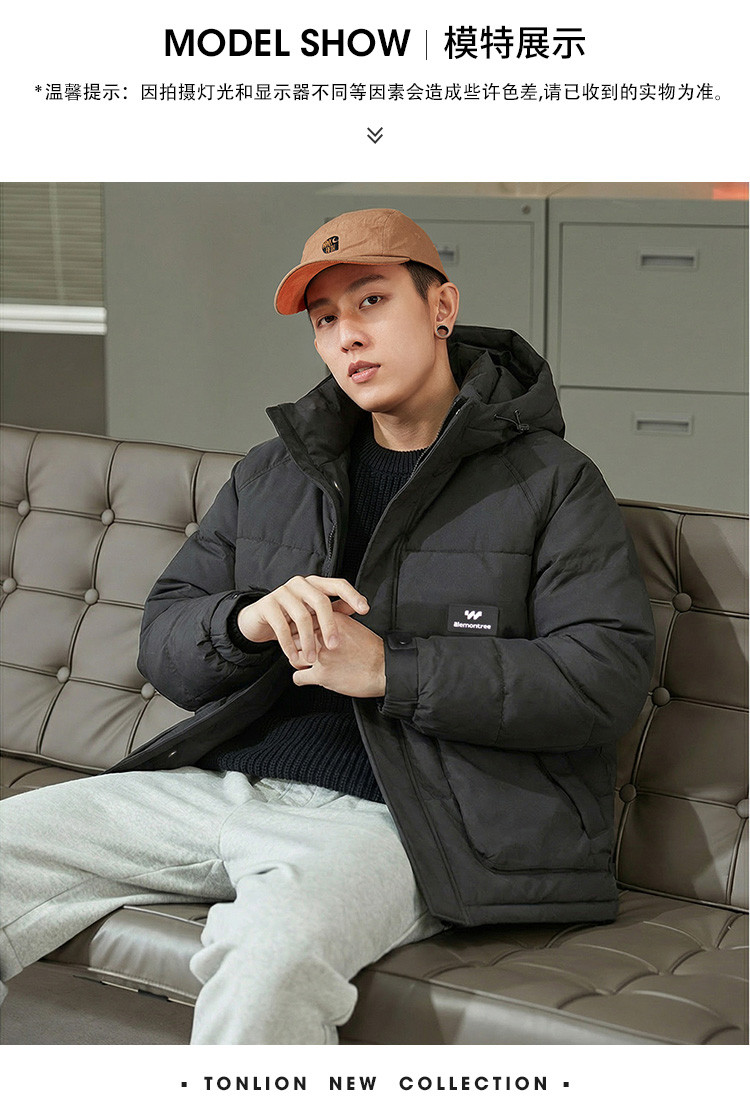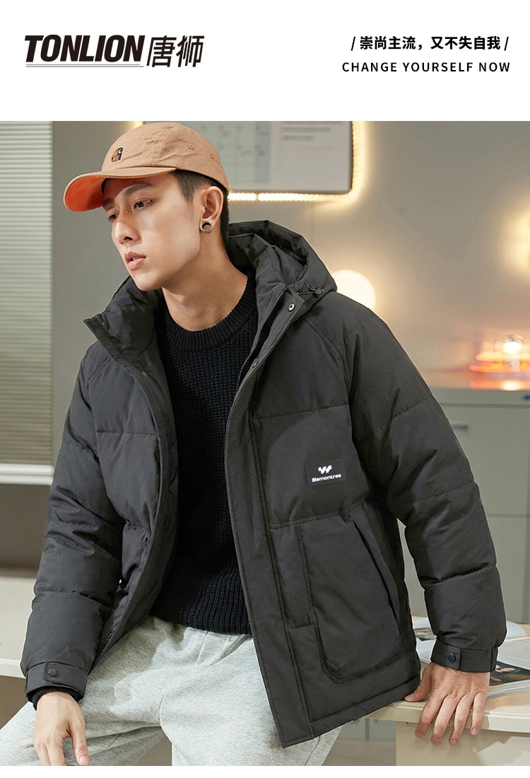 唐狮2026秋冬季短款棉衣男连帽简约设计时尚百搭潮流面包服保暖