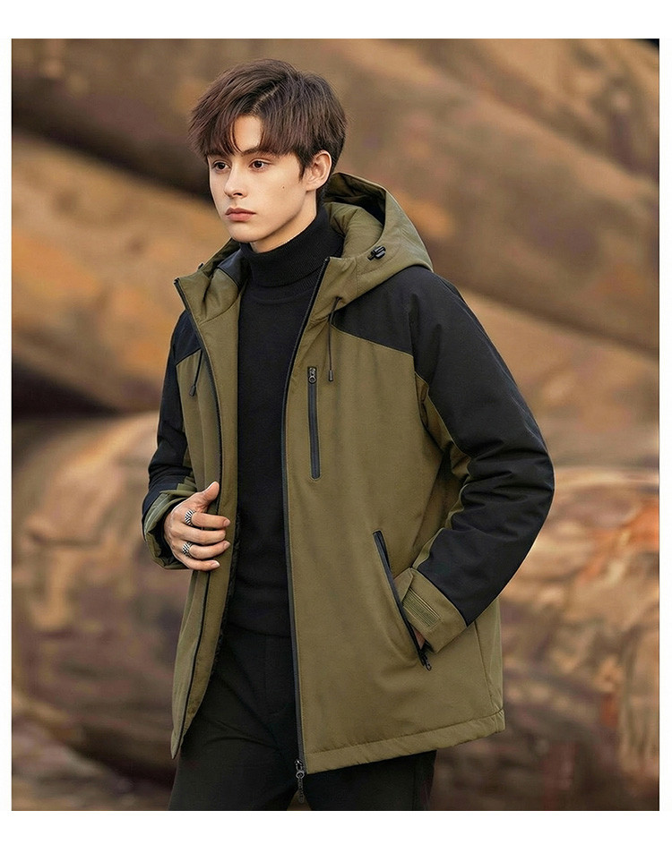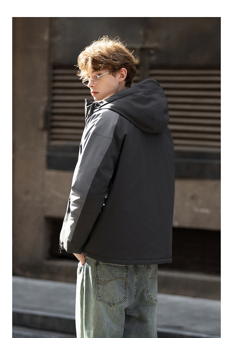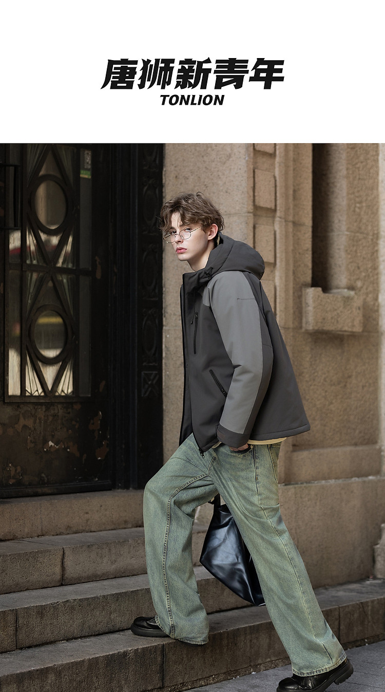 唐狮2026秋冬季短款棉衣男连帽拼接超酷冲锋少年上衣夹克宽松休闲